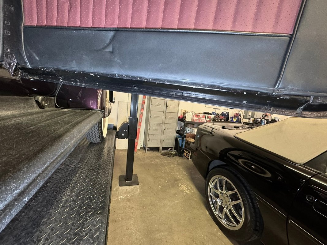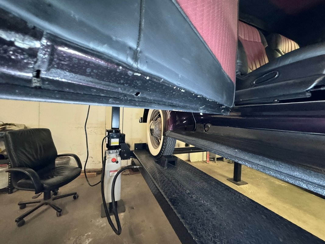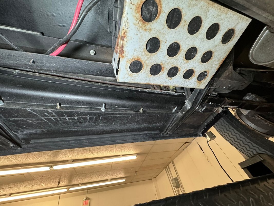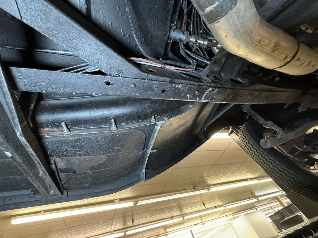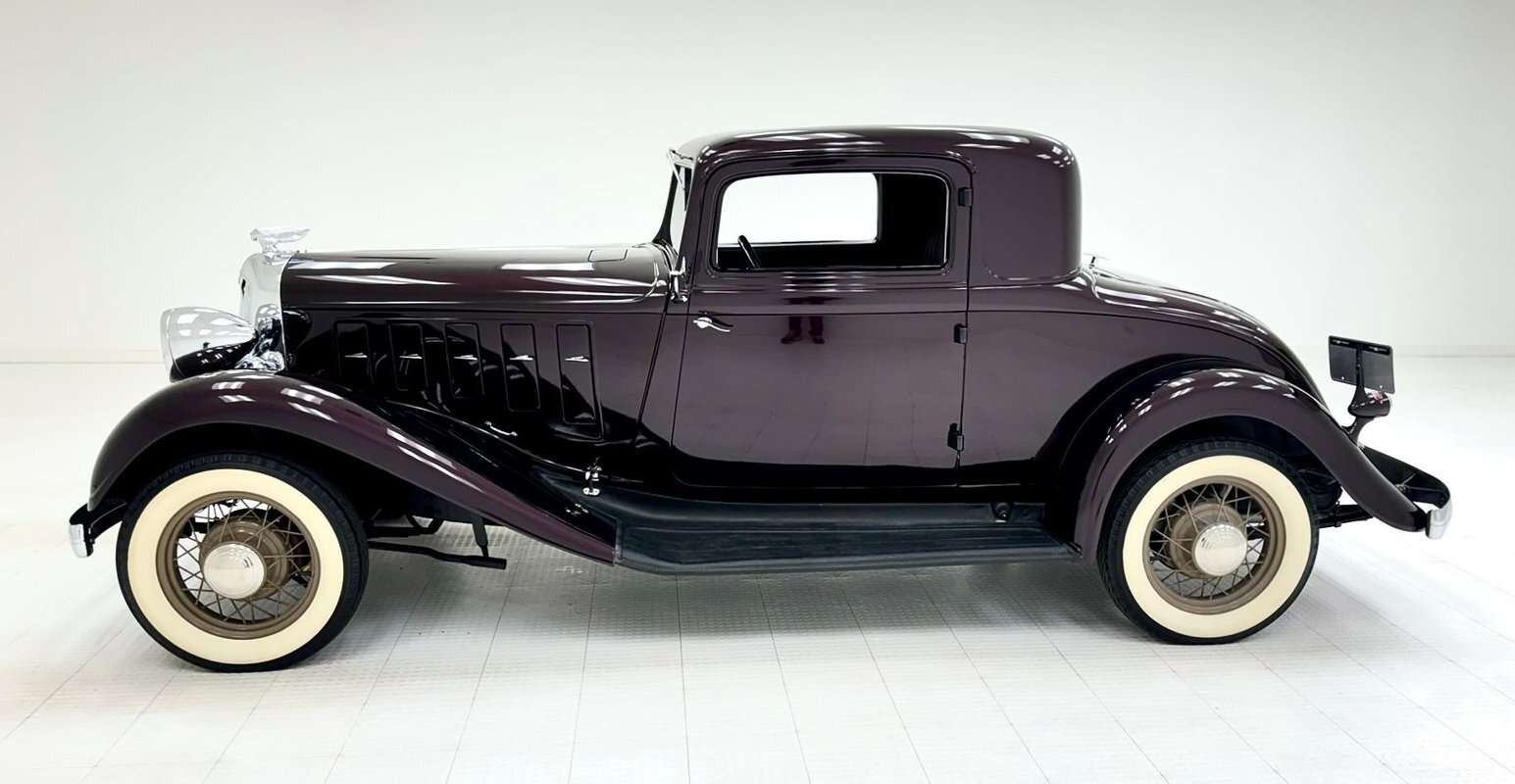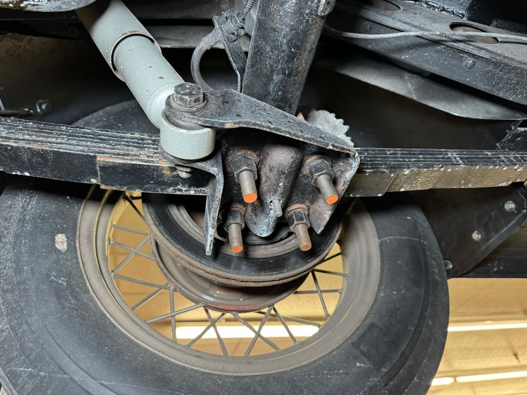 Our consignor states the undercarriage has been undercoated, and it is relatively clean and dry underneath in uniform black. The dual exhaust flows back from the headers into a pair of turbo mufflers then exits discreetly just below the rear bumper. Leaf spring suspension, as it was in 1933 is found front and rear. We note a bit of residual oil on the rear differential.
