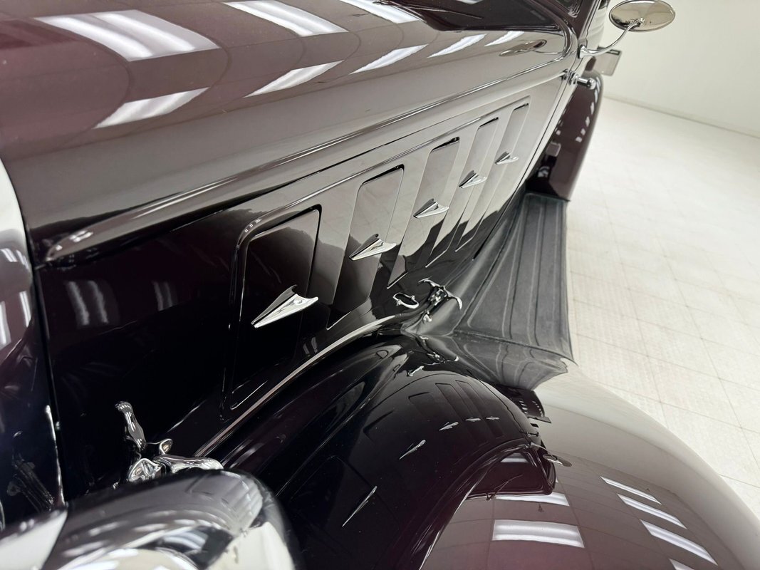 For consignment, a rare '33 Chrysler Imperial CQ with an amazing paint job and a small block Chevrolet V8 under the hood. This car has all the elegance of the period's finest cars, but it would have maxed out at about 125 horsepower in 1933, so the more modern drivetrain adds power, air conditioning and some other features not even considered in the 30's.