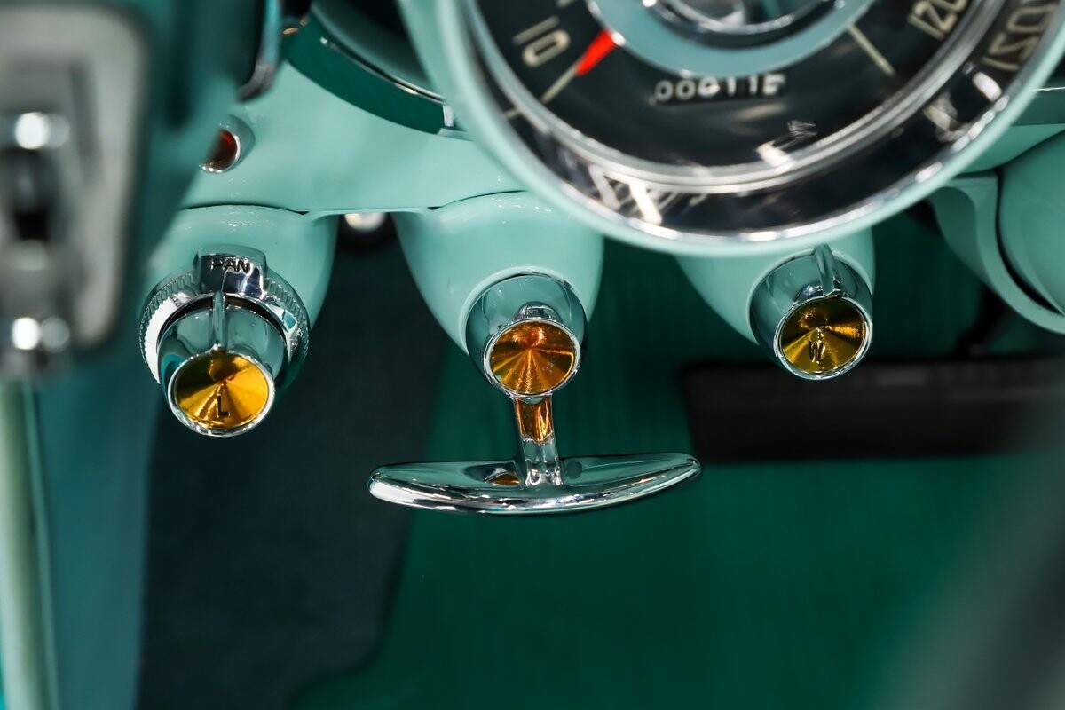 INTERIOR: Just as pristine as the exterior. It is restored to high standards right done to the small details. A very unique feature is the push button transmission where the neutral switch is the starter button. The dash area is like art work: beautiful gauges and gold knobs. It also features power windows and seat.