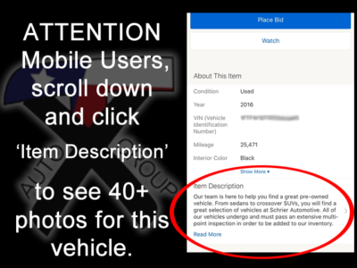 Notice to Bidders: All of the vehicles we list on eBay are for sale locally.  We reserve the right to end an auction early.  All cars are immediately ready for delivery upon sale.