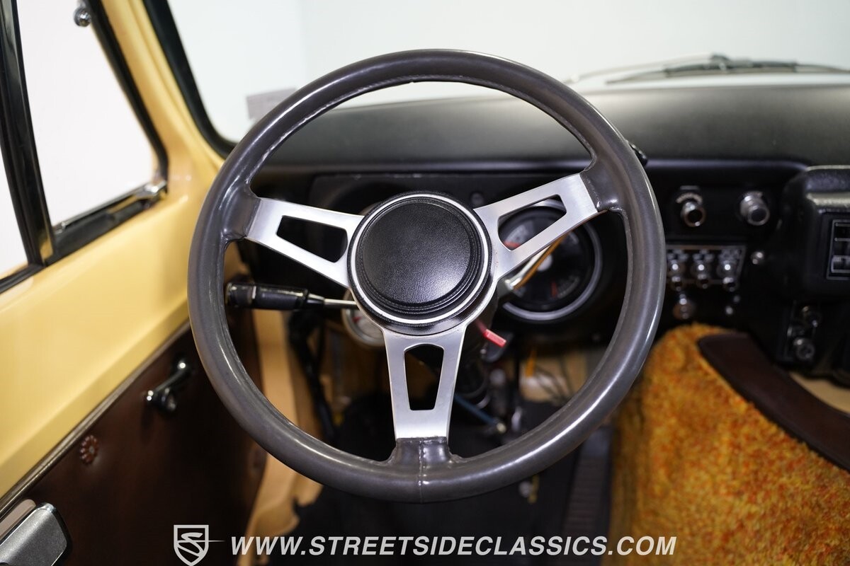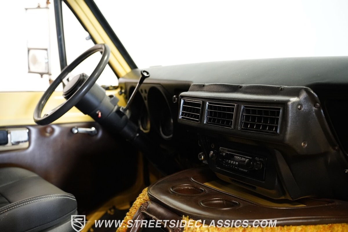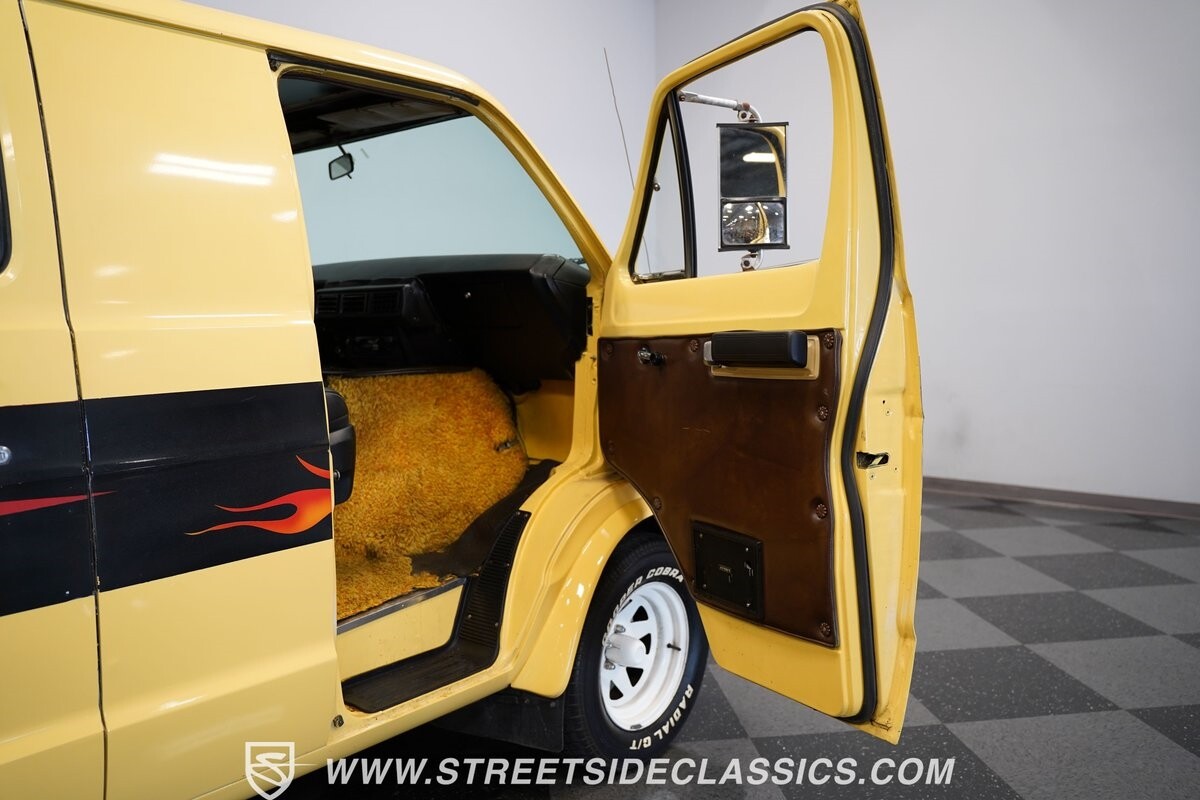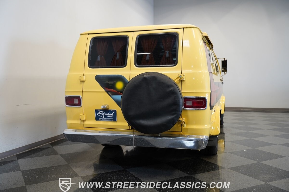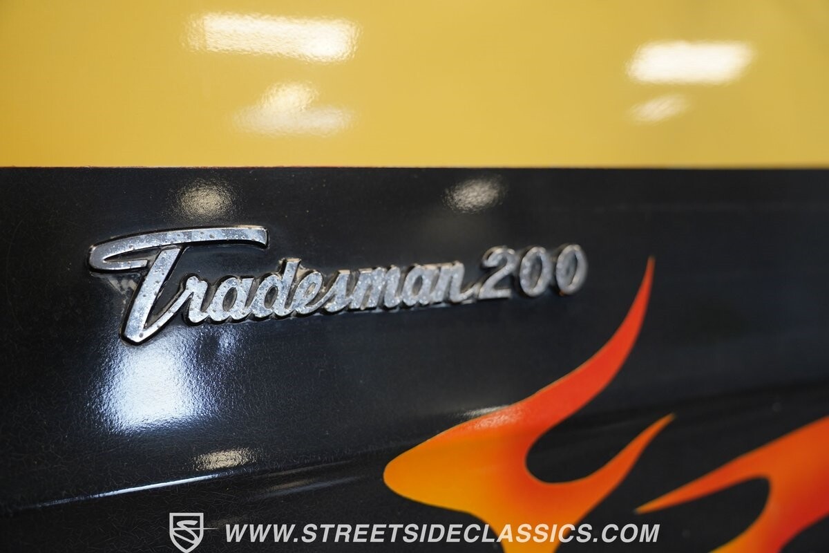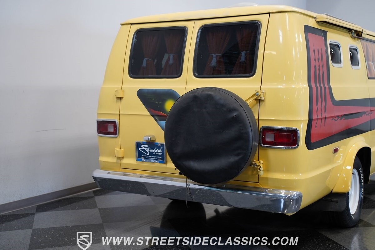 The Dodge B-Series was so much at the heart of the custom van movement, that they were a feature in just about every movie made about vanning. That's why it's awesome to find a true time capsule 1975 Dodge B200 Tradesman done back in the day by Rodco. And they really did all the best cool exterior details like fender flares with a chin spoiler, tall towing mirrors, a roof rack, side windows, and a skylight vent. In fact, there's a level of originality with this one that it appears that the custom murals are the original ones done at Rodco. And there's so much room for all those graphics because this is a long wheelbase Tradesman. All that extra space means even more room on the inside. It's nice to see the shag carpeting, wood paneling, orange curtains, and custom brown lounge seating/table still in place. It even still has a built-in fridge! So as you look through the full package, you're really going to see an impressive level of authenticity that makes this Dodge pure retro cool.