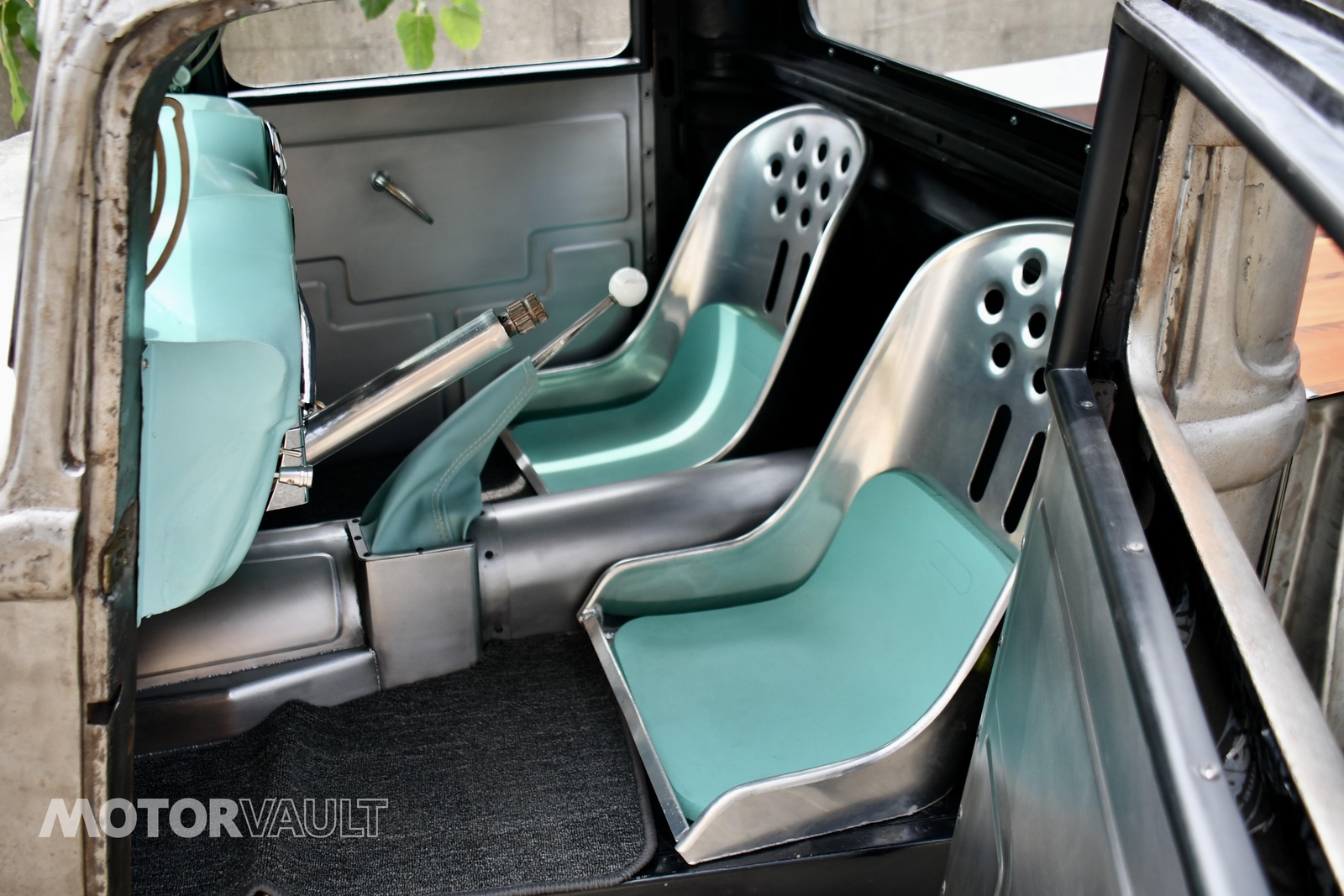 - Cab Chopped 4.5", Channeled 6", Back Window widened 8"
