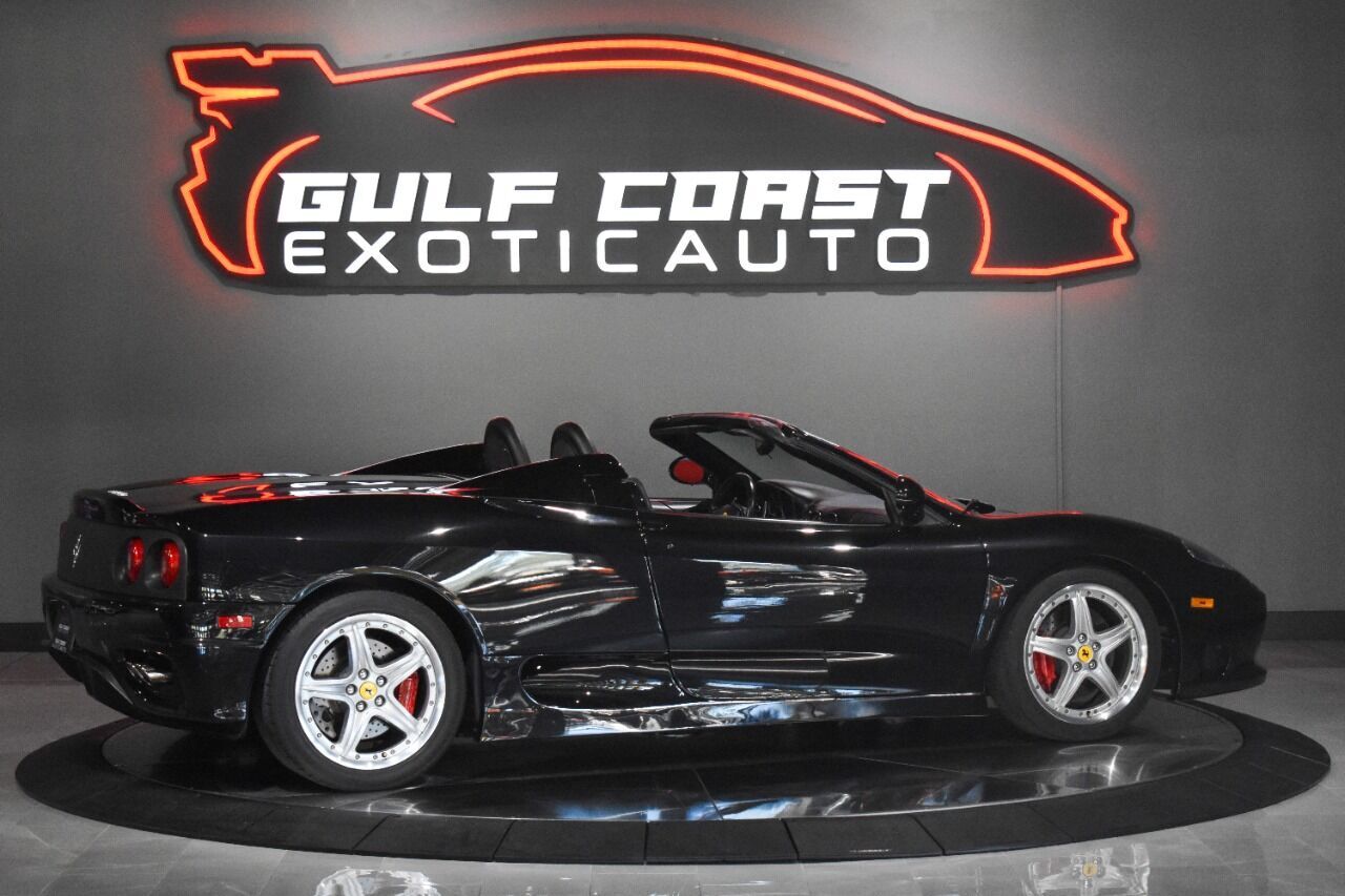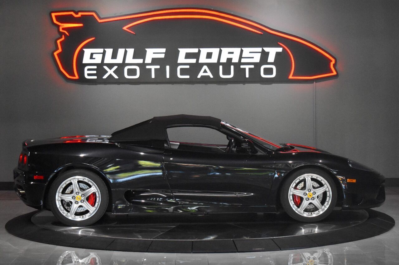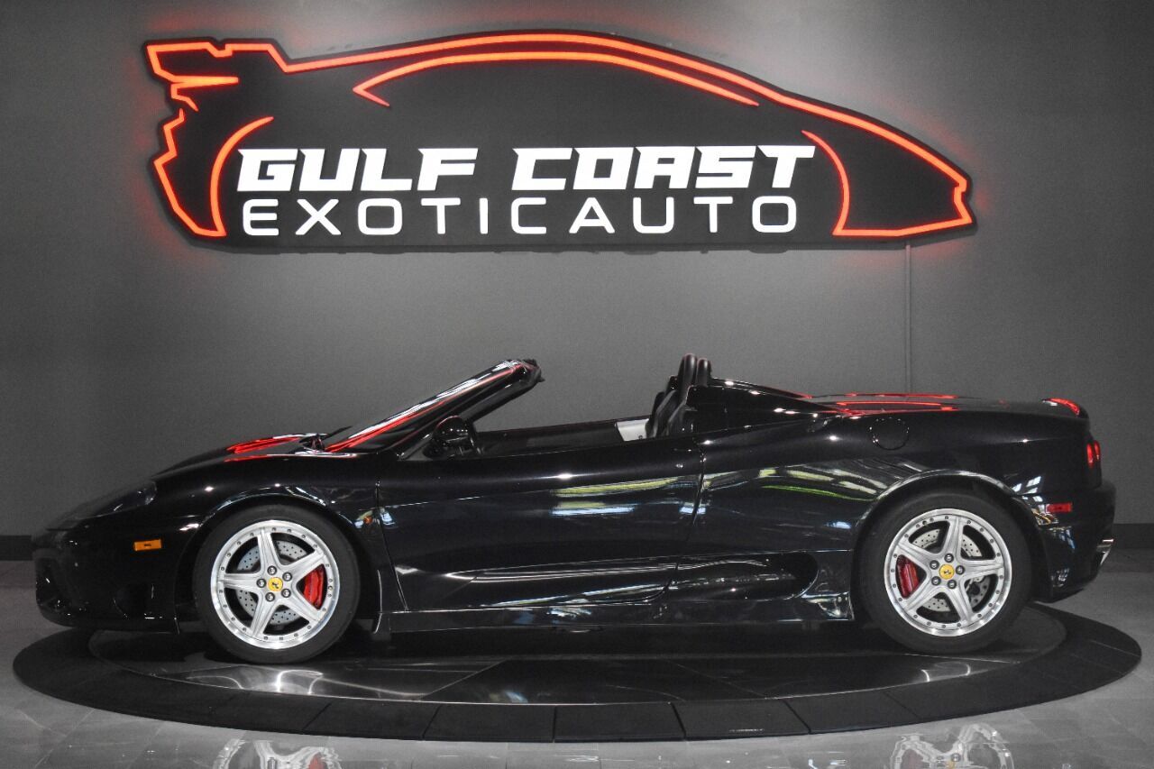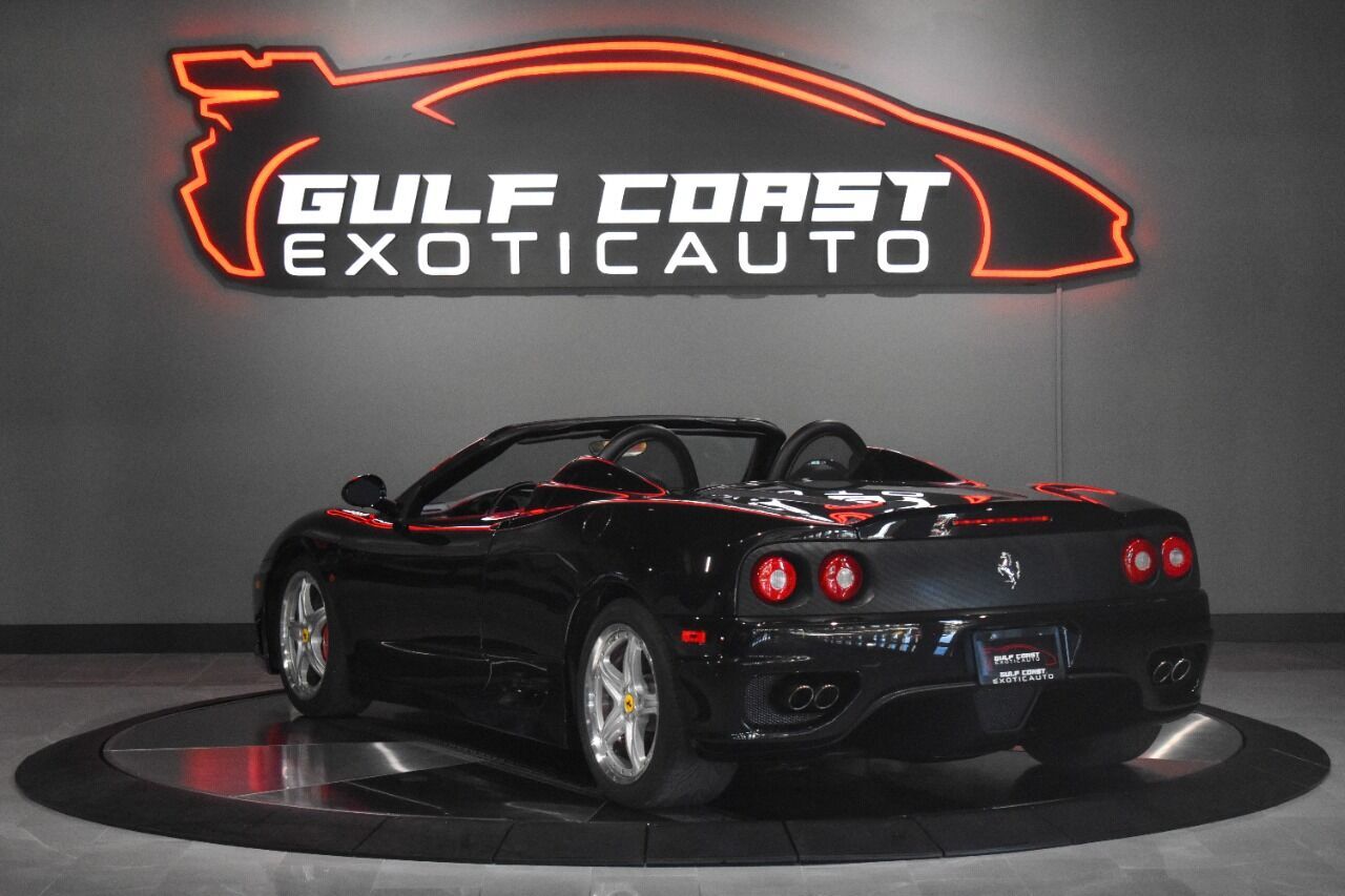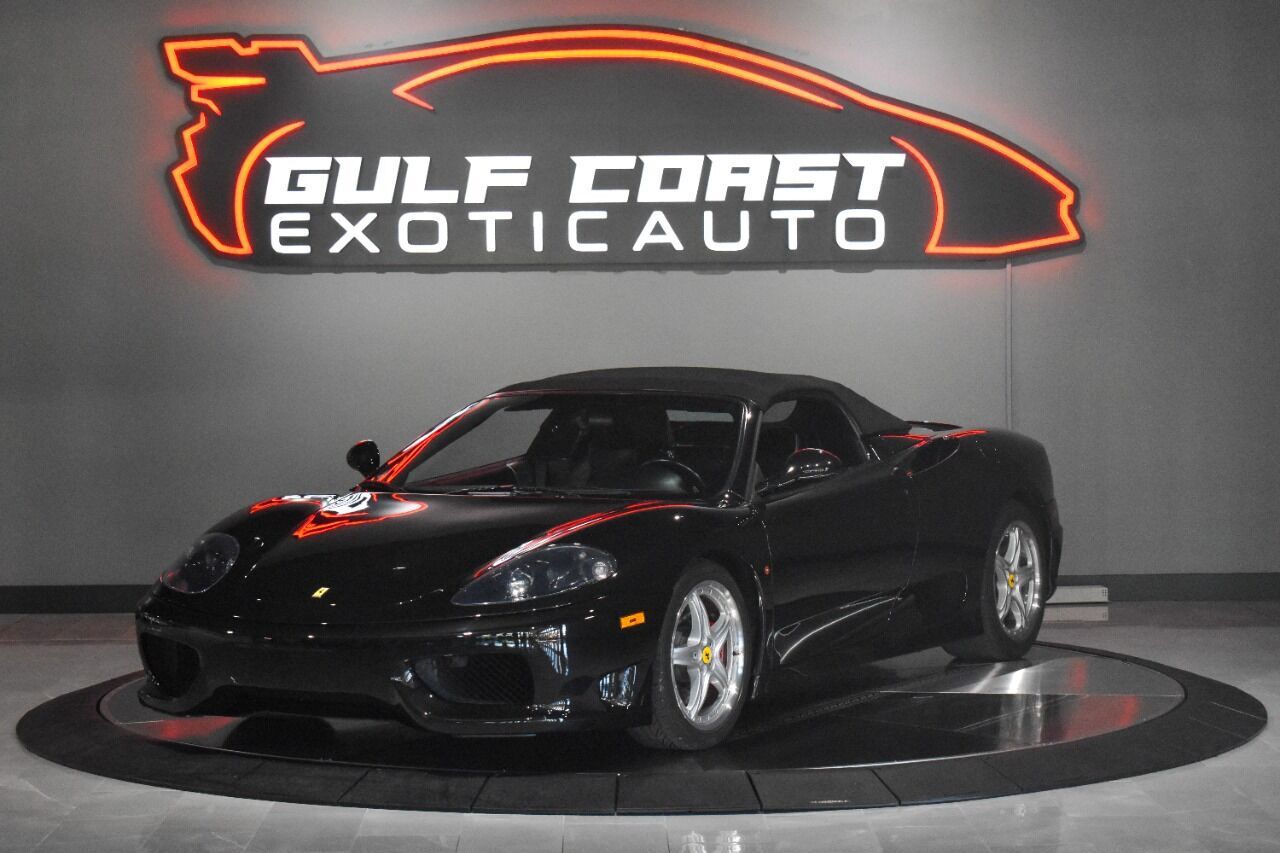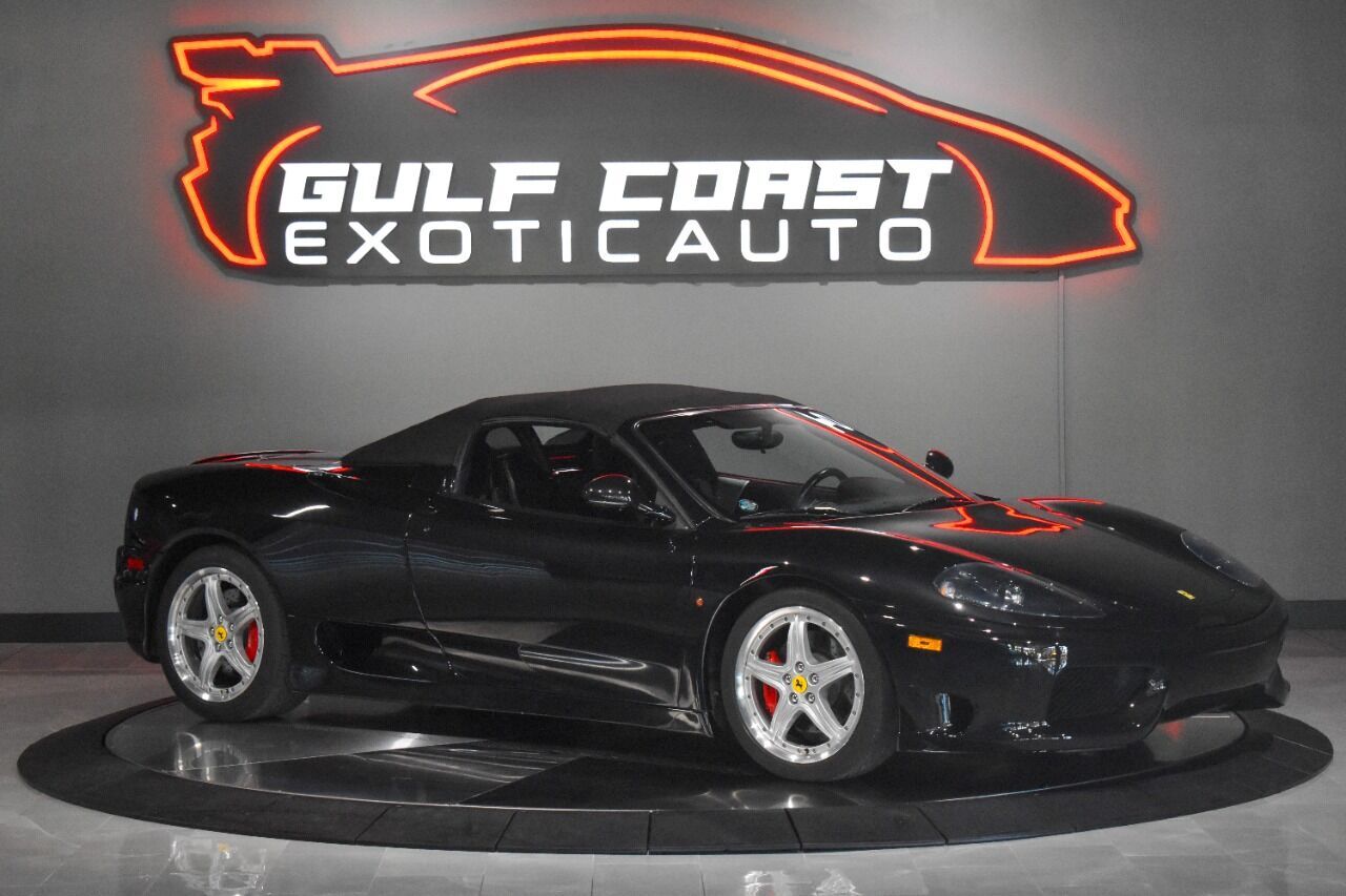 2004 Ferrari 360 Spider F1 now available on consignment with Gulf Coast Exotic Auto ** New Clutch ** New Top ** New Rotors and Brakes ** Just Service with VEX ** Gulf Coast Exotic Auto is proud to present this stunning 2004 Ferrari 360 Spider F1 with a remarkably low 27,946 miles on the odometer. Presented in its original Nero Daytona (Metallic Black) exterior, this stunning Italian convertible is the perfect blend of style, performance, and luxury. Featuring a mid-mounted 3.6L V8 engine producing 400 horsepower and mated to a semi-automatic 'F1' transmission, this Italian stallion offers an exhilarating driving experience. The rapid gear changes facilitated by the paddle shifters transport you to the heart of Maranello, Italy, the home of the prancing horse brand. The exterior of the 2004 Ferrari 360 Spider F1 is beautifully accented by Red Brake Calipers and Modular Wheel Rims, adding a touch of sportiness to the overall elegant design. The Nero Daytona (Metallic Black) paintwork is truly captivating, providing a stylish canvas that perfectly highlights the sharp lines and muscular curves of this classic Ferrari design. Inside, the cabin is just as impressive, furnished in plush Nero (Black) leather. The Electrically Operated Daytona Style Seats not only offer unrivaled comfort but also a tailored driving position at the touch of a button. The striking contrast of All Stitching in Blanco against the black leather accentuates the attention to detail and craftsmanship that is synonymous with the Ferrari brand. Despite its age, the 360 Spider F1 remains a desirable model in Ferrari's lineup, showcasing timeless design and robust engineering that continue to captivate car enthusiasts worldwide. This specific model's rich specification list coupled with its low mileage makes it an excellent choice for any exotic car collection or the discerning driver who demands performance without compromising on luxury. Whether you're a Ferrari aficionado or an automotive enthusiast with an eye for timeless design and impressive performance, this 2004 Ferrari 360 Spider F1 is an investment opportunity not to be missed. Contact Gulf Coast Exotic Auto today to learn more about this prancing horse's unique appeal and make it a part of your collection. Experience the thrill of owning a piece of iconic automotive history. For more information or to schedule a viewing, contact please contact Jonathan228-220-0298 or Chris228-220-0298. We offer finance options, we take trade-ins, free airport pick up and worldwide shipping. Mon-Fri 8:00AM-6:00PM Sat- By App only