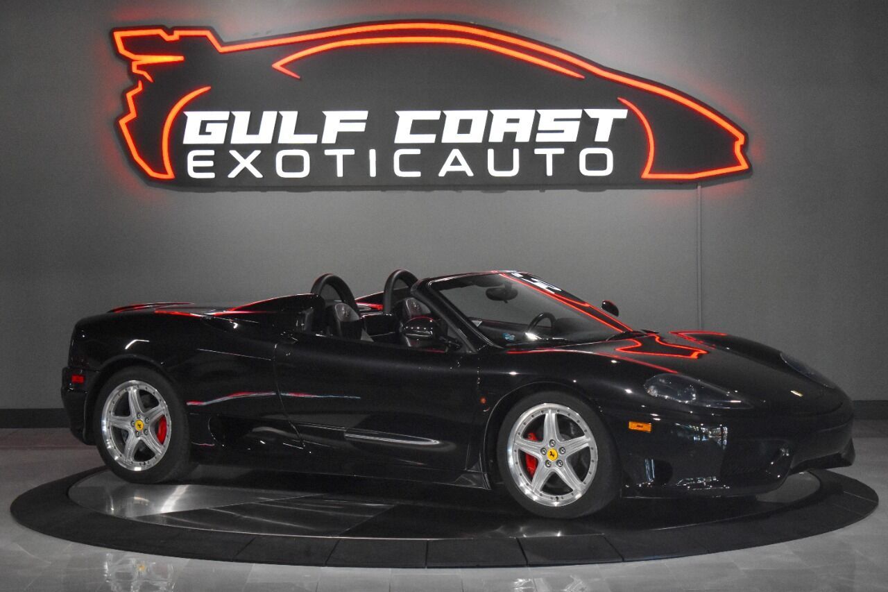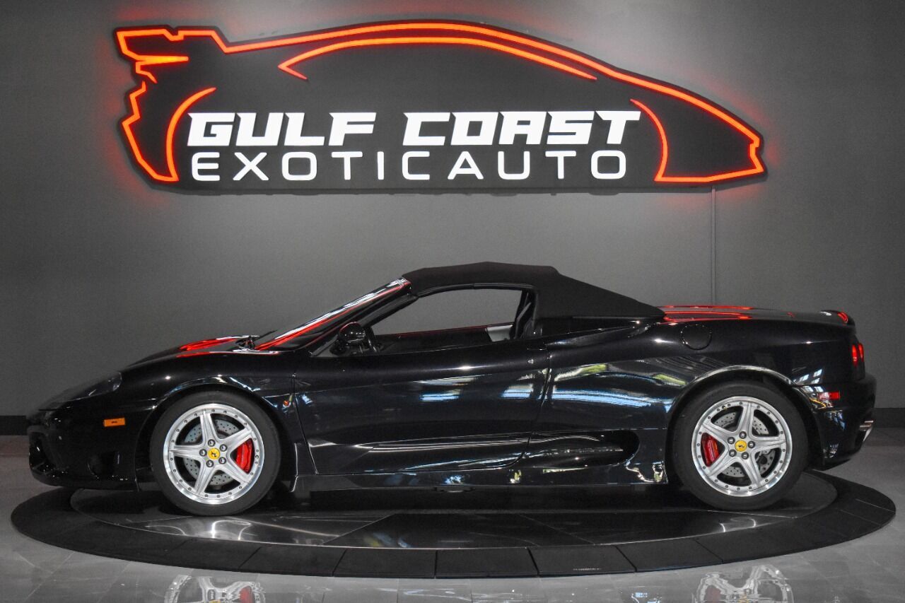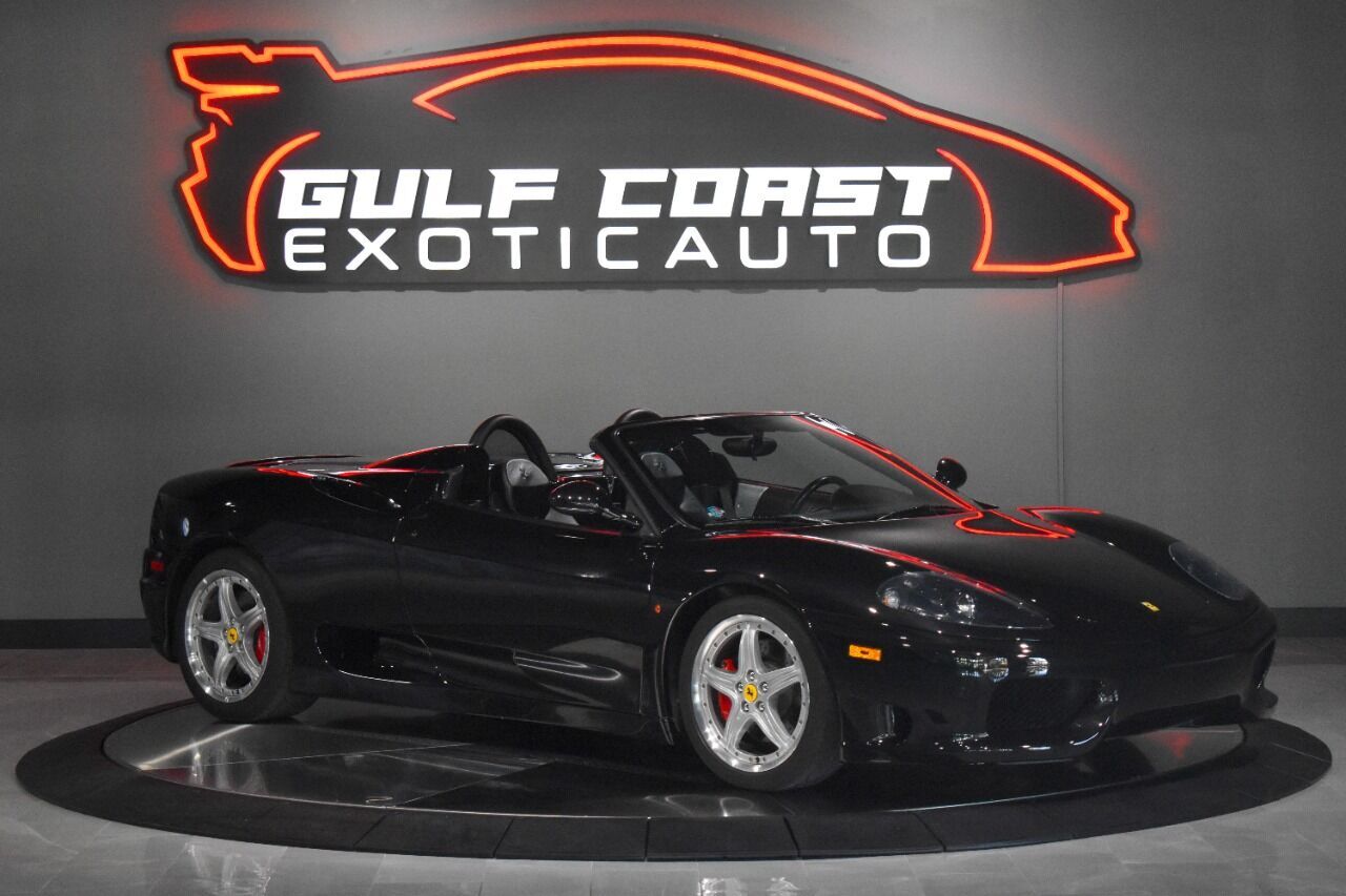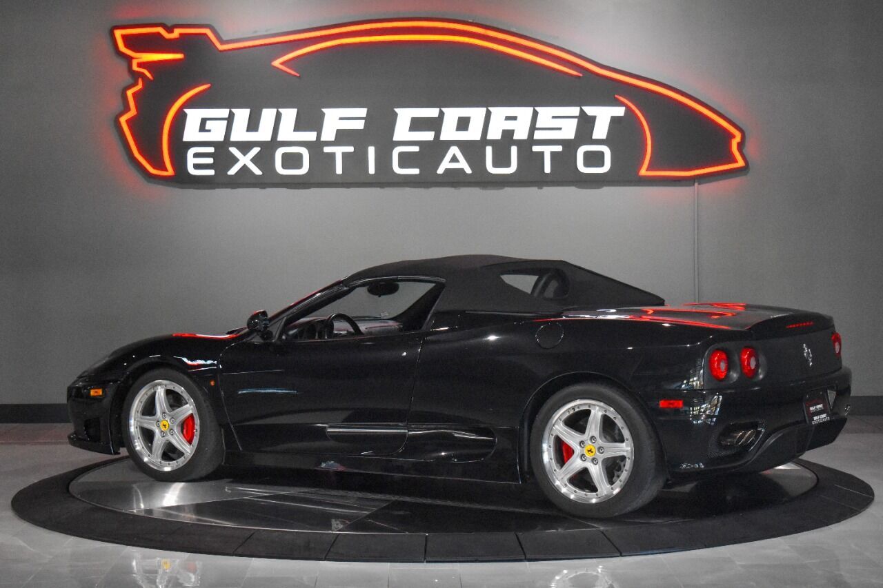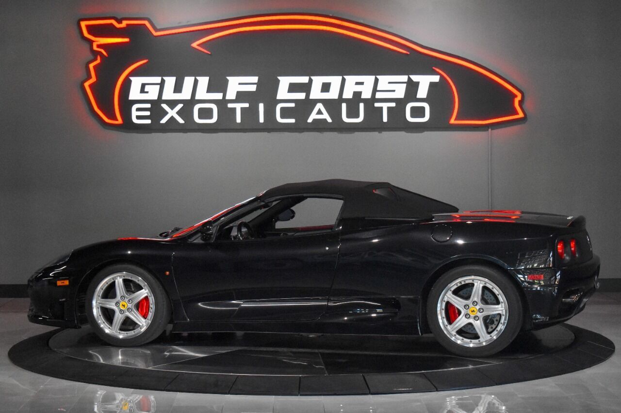2004 Ferrari 360 Spider F1 now available on consignment with Gulf Coast Exotic Auto ** New Clutch ** New Top ** New Rotors and Brakes ** Just Service with VEX ** Gulf Coast Exotic Auto is proud to present this stunning 2004 Ferrari 360 Spider F1 with a remarkably low 27,946 miles on the odometer. Presented in its original Nero Daytona (Metallic Black) exterior, this stunning Italian convertible is the perfect blend of style, performance, and luxury. Featuring a mid-mounted 3.6L V8 engine producing 400 horsepower and mated to a semi-automatic 'F1' transmission, this Italian stallion offers an exhilarating driving experience. The rapid gear changes facilitated by the paddle shifters transport you to the heart of Maranello, Italy, the home of the prancing horse brand. The exterior of the 2004 Ferrari 360 Spider F1 is beautifully accented by Red Brake Calipers and Modular Wheel Rims, adding a touch of sportiness to the overall elegant design. The Nero Daytona (Metallic Black) paintwork is truly captivating, providing a stylish canvas that perfectly highlights the sharp lines and muscular curves of this classic Ferrari design. Inside, the cabin is just as impressive, furnished in plush Nero (Black) leather. The Electrically Operated Daytona Style Seats not only offer unrivaled comfort but also a tailored driving position at the touch of a button. The striking contrast of All Stitching in Blanco against the black leather accentuates the attention to detail and craftsmanship that is synonymous with the Ferrari brand. Despite its age, the 360 Spider F1 remains a desirable model in Ferrari's lineup, showcasing timeless design and robust engineering that continue to captivate car enthusiasts worldwide. This specific model's rich specification list coupled with its low mileage makes it an excellent choice for any exotic car collection or the discerning driver who demands performance without compromising on luxury. Whether you're a Ferrari aficionado or an automotive enthusiast with an eye for timeless design and impressive performance, this 2004 Ferrari 360 Spider F1 is an investment opportunity not to be missed. Contact Gulf Coast Exotic Auto today to learn more about this prancing horse's unique appeal and make it a part of your collection. Experience the thrill of owning a piece of iconic automotive history. For more information or to schedule a viewing, contact please contact Jonathan228-220-0298 or Chris228-220-0298. We offer finance options, we take trade-ins, free airport pick up and worldwide shipping. Mon-Fri 8:00AM-6:00PM Sat- By App only