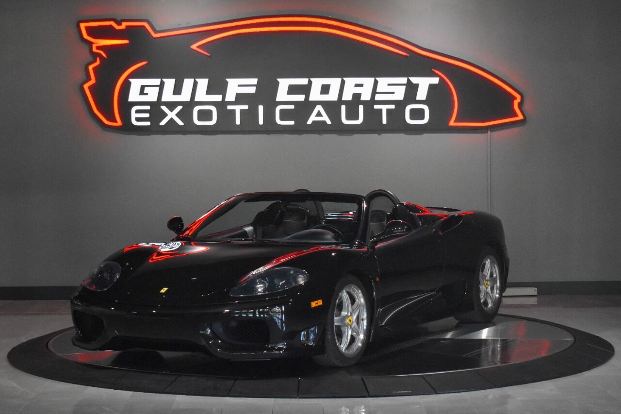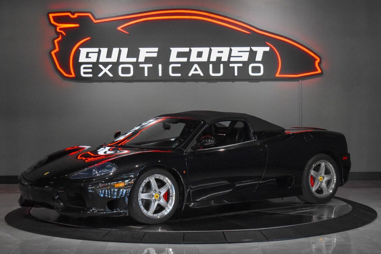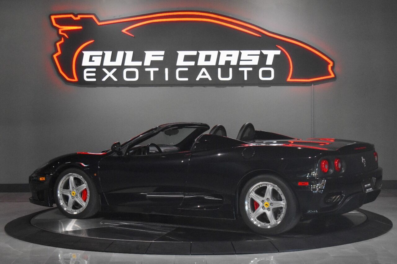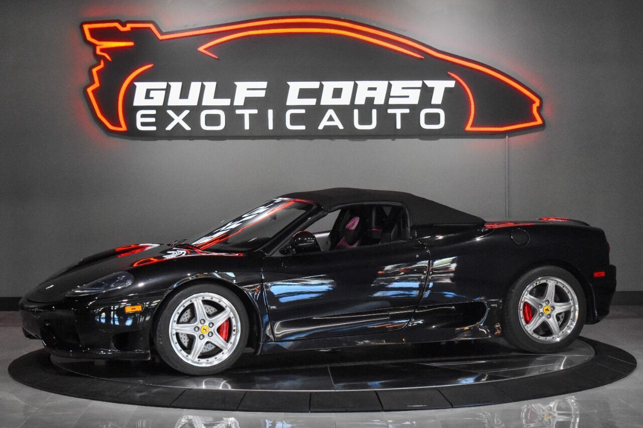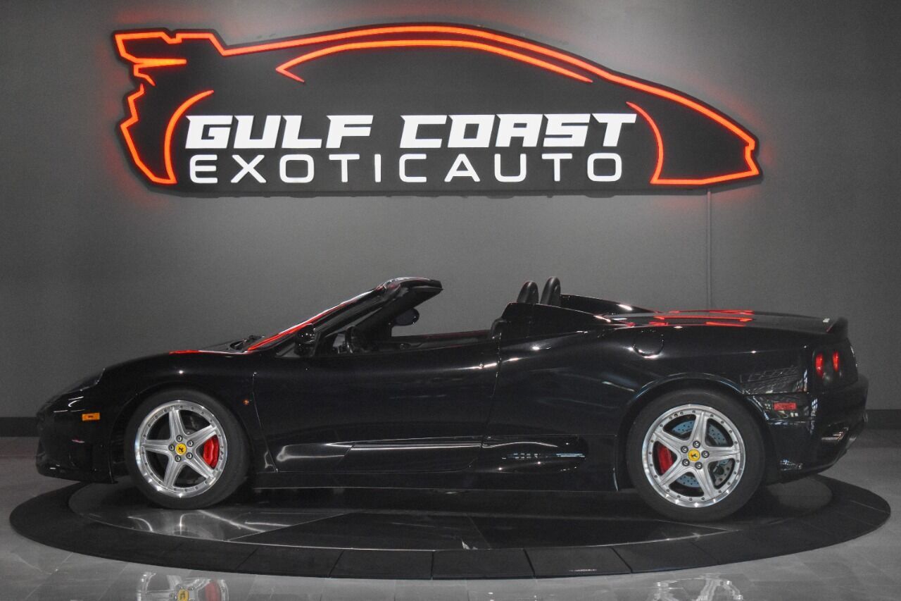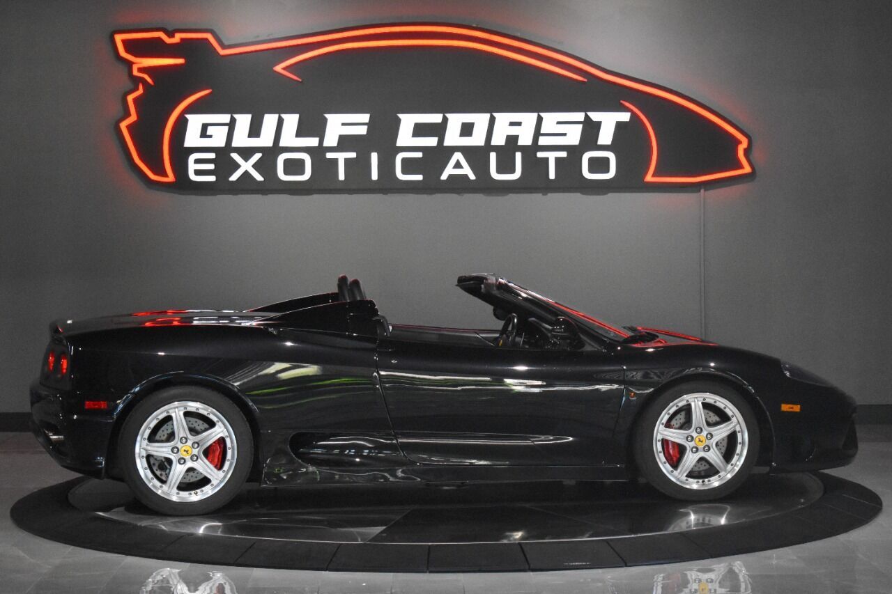2004 Ferrari 360 Spider F1 now available on consignment with Gulf Coast Exotic Auto ** New Clutch ** New Top ** New Rotors and Brakes ** Just Service with VEX ** Gulf Coast Exotic Auto is proud to present this stunning 2004 Ferrari 360 Spider F1 with a remarkably low 27,946 miles on the odometer. Presented in its original Nero Daytona (Metallic Black) exterior, this stunning Italian convertible is the perfect blend of style, performance, and luxury. Featuring a mid-mounted 3.6L V8 engine producing 400 horsepower and mated to a semi-automatic 'F1' transmission, this Italian stallion offers an exhilarating driving experience. The rapid gear changes facilitated by the paddle shifters transport you to the heart of Maranello, Italy, the home of the prancing horse brand. The exterior of the 2004 Ferrari 360 Spider F1 is beautifully accented by Red Brake Calipers and Modular Wheel Rims, adding a touch of sportiness to the overall elegant design. The Nero Daytona (Metallic Black) paintwork is truly captivating, providing a stylish canvas that perfectly highlights the sharp lines and muscular curves of this classic Ferrari design. Inside, the cabin is just as impressive, furnished in plush Nero (Black) leather. The Electrically Operated Daytona Style Seats not only offer unrivaled comfort but also a tailored driving position at the touch of a button. The striking contrast of All Stitching in Blanco against the black leather accentuates the attention to detail and craftsmanship that is synonymous with the Ferrari brand. Despite its age, the 360 Spider F1 remains a desirable model in Ferrari's lineup, showcasing timeless design and robust engineering that continue to captivate car enthusiasts worldwide. This specific model's rich specification list coupled with its low mileage makes it an excellent choice for any exotic car collection or the discerning driver who demands performance without compromising on luxury. Whether you're a Ferrari aficionado or an automotive enthusiast with an eye for timeless design and impressive performance, this 2004 Ferrari 360 Spider F1 is an investment opportunity not to be missed. Contact Gulf Coast Exotic Auto today to learn more about this prancing horse's unique appeal and make it a part of your collection. Experience the thrill of owning a piece of iconic automotive history. For more information or to schedule a viewing, contact please contact Jonathan228-220-0298 or Chris228-220-0298. We offer finance options, we take trade-ins, free airport pick up and worldwide shipping. Mon-Fri 8:00AM-6:00PM Sat- By App only