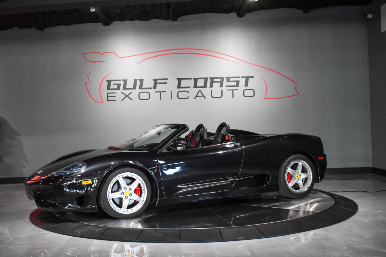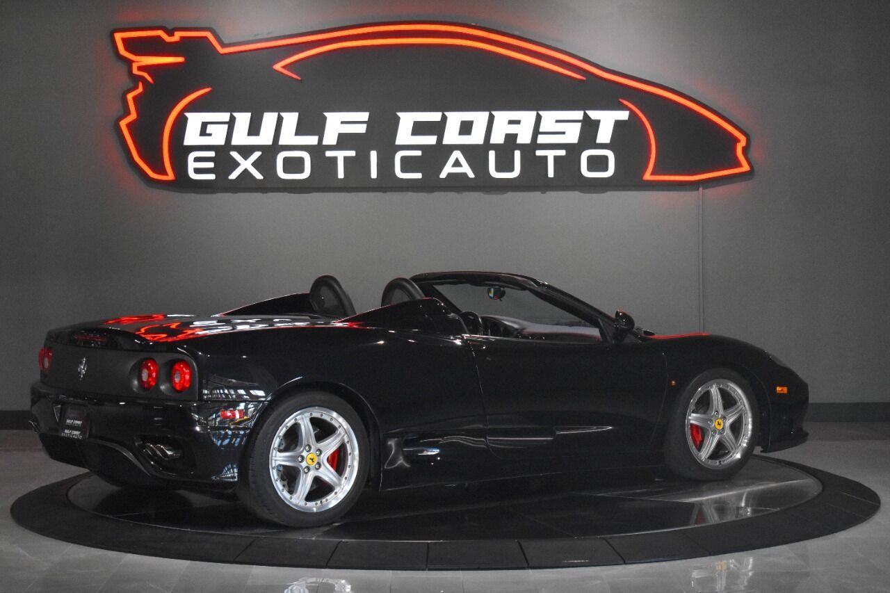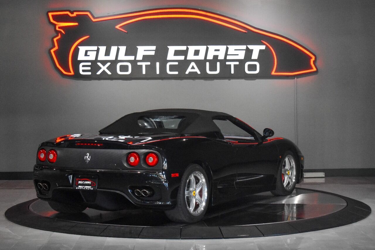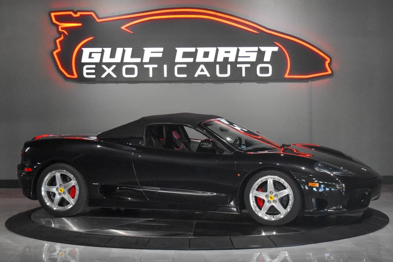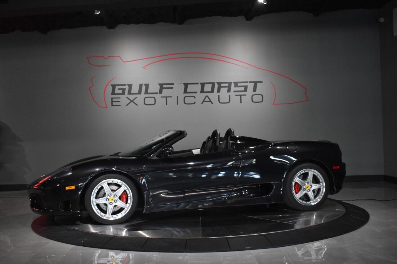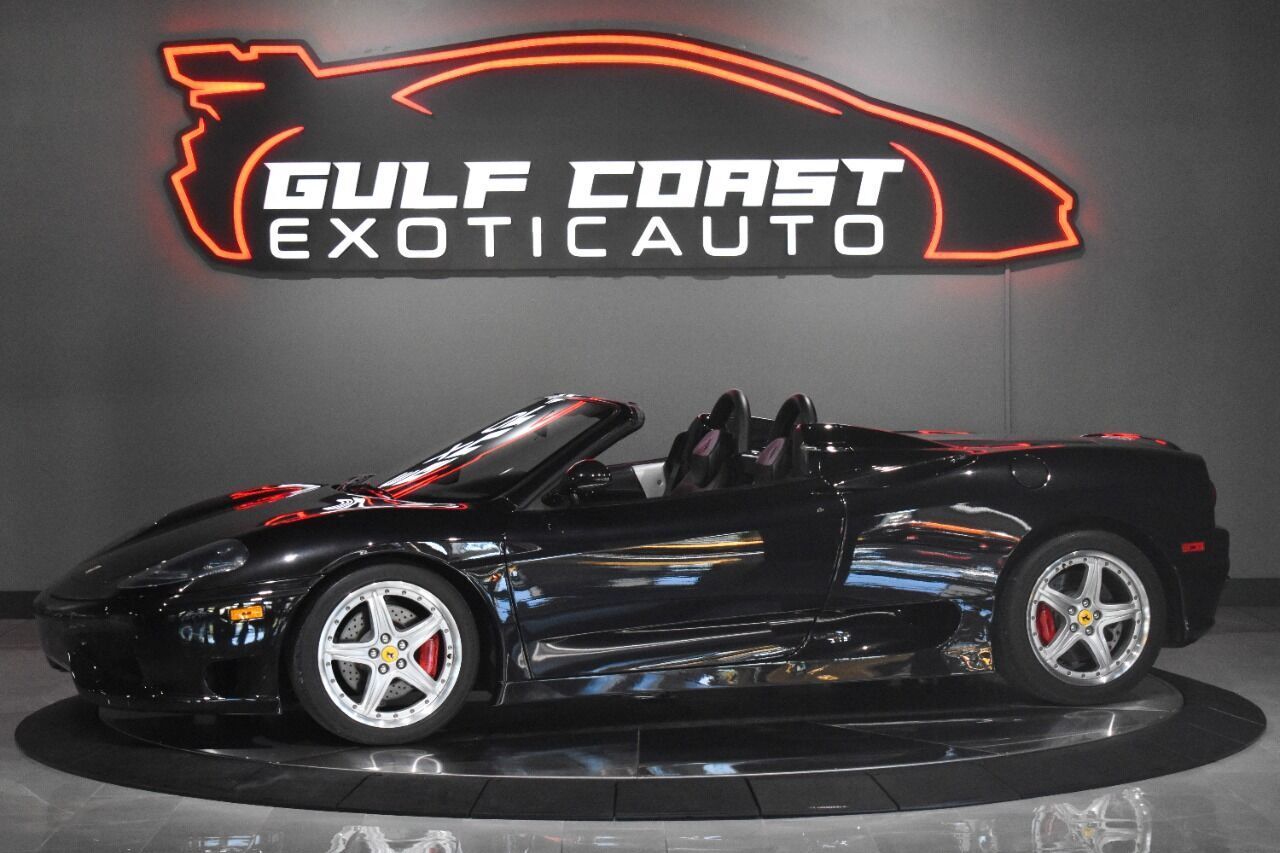 2004 Ferrari 360 Spider F1 now available on consignment with Gulf Coast Exotic Auto ** New Clutch ** New Top ** New Rotors and Brakes ** Just Service with VEX ** Gulf Coast Exotic Auto is proud to present this stunning 2004 Ferrari 360 Spider F1 with a remarkably low 27,946 miles on the odometer. Presented in its original Nero Daytona (Metallic Black) exterior, this stunning Italian convertible is the perfect blend of style, performance, and luxury. Featuring a mid-mounted 3.6L V8 engine producing 400 horsepower and mated to a semi-automatic 'F1' transmission, this Italian stallion offers an exhilarating driving experience. The rapid gear changes facilitated by the paddle shifters transport you to the heart of Maranello, Italy, the home of the prancing horse brand. The exterior of the 2004 Ferrari 360 Spider F1 is beautifully accented by Red Brake Calipers and Modular Wheel Rims, adding a touch of sportiness to the overall elegant design. The Nero Daytona (Metallic Black) paintwork is truly captivating, providing a stylish canvas that perfectly highlights the sharp lines and muscular curves of this classic Ferrari design. Inside, the cabin is just as impressive, furnished in plush Nero (Black) leather. The Electrically Operated Daytona Style Seats not only offer unrivaled comfort but also a tailored driving position at the touch of a button. The striking contrast of All Stitching in Blanco against the black leather accentuates the attention to detail and craftsmanship that is synonymous with the Ferrari brand. Despite its age, the 360 Spider F1 remains a desirable model in Ferrari's lineup, showcasing timeless design and robust engineering that continue to captivate car enthusiasts worldwide. This specific model's rich specification list coupled with its low mileage makes it an excellent choice for any exotic car collection or the discerning driver who demands performance without compromising on luxury. Whether you're a Ferrari aficionado or an automotive enthusiast with an eye for timeless design and impressive performance, this 2004 Ferrari 360 Spider F1 is an investment opportunity not to be missed. Contact Gulf Coast Exotic Auto today to learn more about this prancing horse's unique appeal and make it a part of your collection. Experience the thrill of owning a piece of iconic automotive history. For more information or to schedule a viewing, contact please contact Jonathan228-220-0298 or Chris228-220-0298. We offer finance options, we take trade-ins, free airport pick up and worldwide shipping. Mon-Fri 8:00AM-6:00PM Sat- By App only