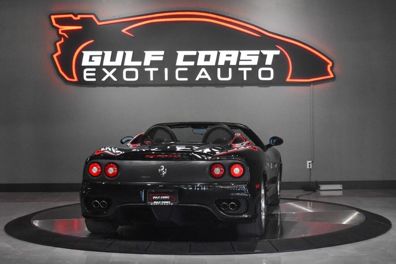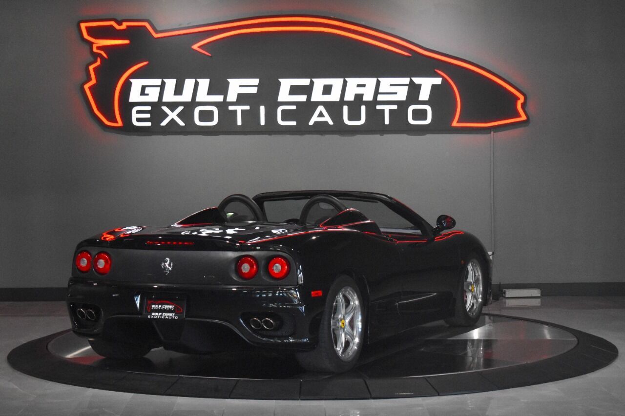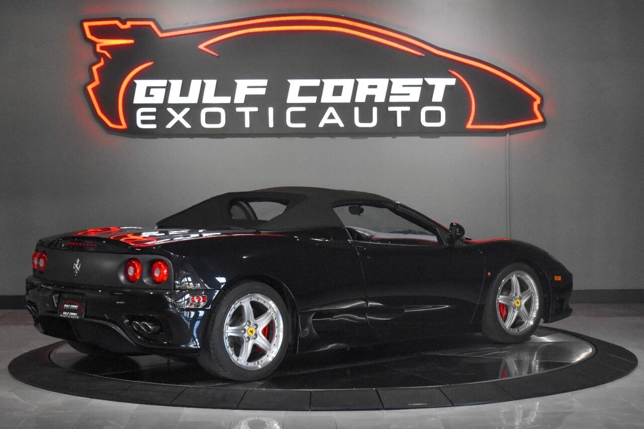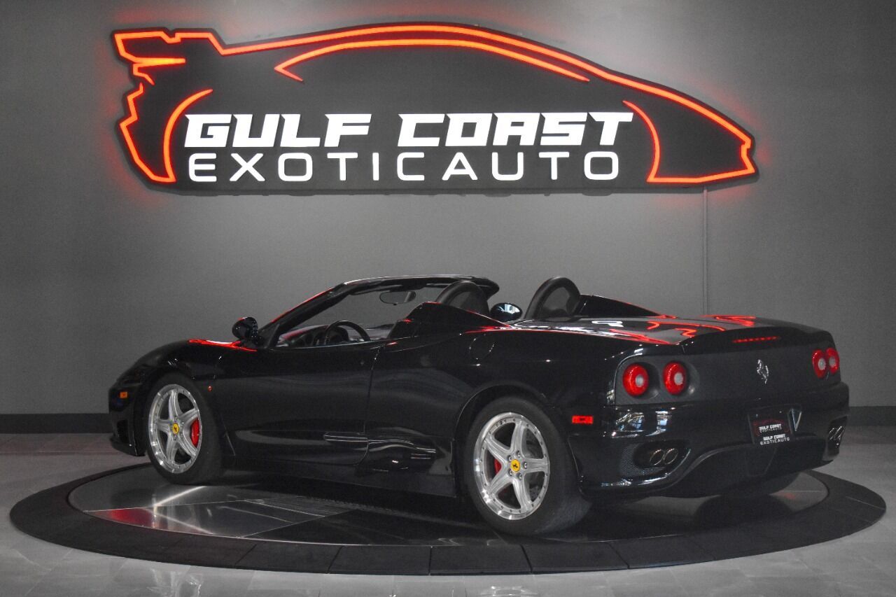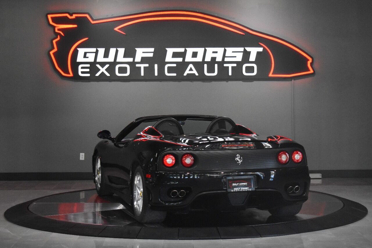 2004 Ferrari 360 Spider F1 now available on consignment with Gulf Coast Exotic Auto ** New Clutch ** New Top ** New Rotors and Brakes ** Just Service with VEX ** Gulf Coast Exotic Auto is proud to present this stunning 2004 Ferrari 360 Spider F1 with a remarkably low 27,946 miles on the odometer. Presented in its original Nero Daytona (Metallic Black) exterior, this stunning Italian convertible is the perfect blend of style, performance, and luxury. Featuring a mid-mounted 3.6L V8 engine producing 400 horsepower and mated to a semi-automatic 'F1' transmission, this Italian stallion offers an exhilarating driving experience. The rapid gear changes facilitated by the paddle shifters transport you to the heart of Maranello, Italy, the home of the prancing horse brand. The exterior of the 2004 Ferrari 360 Spider F1 is beautifully accented by Red Brake Calipers and Modular Wheel Rims, adding a touch of sportiness to the overall elegant design. The Nero Daytona (Metallic Black) paintwork is truly captivating, providing a stylish canvas that perfectly highlights the sharp lines and muscular curves of this classic Ferrari design. Inside, the cabin is just as impressive, furnished in plush Nero (Black) leather. The Electrically Operated Daytona Style Seats not only offer unrivaled comfort but also a tailored driving position at the touch of a button. The striking contrast of All Stitching in Blanco against the black leather accentuates the attention to detail and craftsmanship that is synonymous with the Ferrari brand. Despite its age, the 360 Spider F1 remains a desirable model in Ferrari's lineup, showcasing timeless design and robust engineering that continue to captivate car enthusiasts worldwide. This specific model's rich specification list coupled with its low mileage makes it an excellent choice for any exotic car collection or the discerning driver who demands performance without compromising on luxury. Whether you're a Ferrari aficionado or an automotive enthusiast with an eye for timeless design and impressive performance, this 2004 Ferrari 360 Spider F1 is an investment opportunity not to be missed. Contact Gulf Coast Exotic Auto today to learn more about this prancing horse's unique appeal and make it a part of your collection. Experience the thrill of owning a piece of iconic automotive history. For more information or to schedule a viewing, contact please contact Jonathan228-220-0298 or Chris228-220-0298. We offer finance options, we take trade-ins, free airport pick up and worldwide shipping. Mon-Fri 8:00AM-6:00PM Sat- By App only