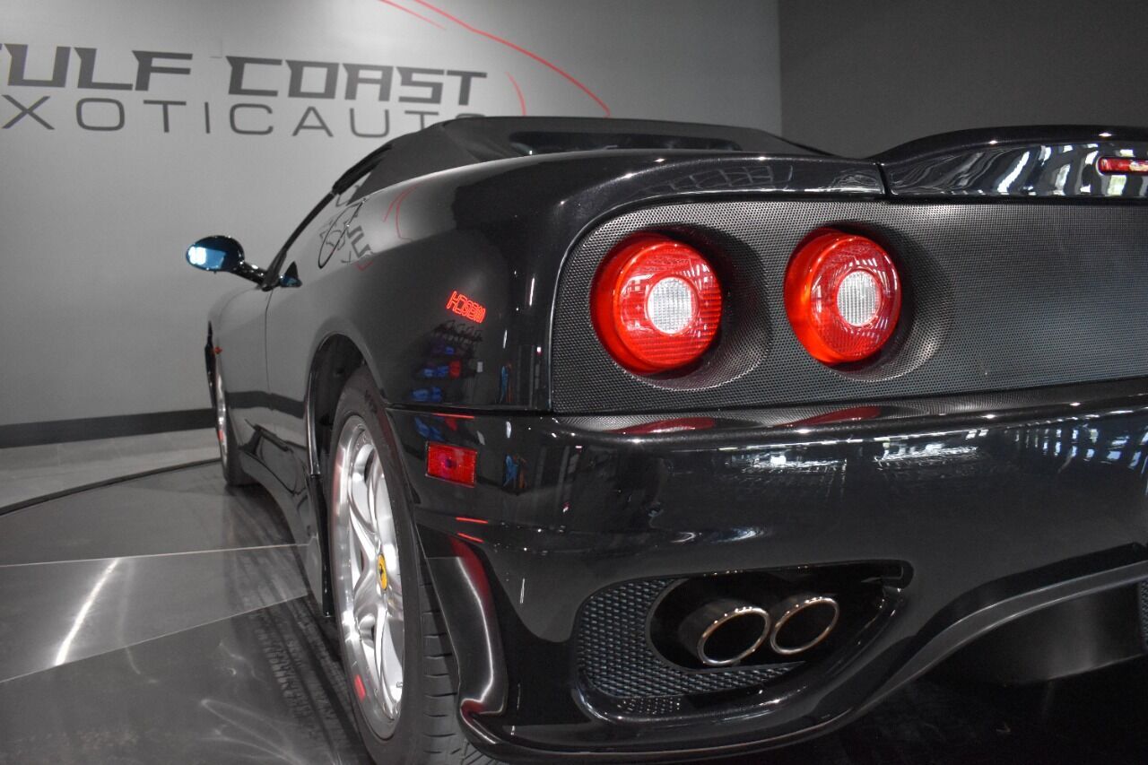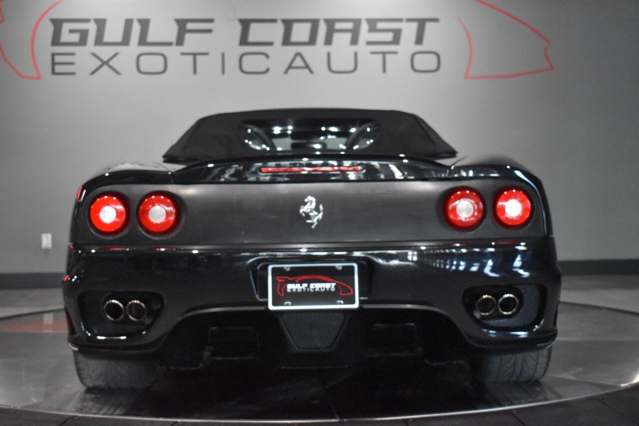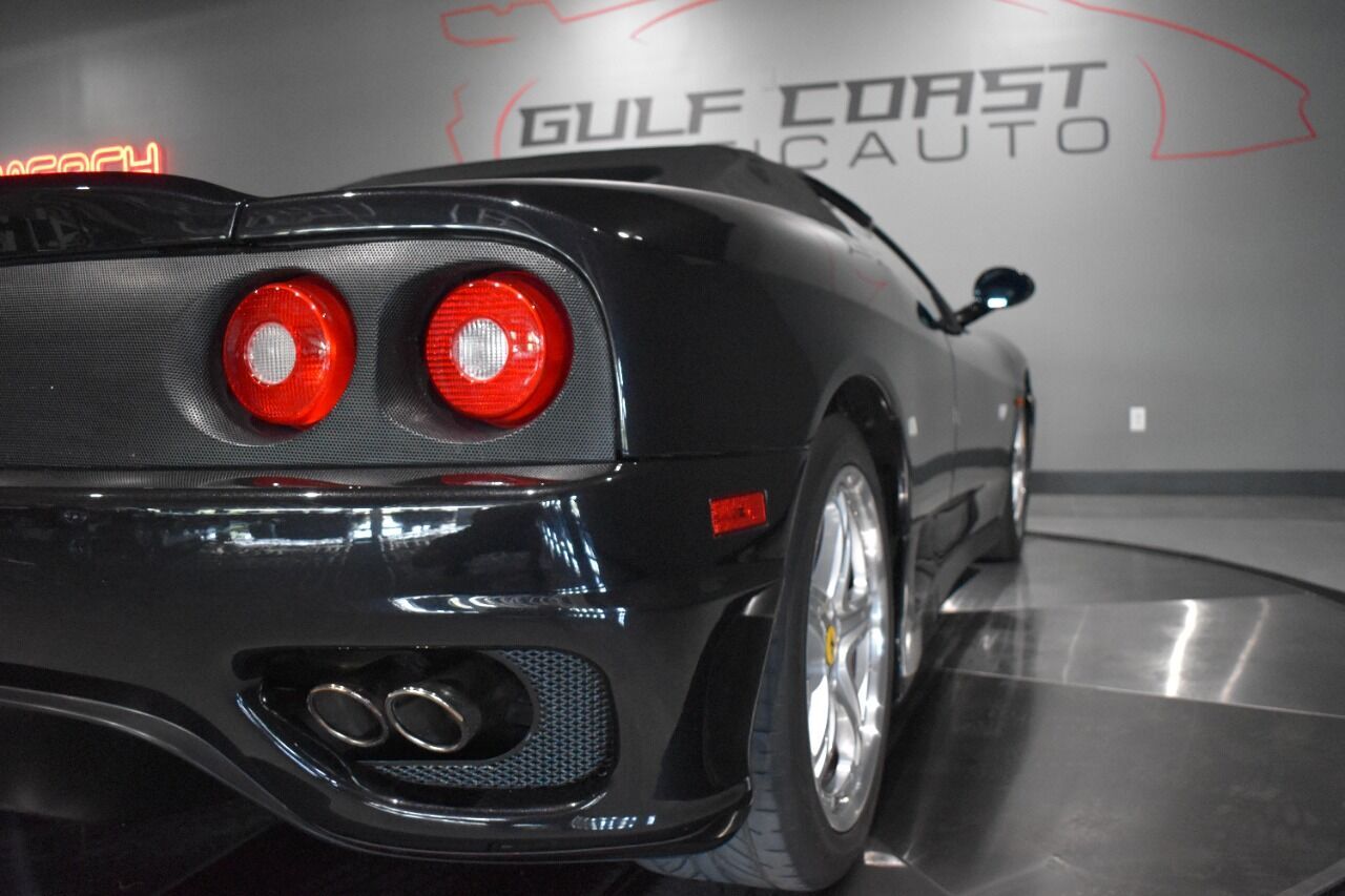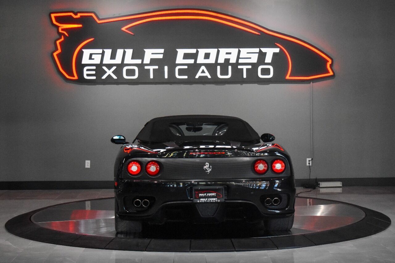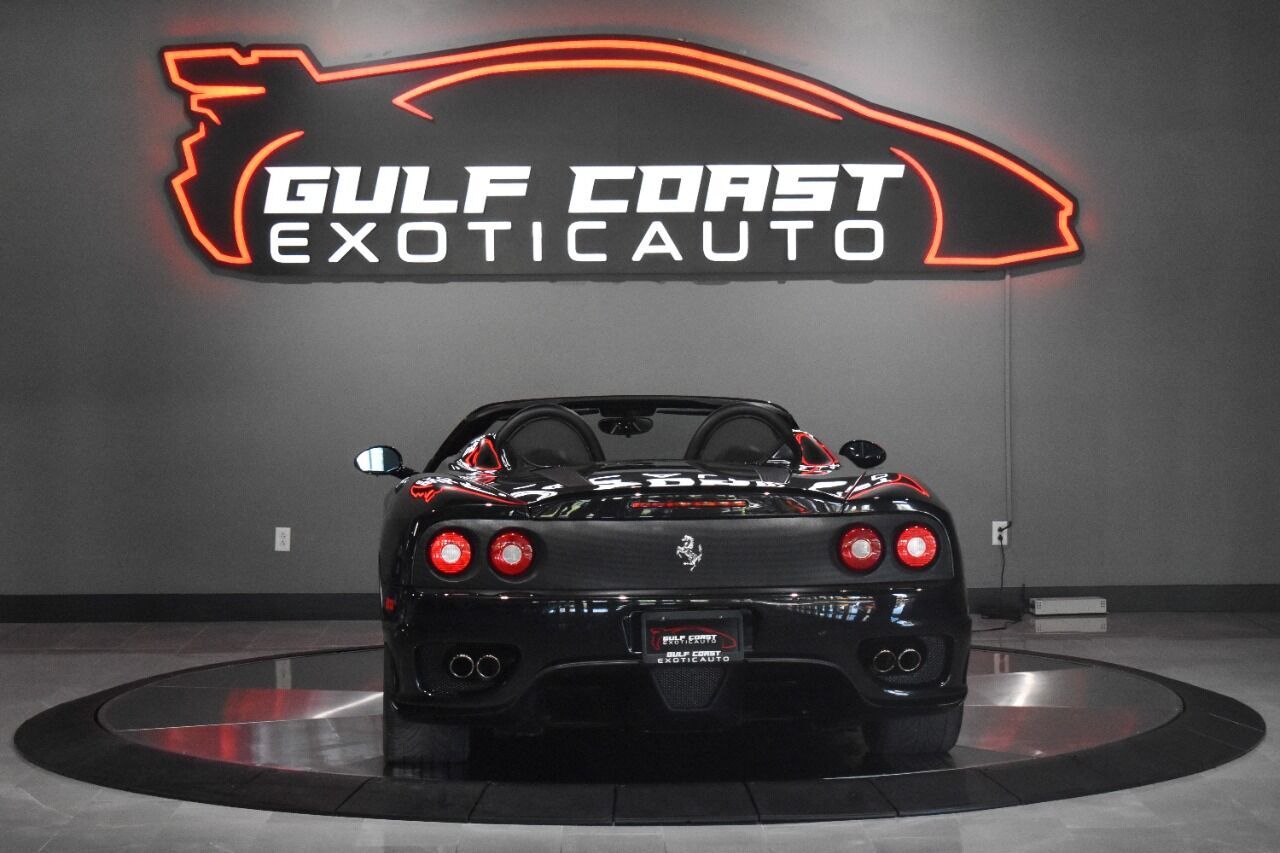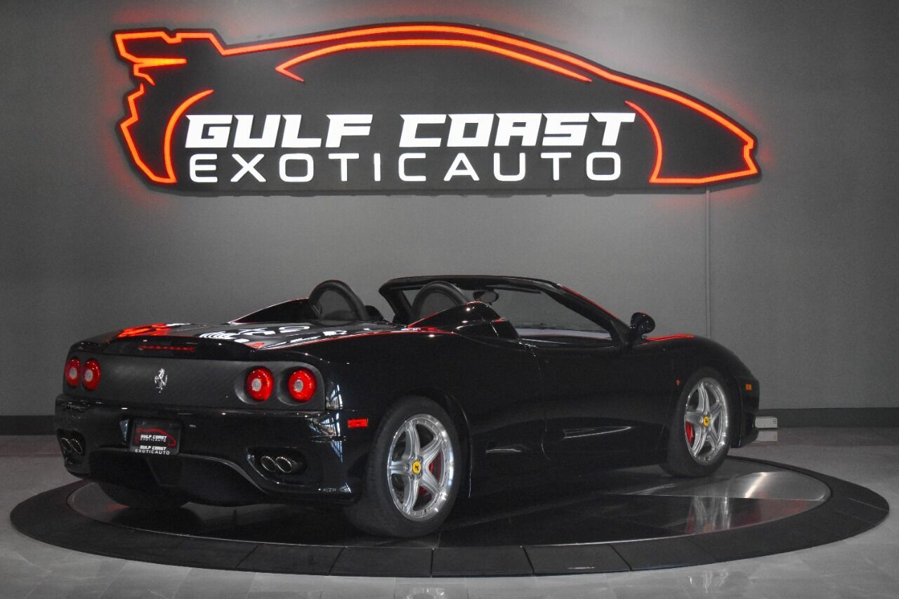 2004 Ferrari 360 Spider F1 now available on consignment with Gulf Coast Exotic Auto ** New Clutch ** New Top ** New Rotors and Brakes ** Just Service with VEX ** Gulf Coast Exotic Auto is proud to present this stunning 2004 Ferrari 360 Spider F1 with a remarkably low 27,946 miles on the odometer. Presented in its original Nero Daytona (Metallic Black) exterior, this stunning Italian convertible is the perfect blend of style, performance, and luxury. Featuring a mid-mounted 3.6L V8 engine producing 400 horsepower and mated to a semi-automatic 'F1' transmission, this Italian stallion offers an exhilarating driving experience. The rapid gear changes facilitated by the paddle shifters transport you to the heart of Maranello, Italy, the home of the prancing horse brand. The exterior of the 2004 Ferrari 360 Spider F1 is beautifully accented by Red Brake Calipers and Modular Wheel Rims, adding a touch of sportiness to the overall elegant design. The Nero Daytona (Metallic Black) paintwork is truly captivating, providing a stylish canvas that perfectly highlights the sharp lines and muscular curves of this classic Ferrari design. Inside, the cabin is just as impressive, furnished in plush Nero (Black) leather. The Electrically Operated Daytona Style Seats not only offer unrivaled comfort but also a tailored driving position at the touch of a button. The striking contrast of All Stitching in Blanco against the black leather accentuates the attention to detail and craftsmanship that is synonymous with the Ferrari brand. Despite its age, the 360 Spider F1 remains a desirable model in Ferrari's lineup, showcasing timeless design and robust engineering that continue to captivate car enthusiasts worldwide. This specific model's rich specification list coupled with its low mileage makes it an excellent choice for any exotic car collection or the discerning driver who demands performance without compromising on luxury. Whether you're a Ferrari aficionado or an automotive enthusiast with an eye for timeless design and impressive performance, this 2004 Ferrari 360 Spider F1 is an investment opportunity not to be missed. Contact Gulf Coast Exotic Auto today to learn more about this prancing horse's unique appeal and make it a part of your collection. Experience the thrill of owning a piece of iconic automotive history. For more information or to schedule a viewing, contact please contact Jonathan228-220-0298 or Chris228-220-0298. We offer finance options, we take trade-ins, free airport pick up and worldwide shipping. Mon-Fri 8:00AM-6:00PM Sat- By App only