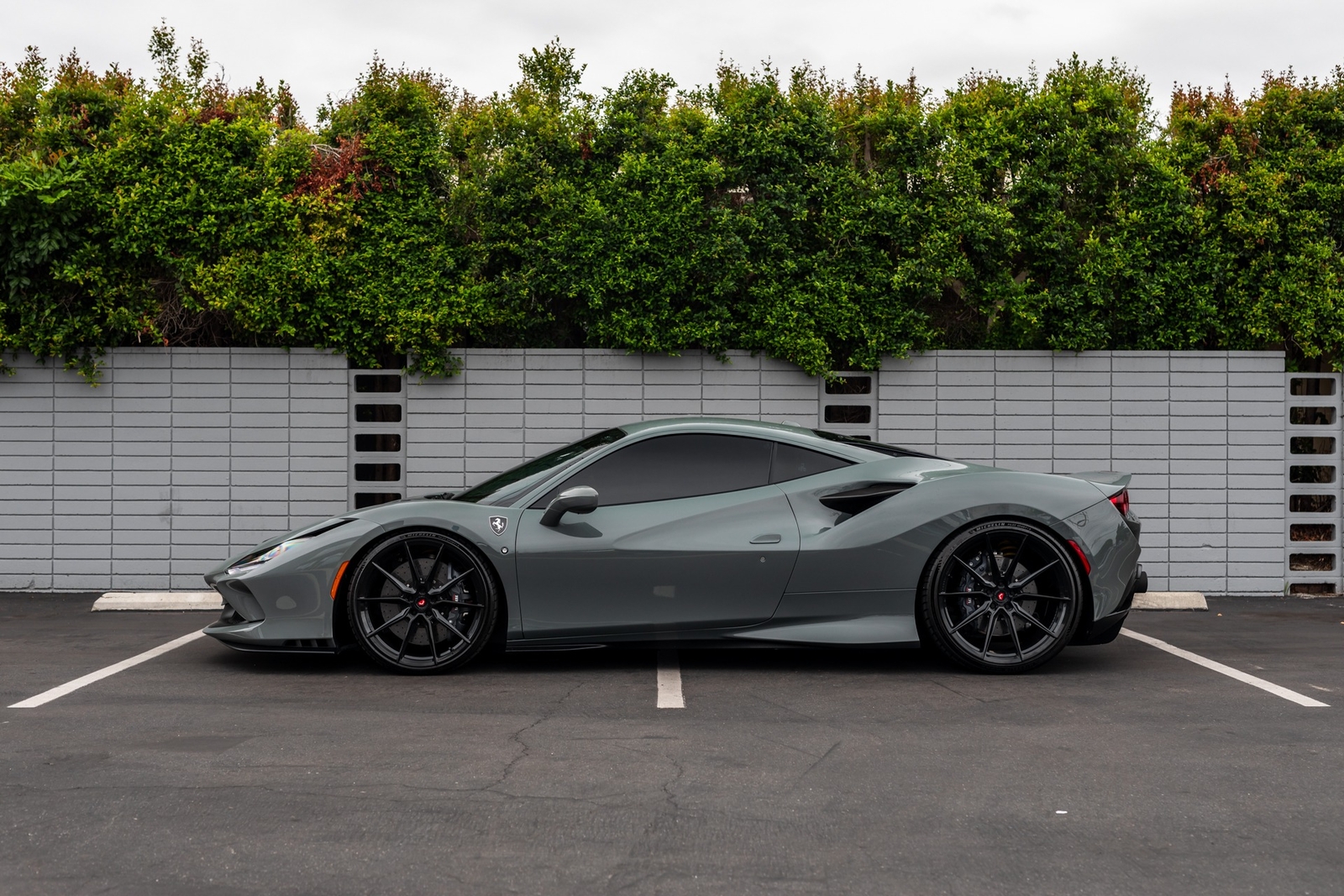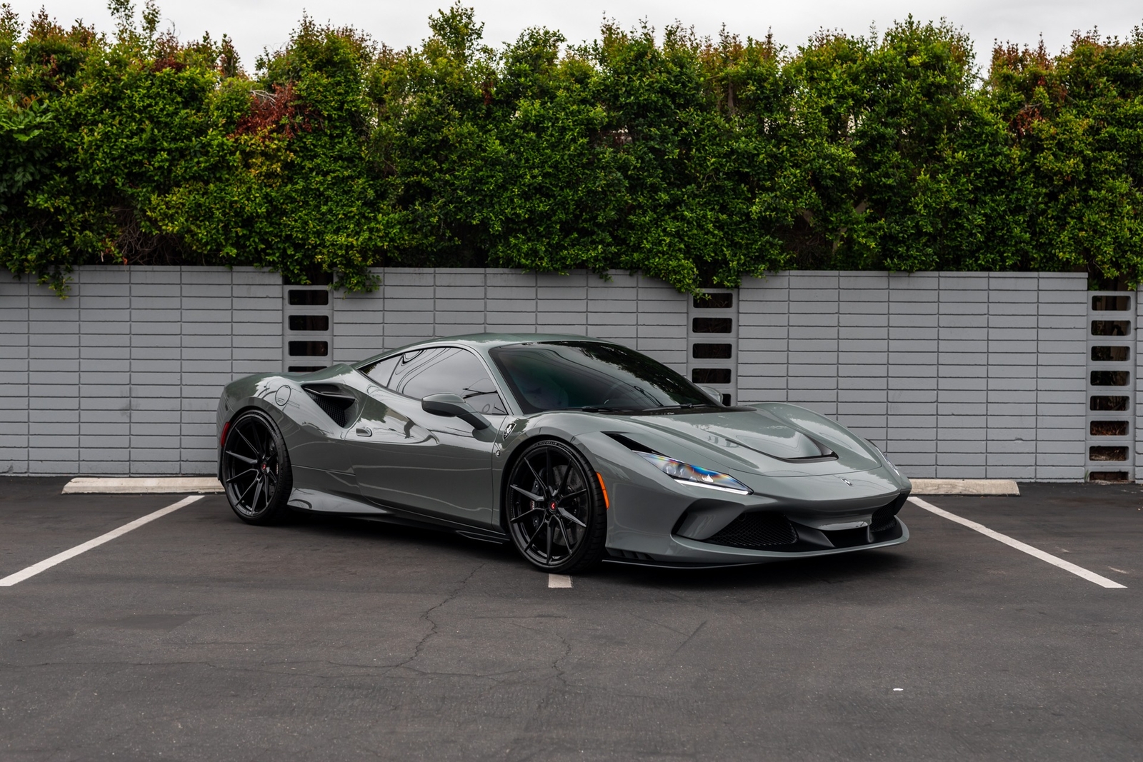 The exterior of the F8 Tributo is finished in a striking Grigio Medio paint color, showcasing the car's sleek and aerodynamic design. This Ferrari is sure to turn heads wherever it goes, making a bold statement on the road.