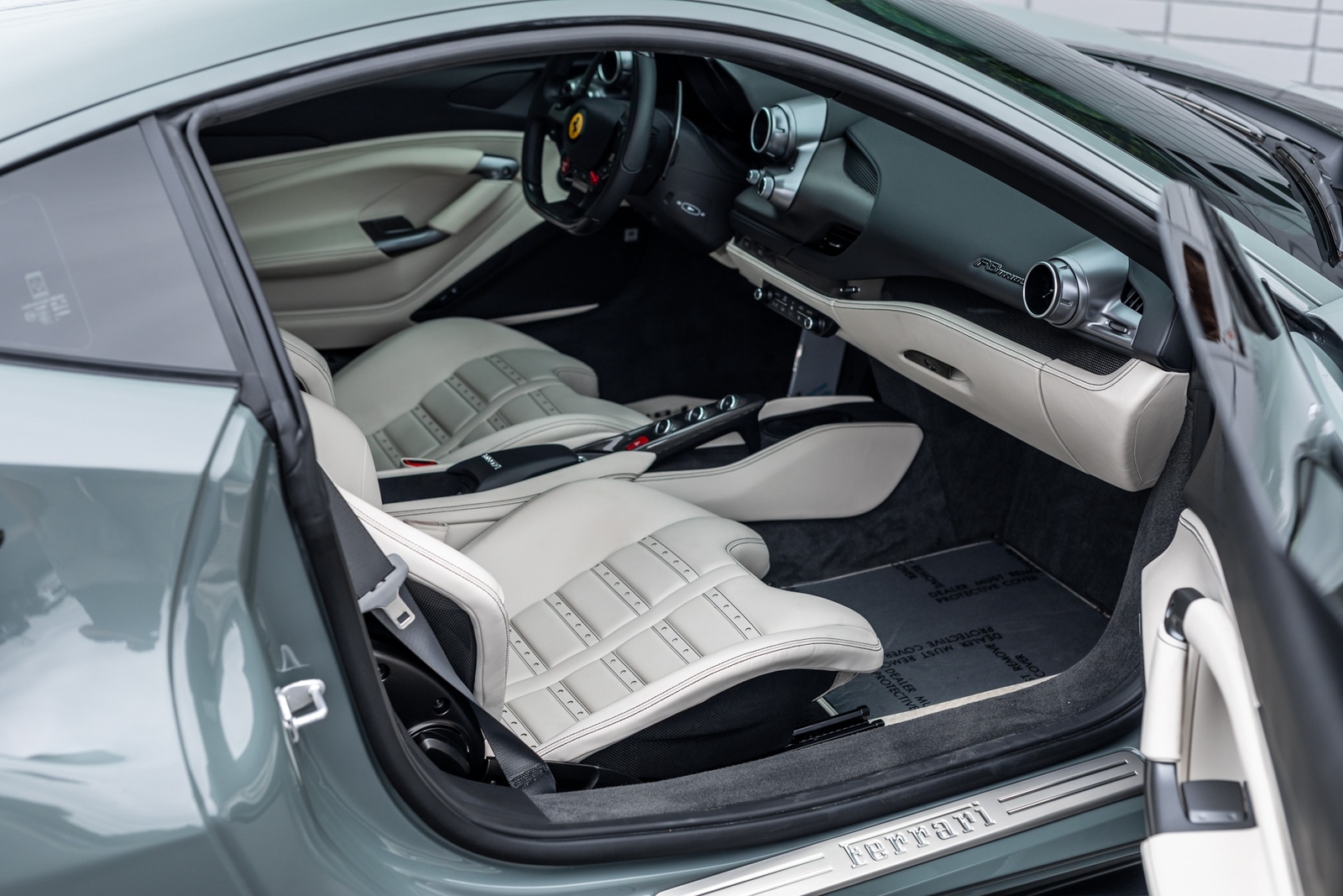 The carbon fiber driver zone+leds adds a touch of modernity and sportiness to the interior, while the suspension lifter allows for effortless maneuvering over speed bumps and uneven terrain. The horse stitched headrests and colored floor mats with logo add a personalized touch to the cabin, showcasing the attention to detail that Ferrari is renowned for.