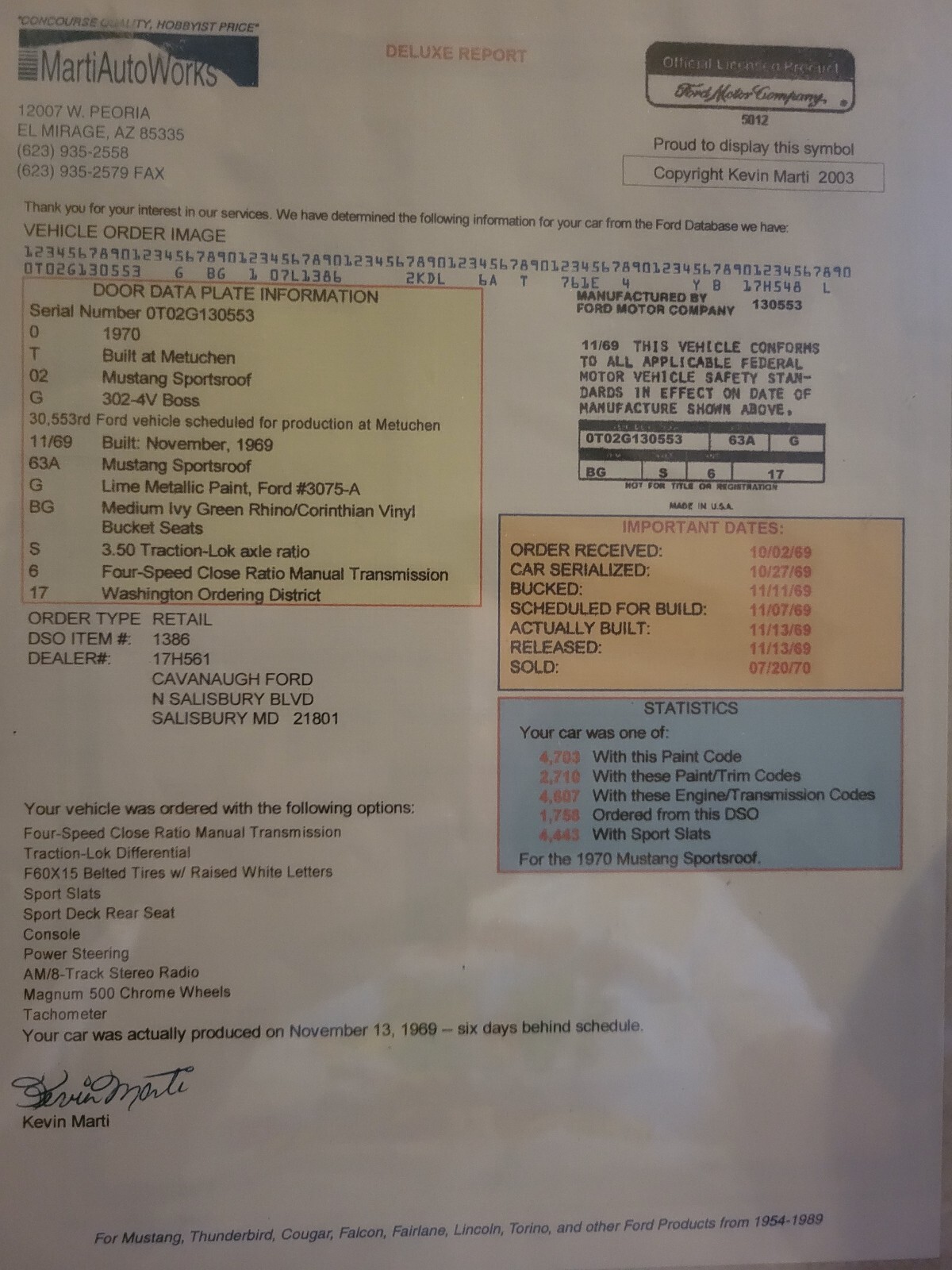 I am selling my 302 Boss that I'v had for for 20+ years. I had a complete off the frame restoration done. All the undercarriage is original metal, torque boxes, frame rails, floor pans ect. All the exterior metal is original, other than the doors, I replaced both doors and bumpers. All Steering, Brakes, Gas tank, hoses Bearing, rotors, ect. ect. Were replaced.