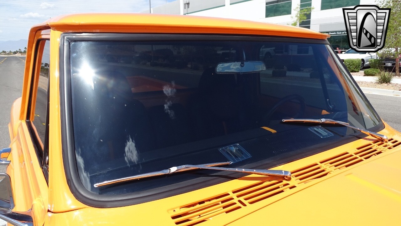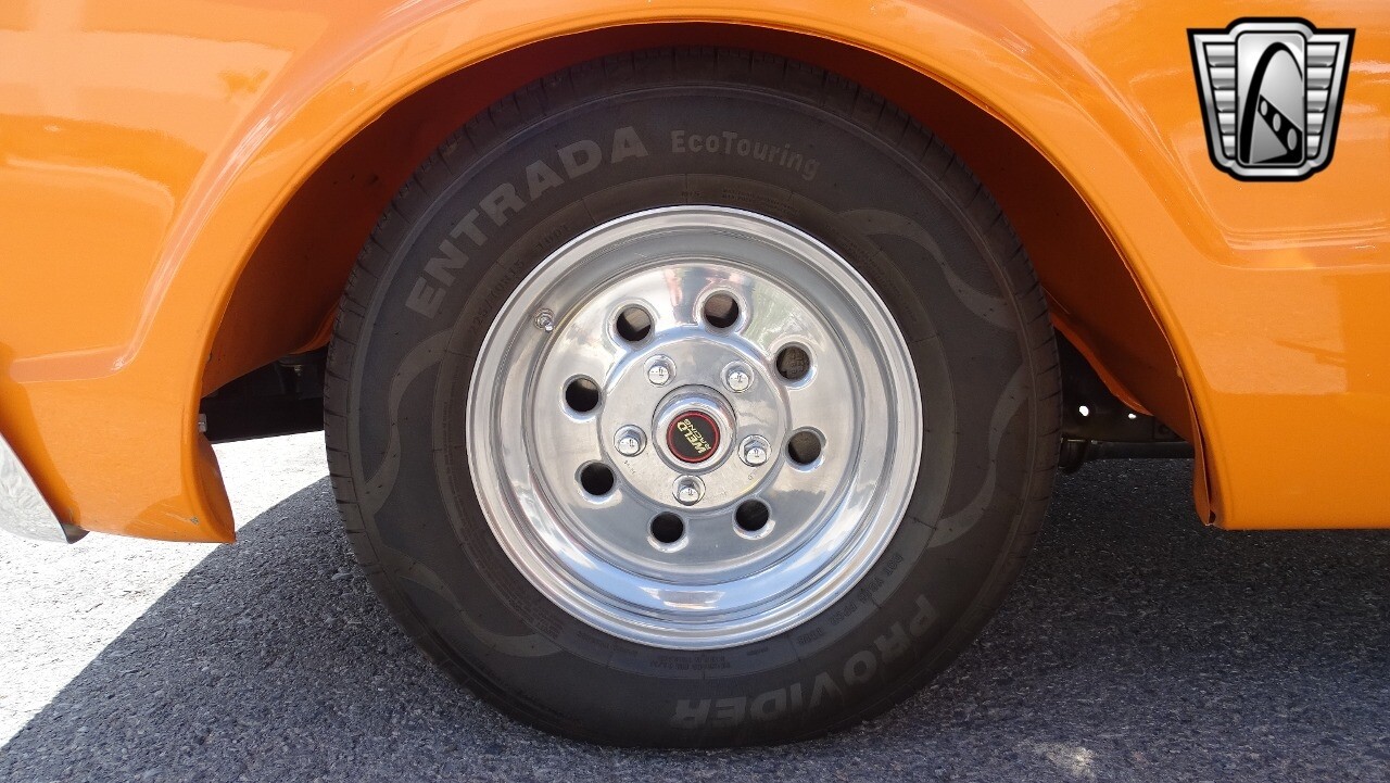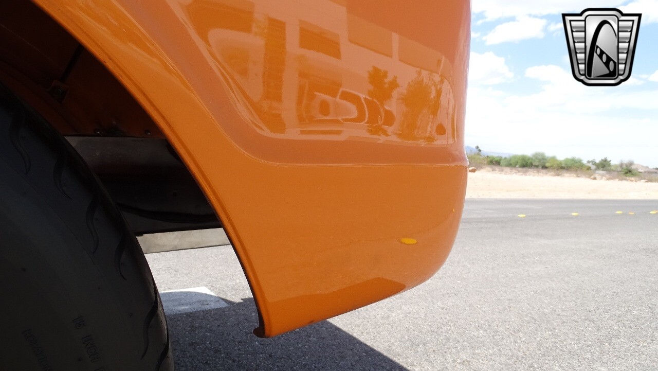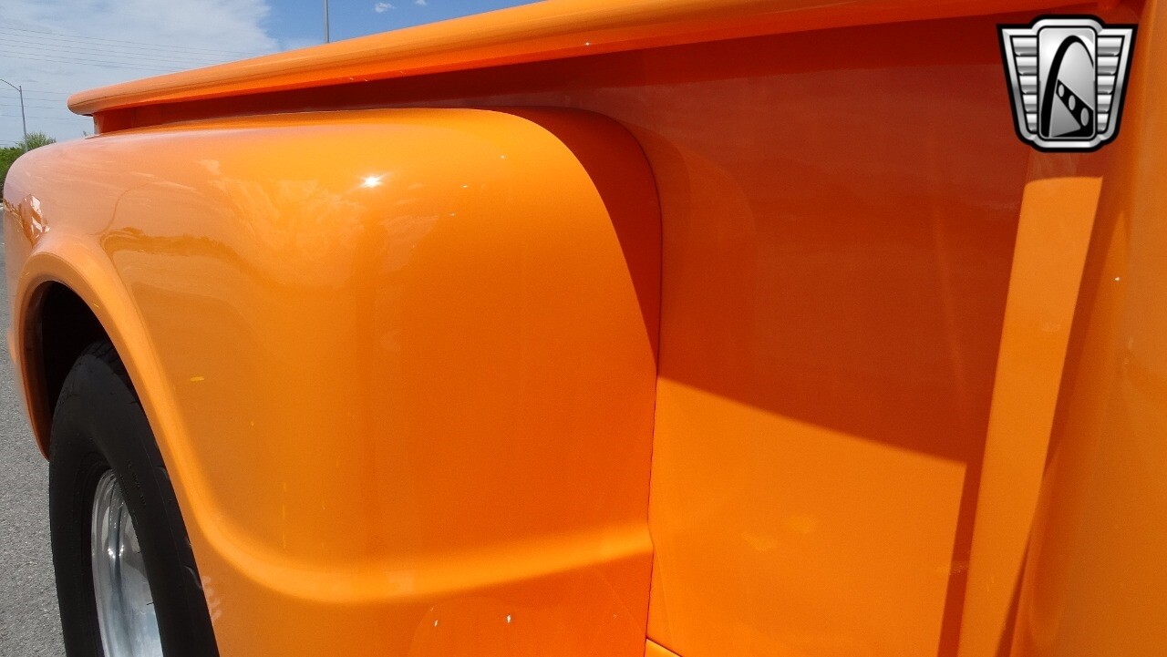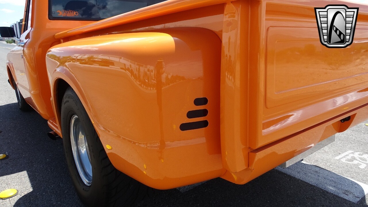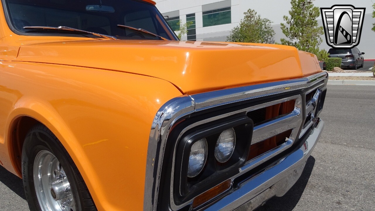 Gateway Classic Cars of Las Vegas is proud to digitally present this 1971 GMC C1500 Short bed Pickup. [ omitted ]. Walking around this pre-street '71 one should notice the Mercedes Orange gloss paint that is offset with black accent trim. Adding to the curb appeal are chrome bumpers, chrome mirrors, chrome handles, dual side exhaust, tinted windows, side steps, short-bed, light tan wood bed kit, 1-piece molded bed, frenched in taillights, fuel cell located in the bed, and even an aggressive mini-tubbed stance with rear air bags, and 15" Weld Racing rims wrapped in Mickey Thompson radial tires. Jumping into the cab of this recently restored piece of GM history, you instantly see the exterior theme was carried inside to match. Sporting a custom black leather bench seat with orange inserts, orange stitching, matching dash pad, matching custom orange/black door panels, chrome accent trim, tilt steering wheel, aftermarket Auto-Meter Pro Comp gauges, White Hurst shifter on the floor, upgraded sound system with Pioneer head unit and Rockford Fosgate speakers, and even a MSD ignition setup. Powering this beast is a 383 CID V8 engine that is mated to a performance built 4-speed manual transmission. The owner states that the engine was rebuilt less than 1,000 miles ago and has provided a dyno report from ATK High Performance Engines. The report shows this truck is capable of 500 HP/505 FT TQ, prefers 91 plus octane, and is ready to run! Pushing this power to the ground is a Ford 9" Rear with 3.70 gears. Under the hood is organized and shows upgrades that include dual electric cooling fans, aluminum Edelbrock intake, 1 Inch Headman headers, ATK HP Heads, Weiland action long pump water pump, Quick Fuel 750CFM Carburetor, and so on! This truck also provides ease of power steering and power brakes. The owner provided a complete breakdown of the engine specs, receipts from other items purchased for this build, and even the dyno report. If you are looking for a built beast that needs nothing but a new owner, this could be the one you have been searching for!.