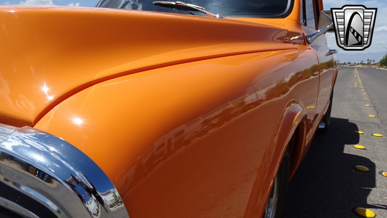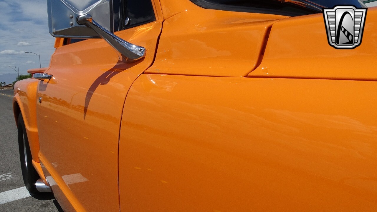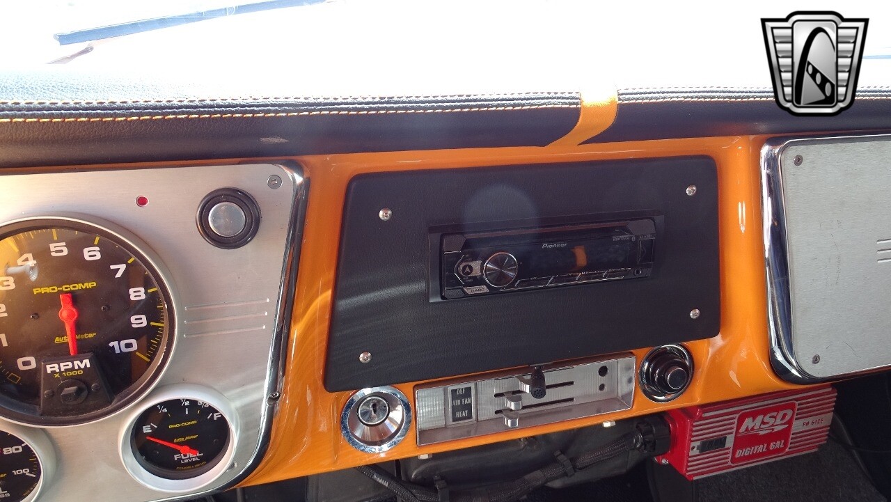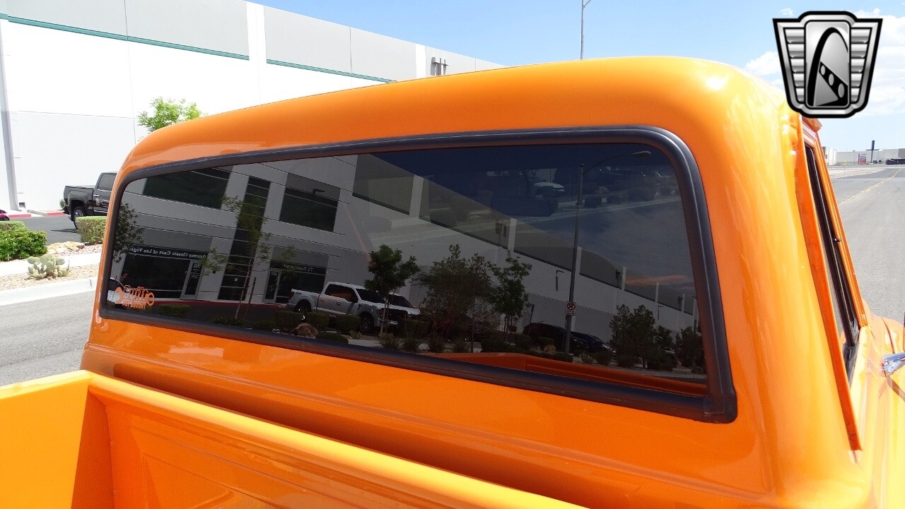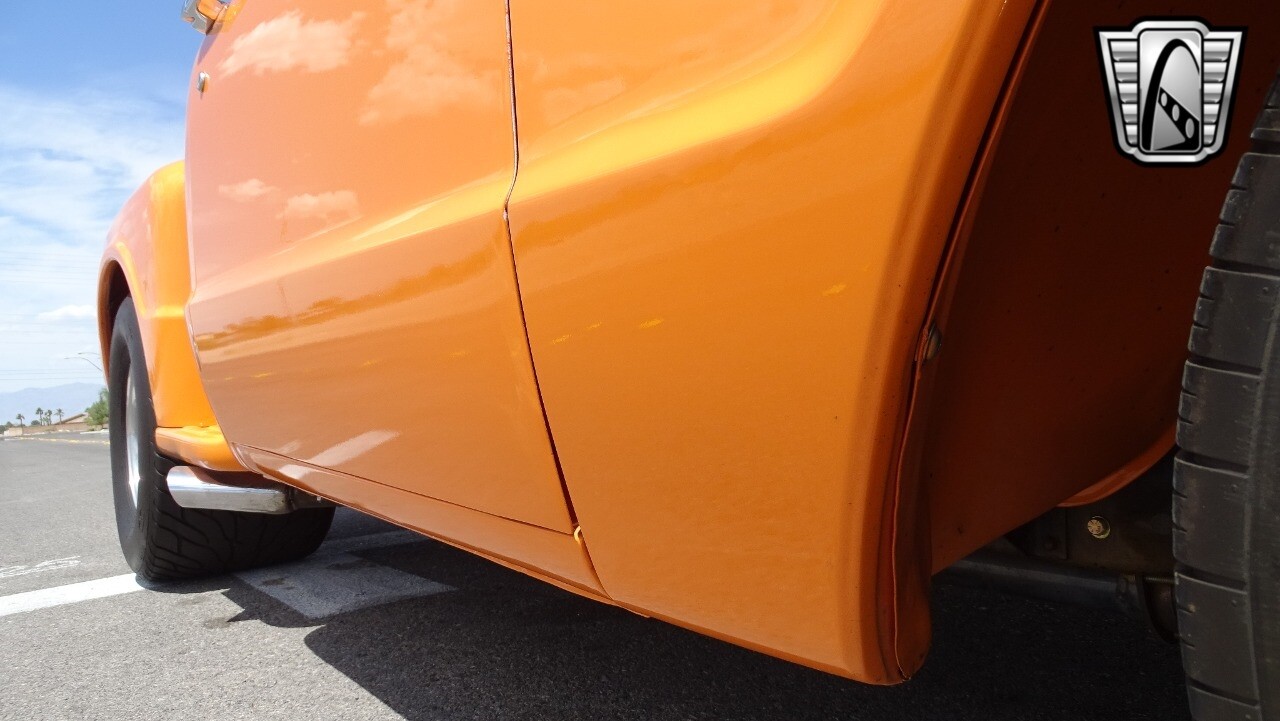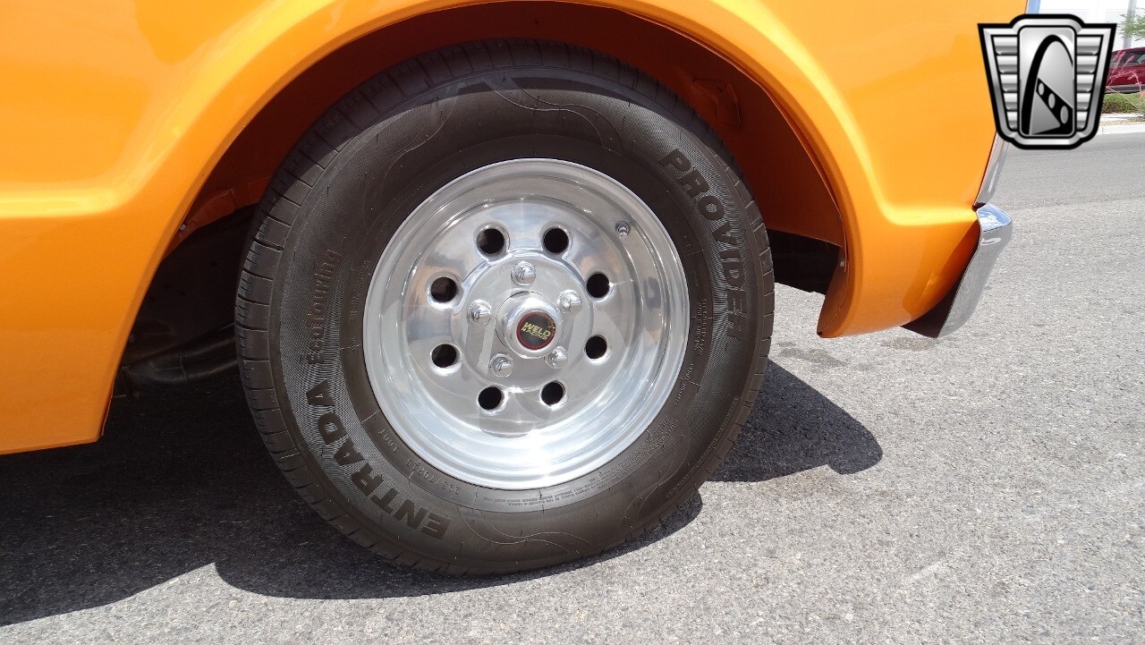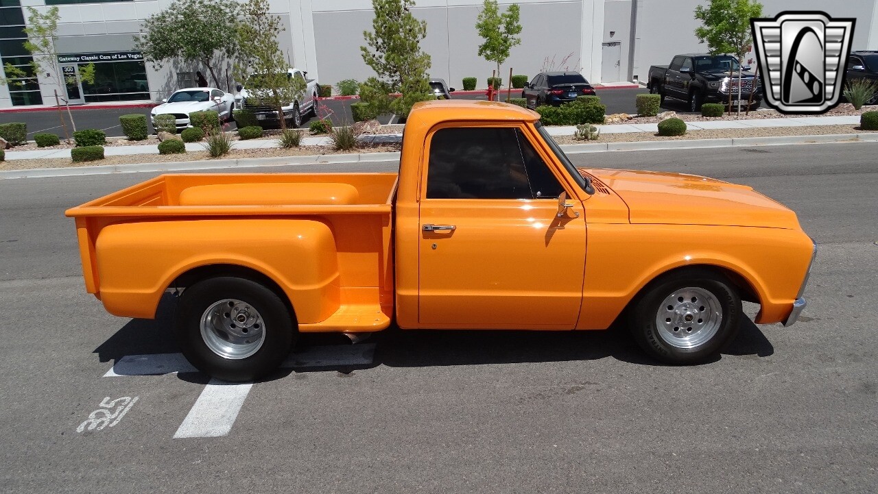 Gateway Classic Cars of Las Vegas is proud to digitally present this 1971 GMC C1500 Short bed Pickup. [ omitted ]. Walking around this pre-street '71 one should notice the Mercedes Orange gloss paint that is offset with black accent trim. Adding to the curb appeal are chrome bumpers, chrome mirrors, chrome handles, dual side exhaust, tinted windows, side steps, short-bed, light tan wood bed kit, 1-piece molded bed, frenched in taillights, fuel cell located in the bed, and even an aggressive mini-tubbed stance with rear air bags, and 15" Weld Racing rims wrapped in Mickey Thompson radial tires. Jumping into the cab of this recently restored piece of GM history, you instantly see the exterior theme was carried inside to match. Sporting a custom black leather bench seat with orange inserts, orange stitching, matching dash pad, matching custom orange/black door panels, chrome accent trim, tilt steering wheel, aftermarket Auto-Meter Pro Comp gauges, White Hurst shifter on the floor, upgraded sound system with Pioneer head unit and Rockford Fosgate speakers, and even a MSD ignition setup. Powering this beast is a 383 CID V8 engine that is mated to a performance built 4-speed manual transmission. The owner states that the engine was rebuilt less than 1,000 miles ago and has provided a dyno report from ATK High Performance Engines. The report shows this truck is capable of 500 HP/505 FT TQ, prefers 91 plus octane, and is ready to run! Pushing this power to the ground is a Ford 9" Rear with 3.70 gears. Under the hood is organized and shows upgrades that include dual electric cooling fans, aluminum Edelbrock intake, 1 Inch Headman headers, ATK HP Heads, Weiland action long pump water pump, Quick Fuel 750CFM Carburetor, and so on! This truck also provides ease of power steering and power brakes. The owner provided a complete breakdown of the engine specs, receipts from other items purchased for this build, and even the dyno report. If you are looking for a built beast that needs nothing but a new owner, this could be the one you have been searching for!.