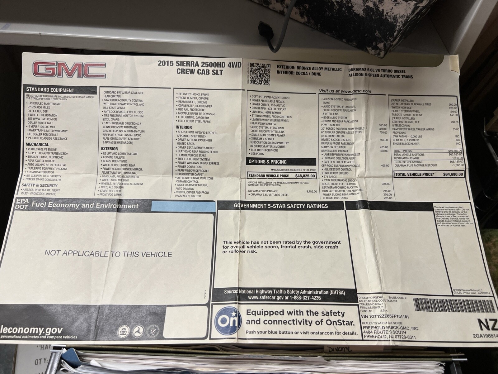 For sale is my 2015 GMC sierra SLT fully loaded diesel. It has every option that was available in 2015. Has about $8,000-$9,000 in upgrades . Only 125k miles runs and drives like brand new . Other than intake engine is stock all emissions are in place .