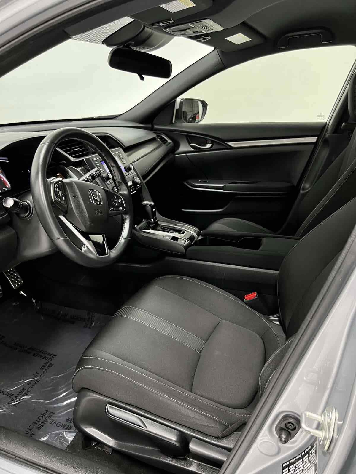 Our One Owner 2019 Honda Civic Hatchback Sport in Lunar Silver Metallic is agile and enthusiastic. Fueled by a TurboCharged 1.5 Liter 4 Cylinder that generates 174hp connected to a paddle shifted CVT. Prepare to smile each time you get behind the wheel of our Front Wheel Drive hatchback that rewards you with near 36mpg on the highway. Check out the expressive and angular lines of this Sport hatchback; it lets you stand out from the crowd and features great-looking alloy wheels - dual exhaust - fog lights - and an under-body spoiler kit. The sleek and spacious Sport interior is ready to serve you well with a multi-angle rearview camera - power accessories - textured aluminum pedals - a leather-wrapped steering wheel - and illuminated steering wheel-mounted controls. You'll stay on track and safely connected with Bluetooth - a USB audio interface - and a color LCD screen. Honda offers stability control - ABS - airbags - and other carefully crafted safety features that keep you out of harm's way as you take in this joyride. You deserve sporty styling - versatile practicality - and a brilliant drive - so get behind the wheel of this Civic Sport hatchback and reward yourself today with adaptive cruise control - forward collision warning - lane keeping assist - and lane departure warnings. Save this Page and Call for Availability. We Know You Will Enjoy Your Test Drive Towards Ownership!