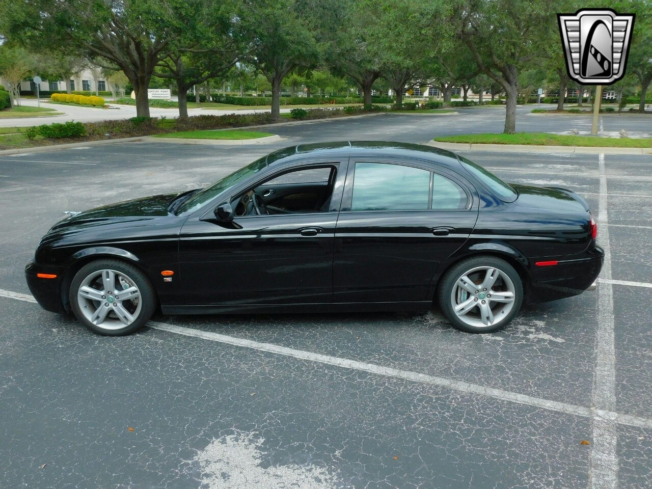 Introducing the 2005 Jaguar S-Type R, a stunning blend of power, luxury, and style. This sleek vehicle is finished in a sophisticated black exterior, complemented by a luxurious black leather interior, creating a timeless and elegant aesthetic.