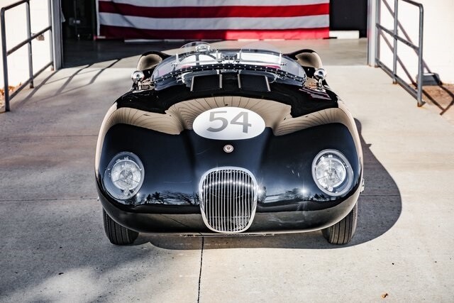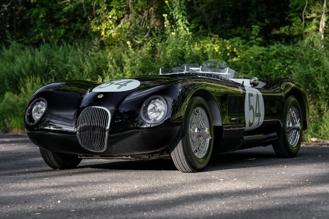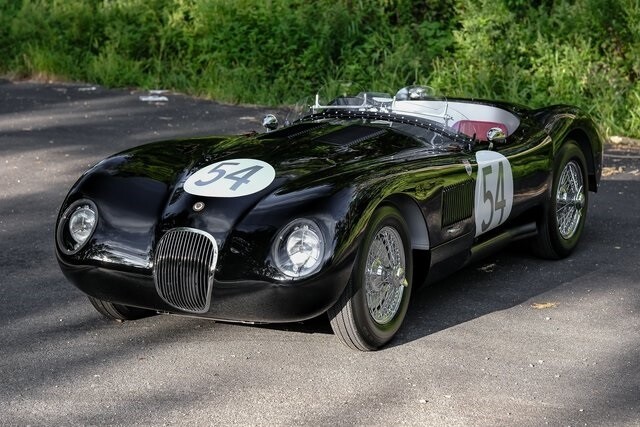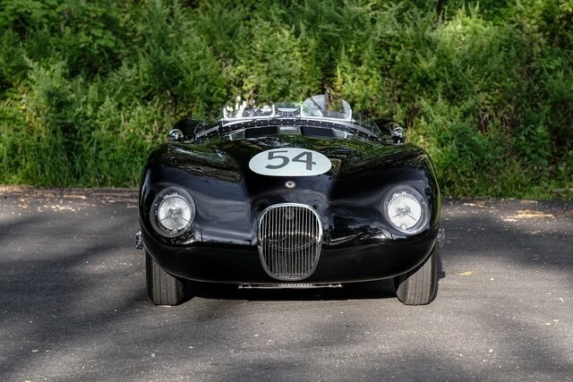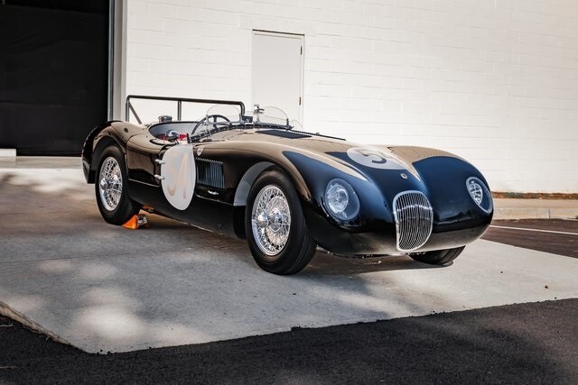 This C-Type re-creation is now offered with invoices from the last two years and a New Jersey title describing it as a 1954 Jaguar. Jaguar developed the aluminum-bodied, tube-frame C-Type as a competition variant of the XK120 after the latter showed promise racing in the hands of privateers. Approximately 50 examples of the original C-Type were built, among them the 1951 and 1953 24 Hours of Le Mans winners.