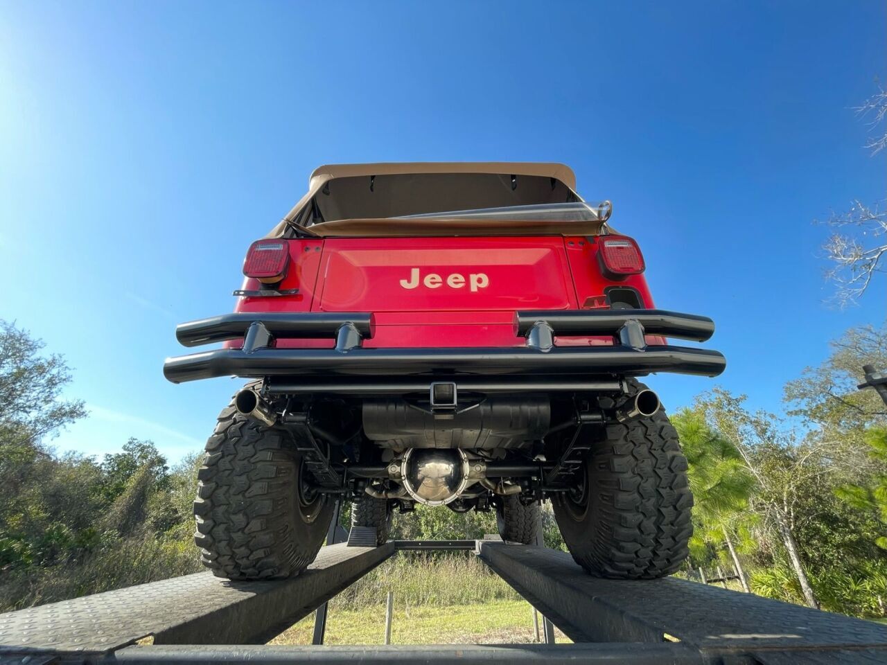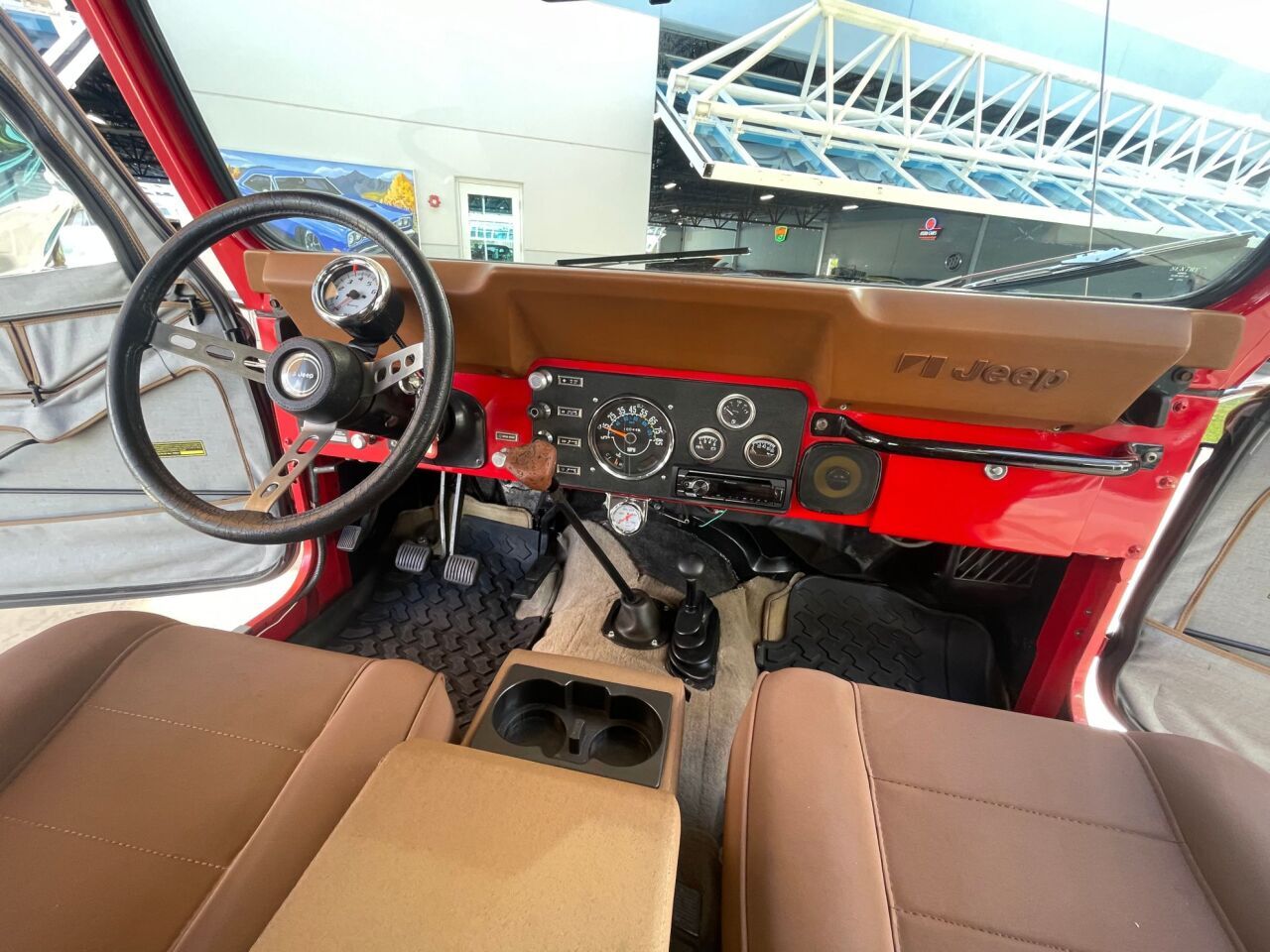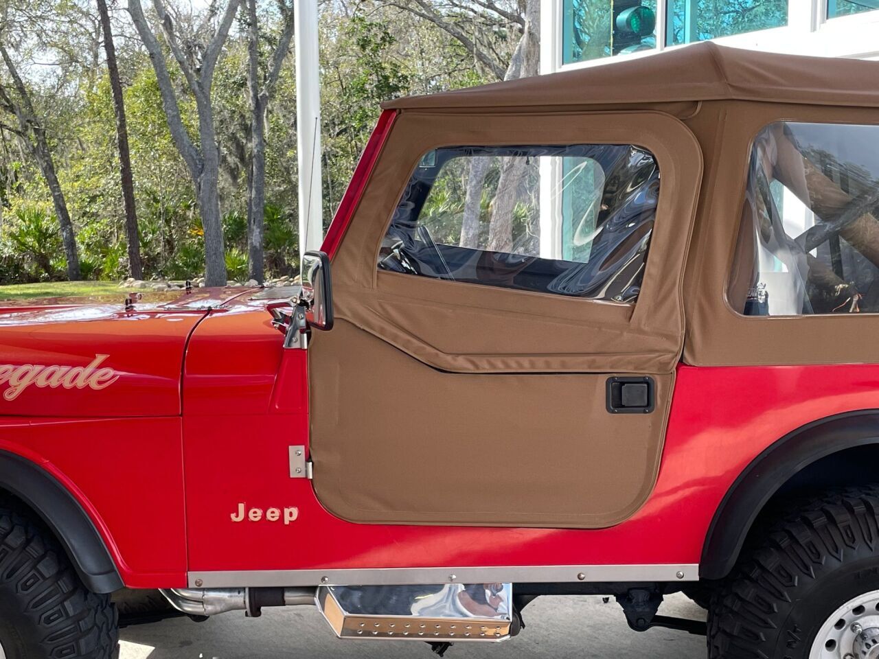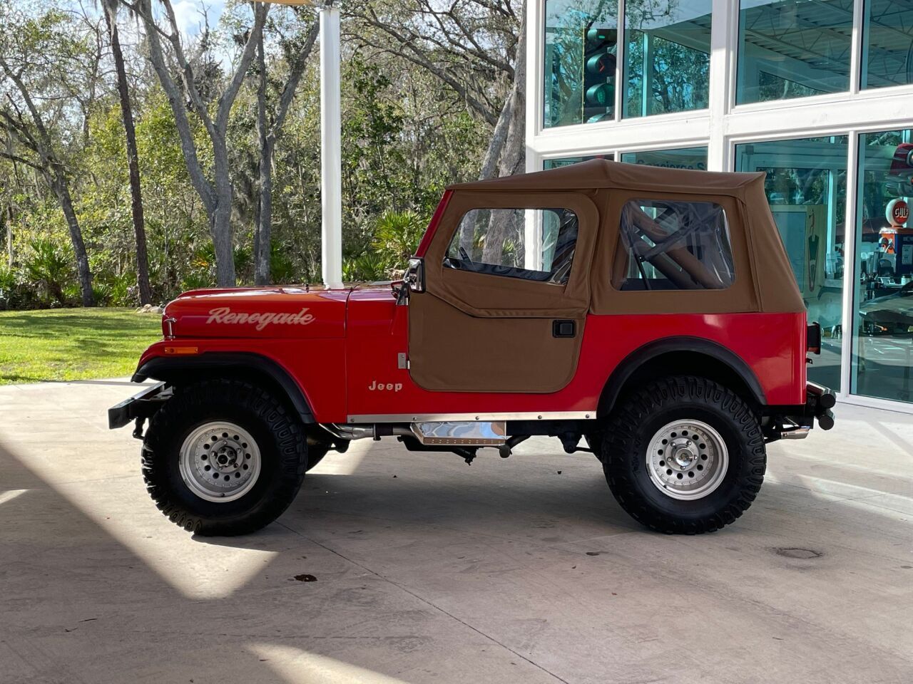 1979 Jeep Renegade CJ Why This Car Is Special The Jeep CJ or aˆoeCivilian Jeepaˆ? is the predecessor to the Jeep Wrangler. They are tough, reliable and incredibly fun. There are more parts available to customize a Jeep and make it your own, than any other vehicle on the planet. The strong V8, fat tires and wheels, 4x4 lifted stance, and restoration makes this rare 1979 Jeep CJ we have here at Skyway Classics quite a nice package. Features 1979 Jeep Renegade Fresh V8 304 engine with Crane Cam Edelbrock chrome open element air cleaner Aluminum Intake Edelbrock valve covers Performance 4-barrel carb Modified distributor electronics system and black spark plug wires 3-speed Straight shift 4x4 Power steering Disc brakes Ceramic coated Headers Rest of the engine and engine compartment looking stock and original Restored interior High-back front seats and matching rear seat and door panels Black sport steering wheel Black weather resistant mats Full Jeep gauges in the restored dash Black passenger grab handle Kenwood stereo radio Cup holder center console Full padded roll cage Floor shifters Complete saddle top including doors. Bright Red paint is nice Renegade callouts on the hood Jeep side emblems Black attributes including the black front and rear bumpers Dual mirrors Black fiberglass fender flares Removable saddle soft-top. Mechanical Under this hood is the Fresh V8 304 engine with Crane Cam with high-performance parts like the Edelbrock chrome open element air cleaner, Aluminum Intake, Edelbrock valve covers, Performance 4-barrel carb, Modified distributor electronics system and black spark plug wires, 4x4, Power steering, Disc brakes, Ceramic coated Headers, and the rest of the engine and engine compartment looking stock and original. The Jeep/AMC 304 cubic-inch V8 engine that was always considered a torque master for crawling muscle off road or on the sand that you want in a Jeep and ours makes a lot more power. That makes for a strong-running Jeep with the manual transmission that lets you take control over the 4x4 transfer case and custom aftermarket wheels and fat black sidewall tires. Interior The restored interior is just as Jeep intended it and very clean, complete, and quite functional with the high-back front seats and matching rear seat and door panels, black sport steering wheel, black weather resistant mats, full Jeep gauges in the restored dash, black passenger grab handle, Kenwood stereo radio, cup holder center console, full padded roll cage that adds strength and security, floor shifters, and covered by a complete saddle top including doors. Exterior Bright Red paint always looks good on a Jeep, and this one is no exception. The paint is nice and is set-off by the Renegade callouts on the hood, Jeep side emblems, black attributes including the black front and rear bumpers, dual mirrors, black fiberglass fender flares, and that removable saddle soft-top. Conclusion Whether you want a daily driver, off-roader, or a beach cruiser, this 1979 Restored Jeep Renegade CJ was built to handle it all, and it does it so well. This is the restored Jeep you will love with the Jeep style and V8 power you don't often get elsewhere. So don't let this one slip away. Call today!!! So give us a call at866-718-9103. Disclaimer Information found on the website is presented as given to us by the owner of the car, whether on consignment or from the owner we bought it from. Some Photos, materials for videos, descriptions and other information are provided by the consignor/seller and is deemed reliable, but Skyway Classics does not warranty or guarantee this information. Skyway Classics is not responsible for information that may incorrect or a publishing error. The decision to purchase should be based solely on the buyers personal inspection of the vehicle or by a professional inspection service prior to offer or purchase being made.