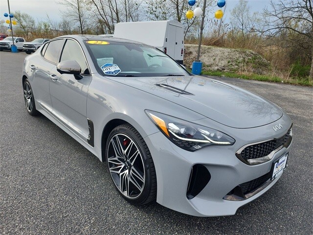 Clean CARFAX. Ceramic Silver 2022 Kia Stinger GT2 AWD 8-Speed Automatic 3.3L V6 DGI Brake assist, Electronic Stability Control, Navigation System, Power Liftgate, Radio: harmon/kardon AM/FM/HD Audio System.
