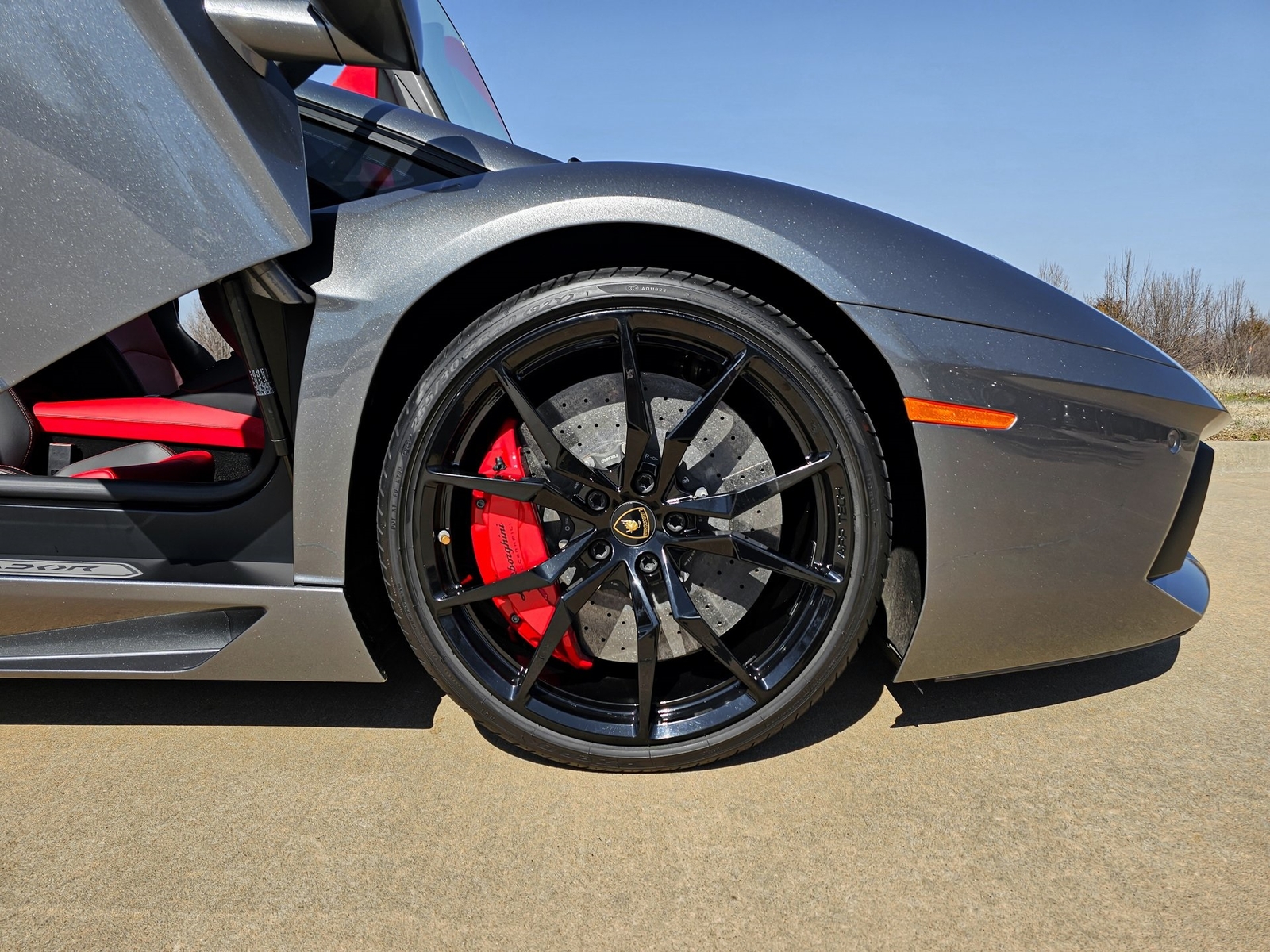 * The new flagship offering from Lamborghini, the Aventador has uncompromisingly crisp contours which are the essence of the Lamborghini brand. The fearless body rests upon 19 inch front and 20 inch rear silver alloy wheels fitted with Pirelli P-Zero tires.