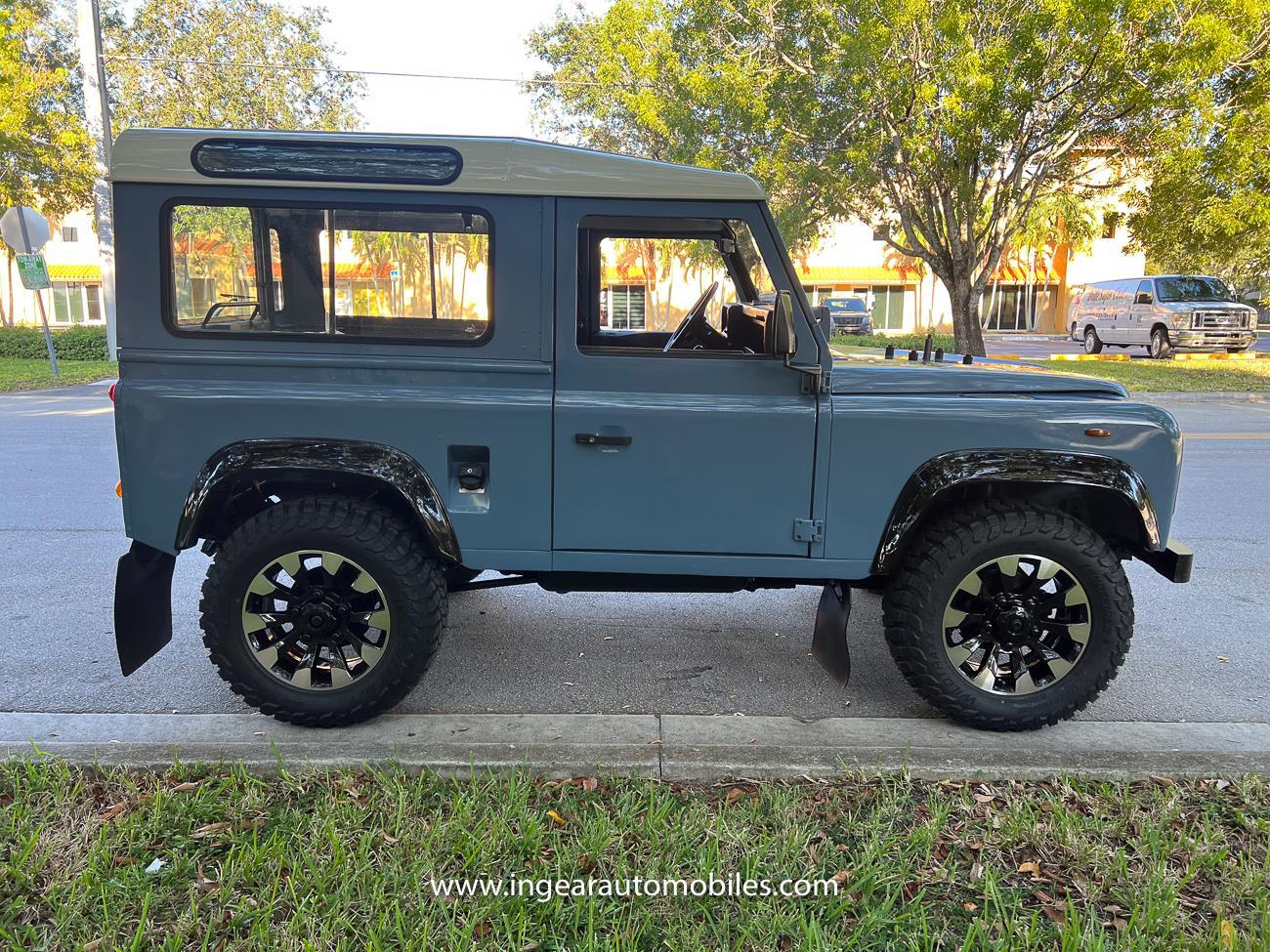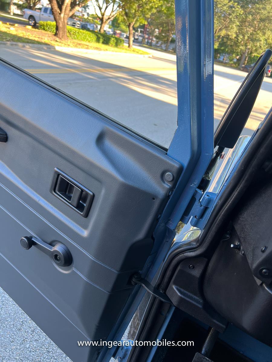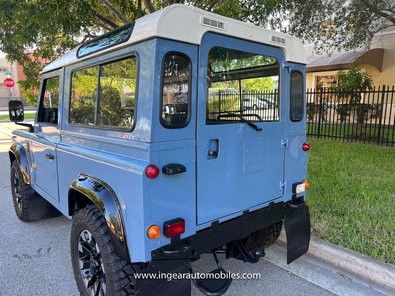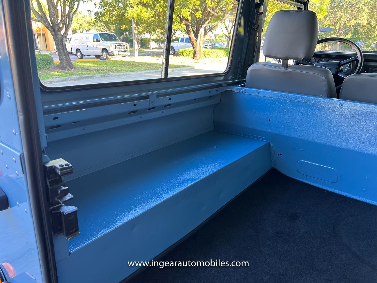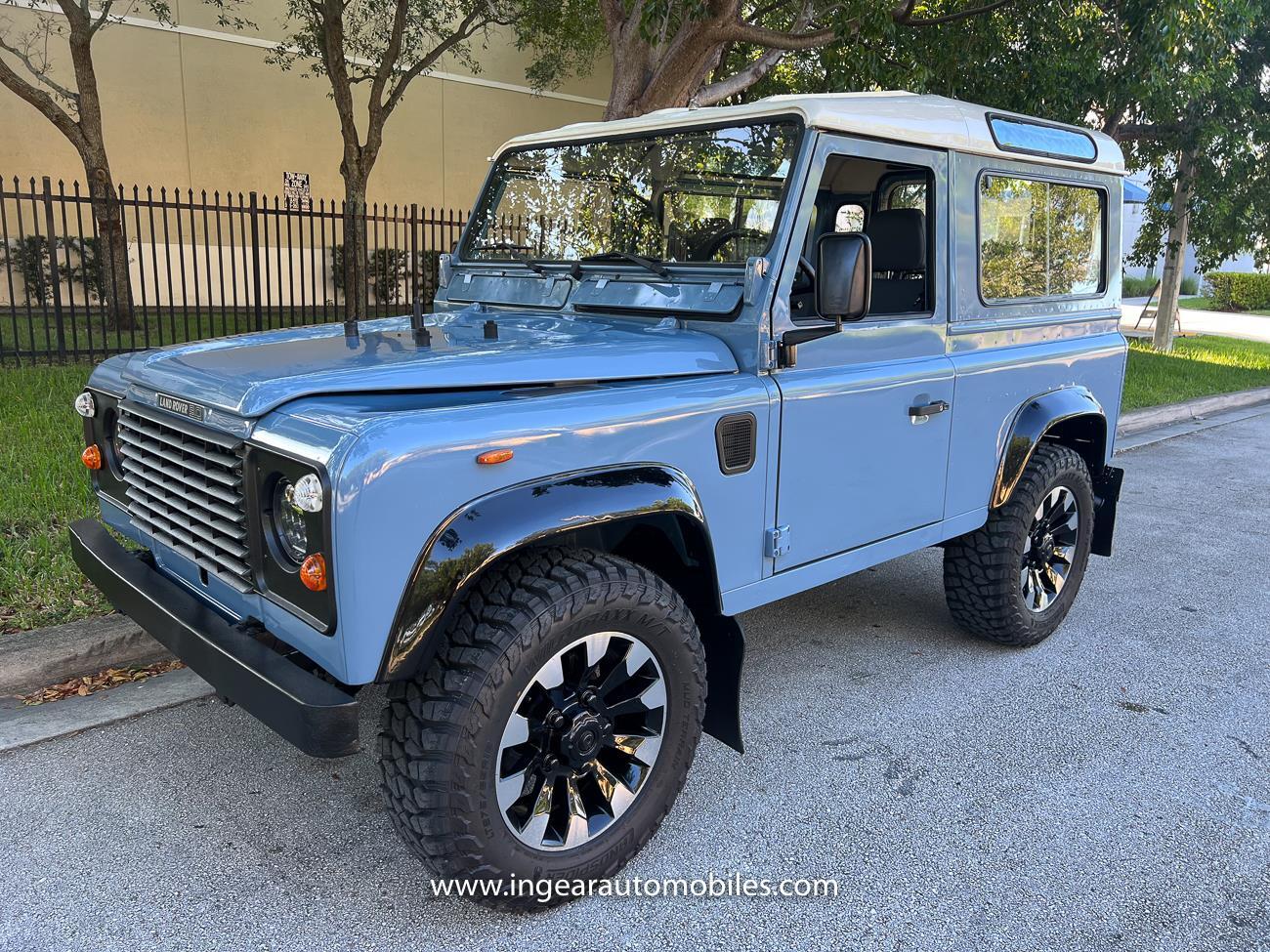 Defender has numerous options such as Power Steering, Power Brakes, Front Disc Brakes, sawtooth wheels, Factory Left Hand Drive, new wheels & tires, buckets seats, fender flares, rear side opening windows, carpet matts, mud guards, rear step, blackout HID headlights, and more…The Interior is nice and contrast well to the exterior safri blue paint, newer upholstery has been fitted, and tastefully done. Factory steering wheel. Has it’s normal wear and tear like any vehicle, but very solid Land Rover, and as you can see it received a restoration by the previous owner. Make sure to see my full album of pictures.
