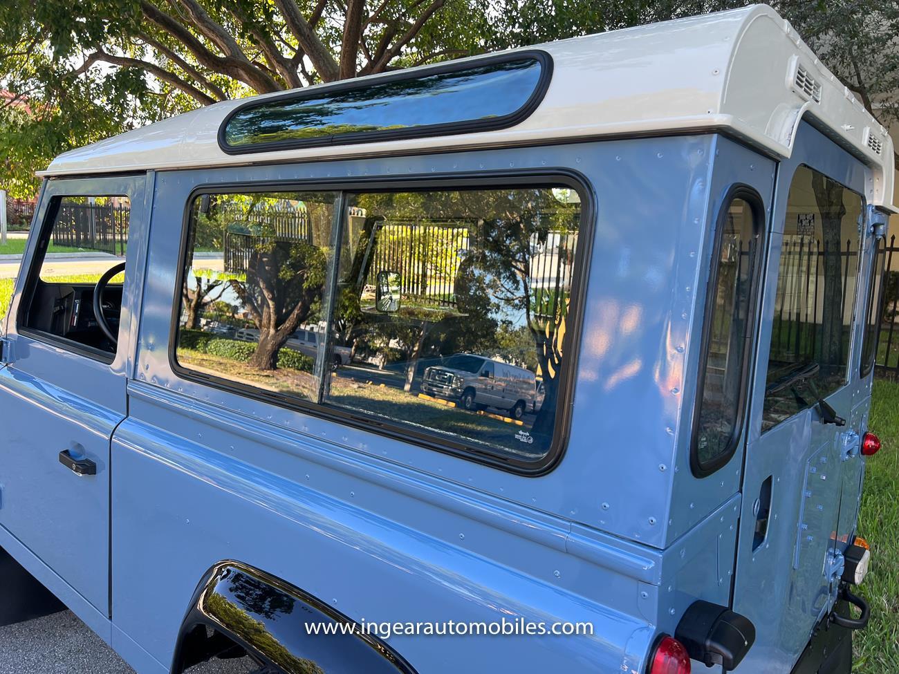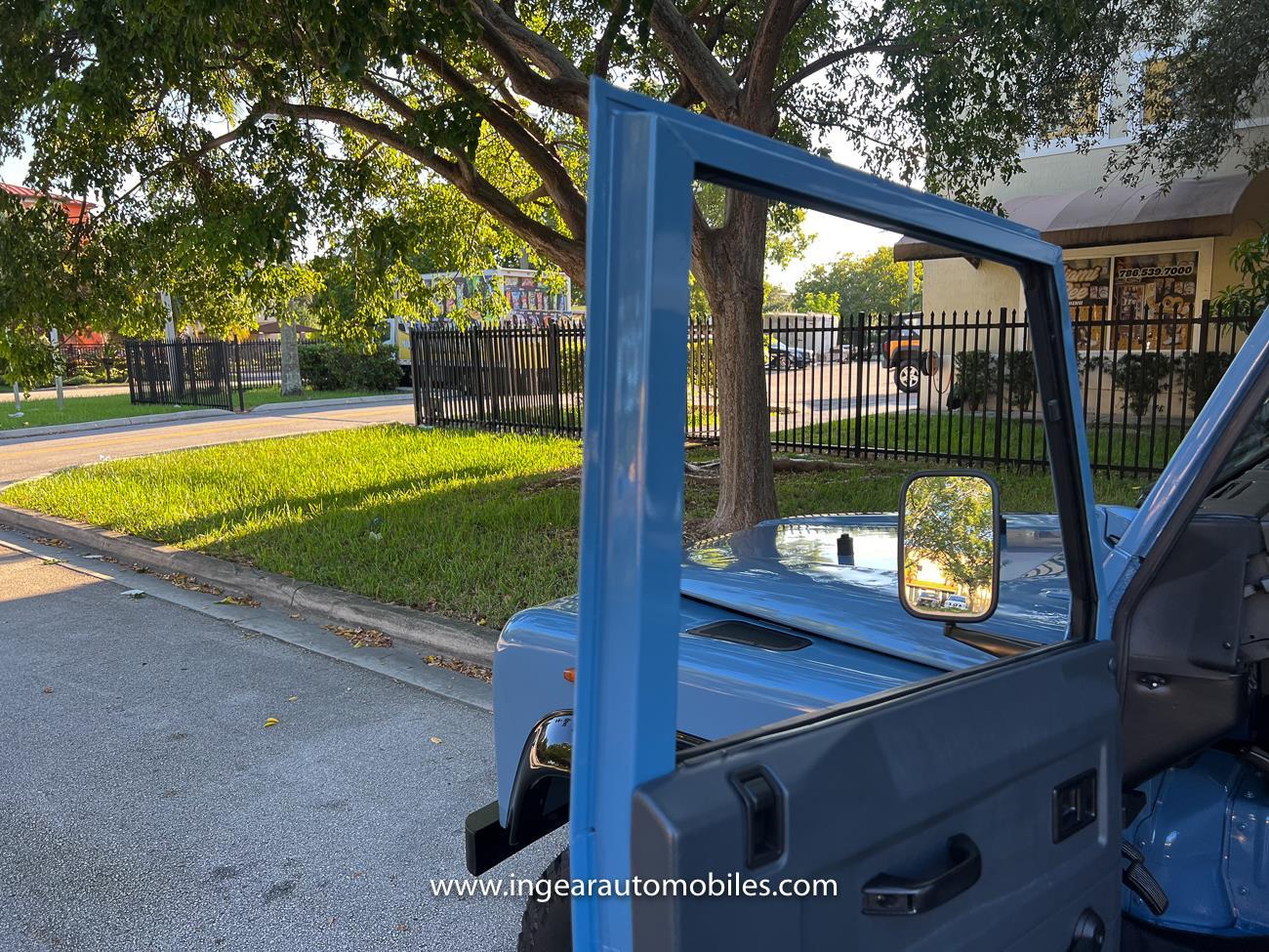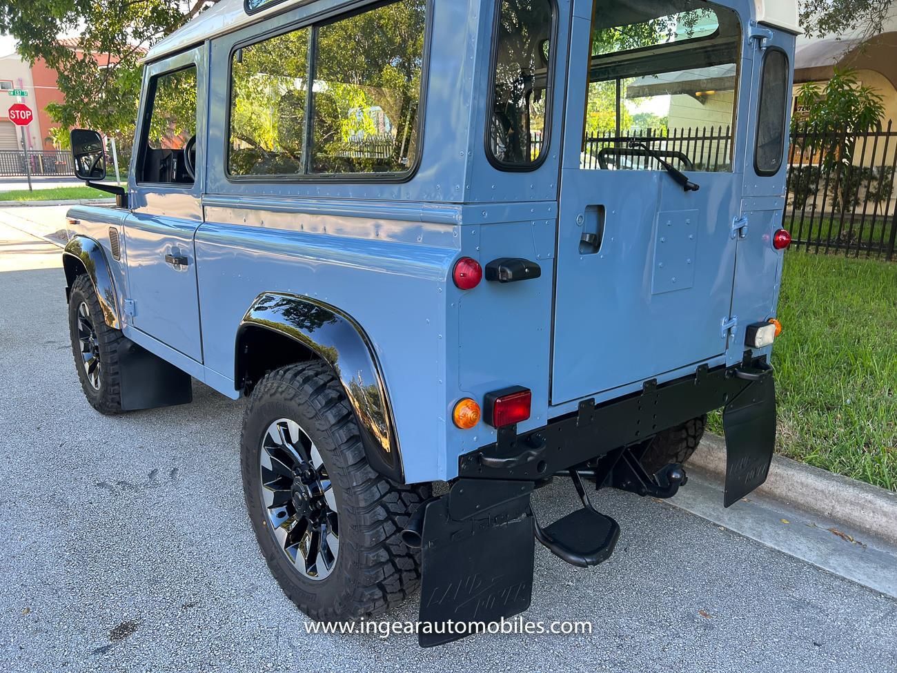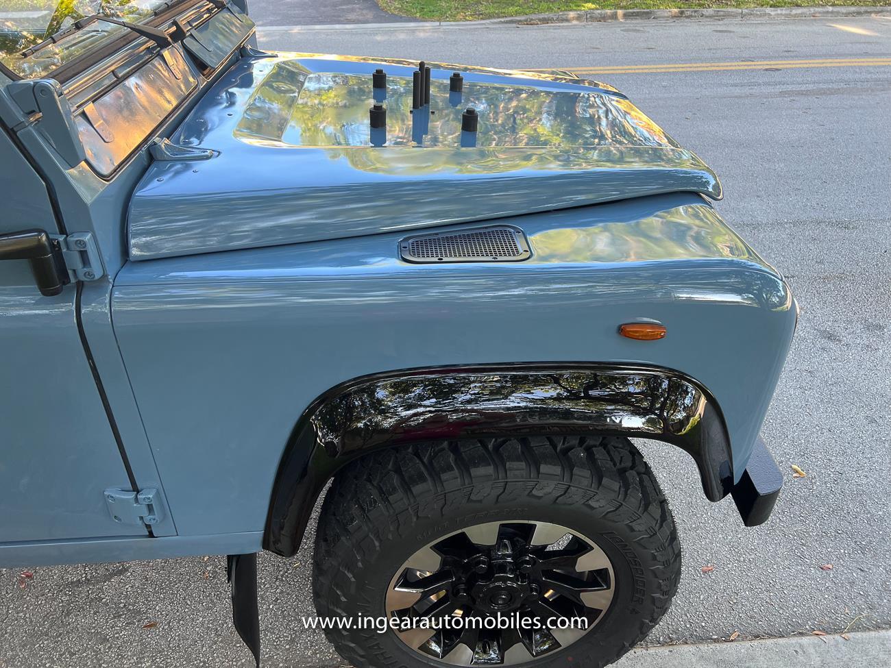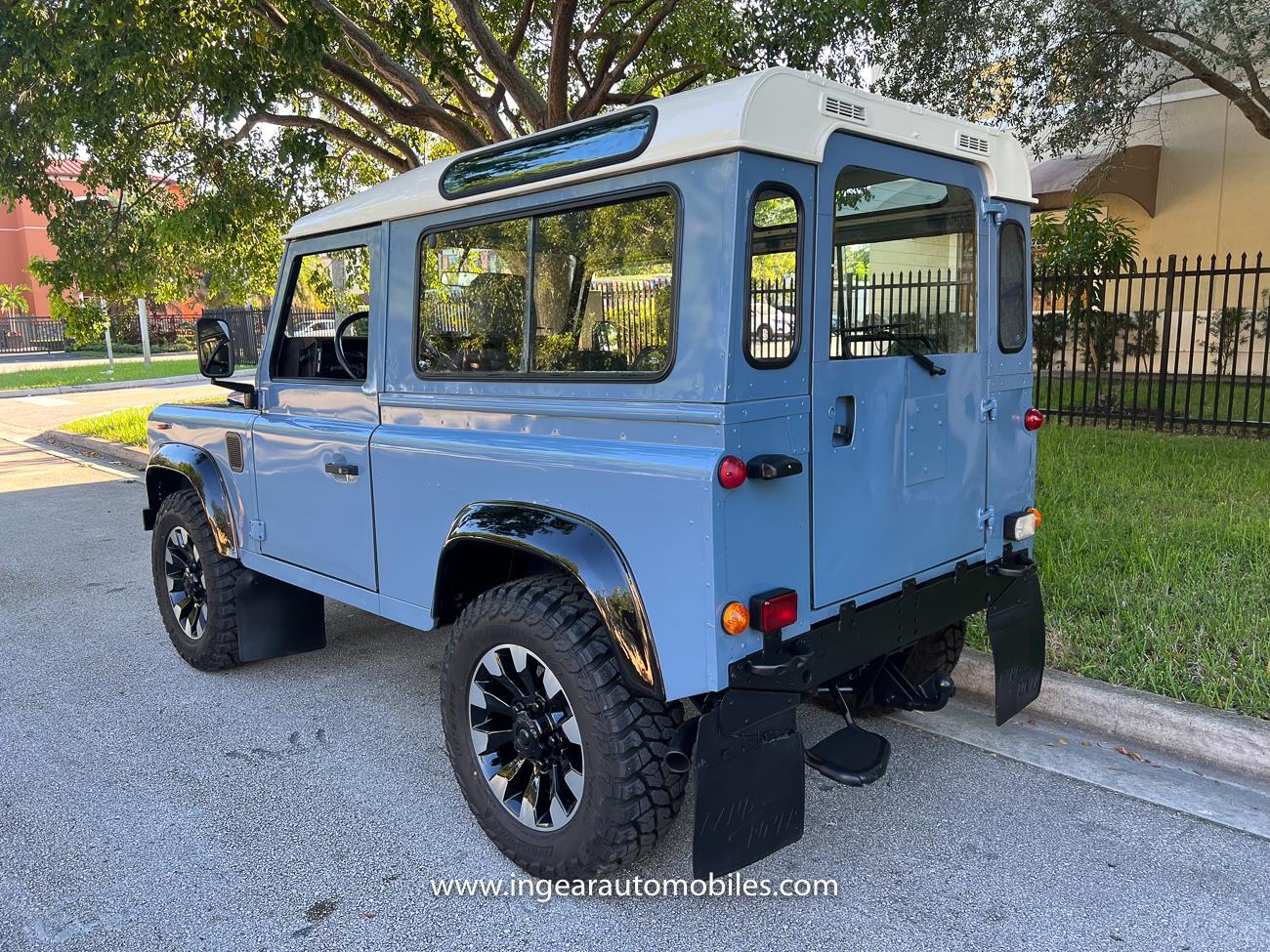 Defender has numerous options such as Power Steering, Power Brakes, Front Disc Brakes, sawtooth wheels, Factory Left Hand Drive, new wheels & tires, buckets seats, fender flares, rear side opening windows, carpet matts, mud guards, rear step, blackout HID headlights, and more…The Interior is nice and contrast well to the exterior safri blue paint, newer upholstery has been fitted, and tastefully done. Factory steering wheel. Has it’s normal wear and tear like any vehicle, but very solid Land Rover, and as you can see it received a restoration by the previous owner. Make sure to see my full album of pictures.