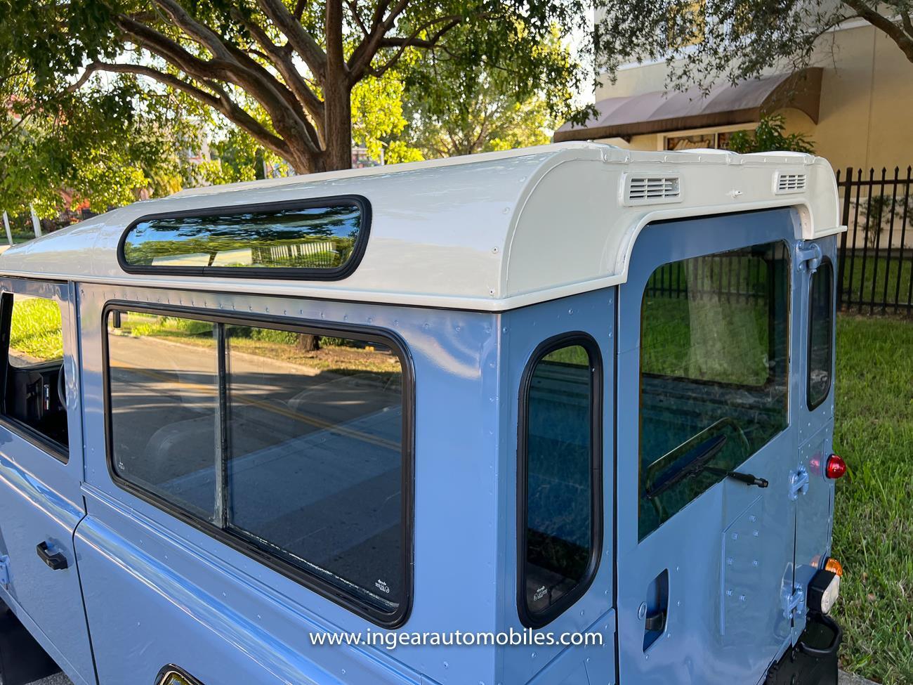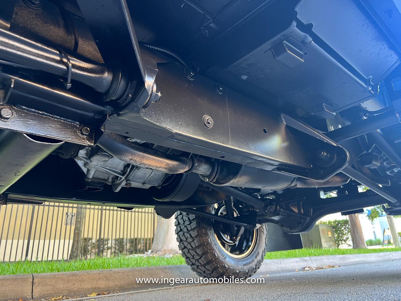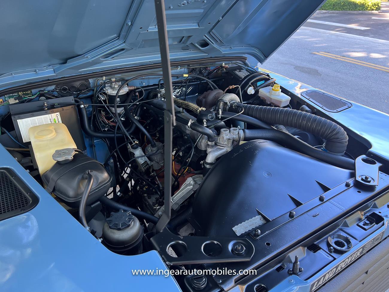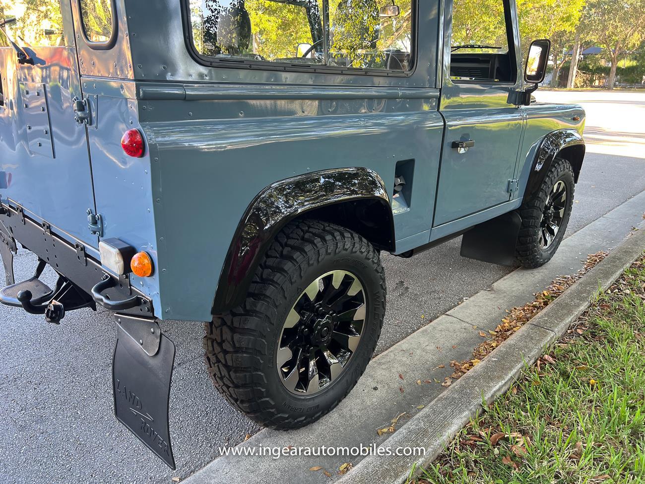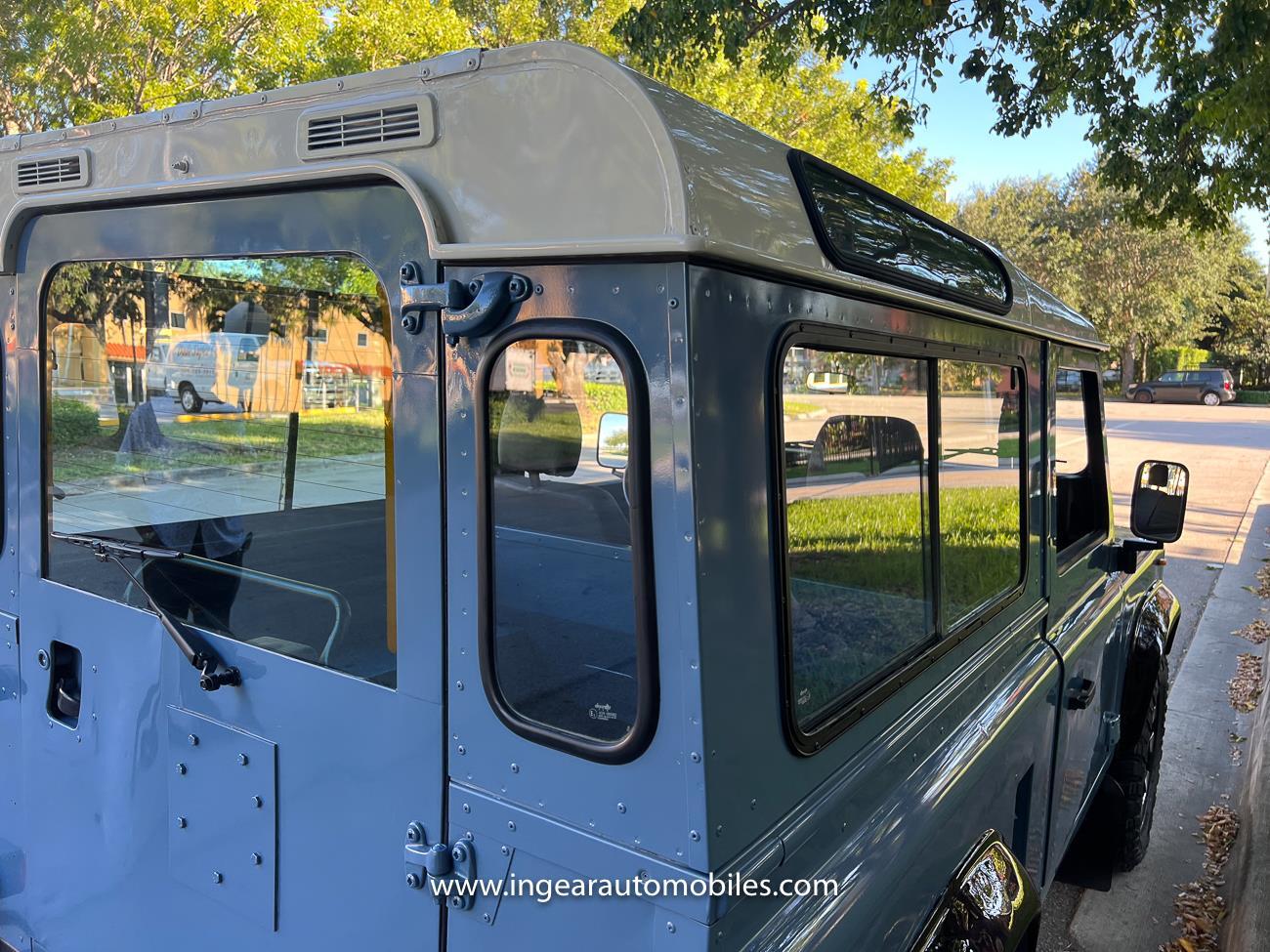 Defender has numerous options such as Power Steering, Power Brakes, Front Disc Brakes, sawtooth wheels, Factory Left Hand Drive, new wheels & tires, buckets seats, fender flares, rear side opening windows, carpet matts, mud guards, rear step, blackout HID headlights, and more…The Interior is nice and contrast well to the exterior safri blue paint, newer upholstery has been fitted, and tastefully done. Factory steering wheel. Has it’s normal wear and tear like any vehicle, but very solid Land Rover, and as you can see it received a restoration by the previous owner. Make sure to see my full album of pictures.
