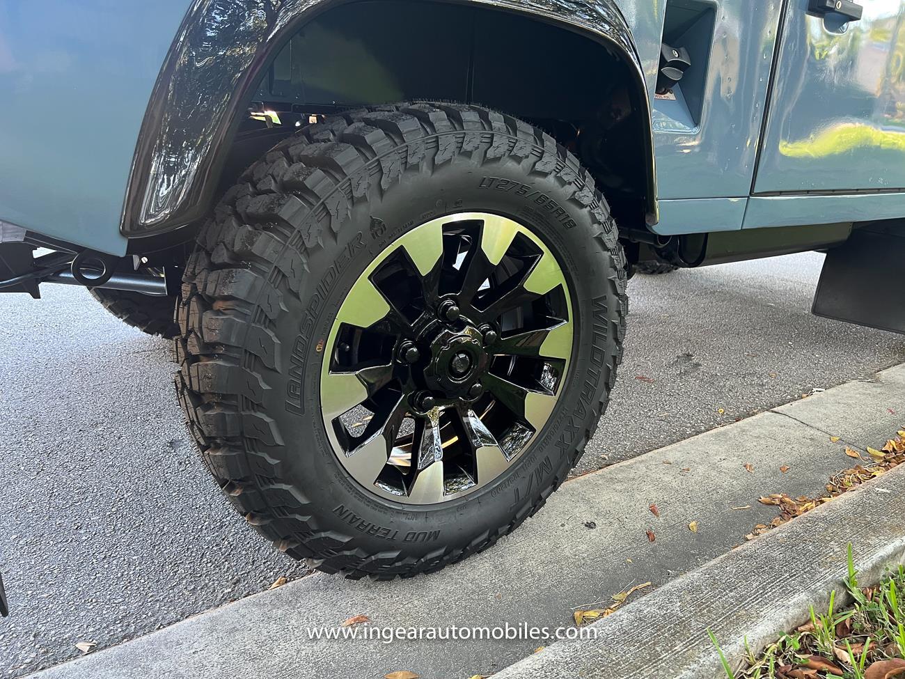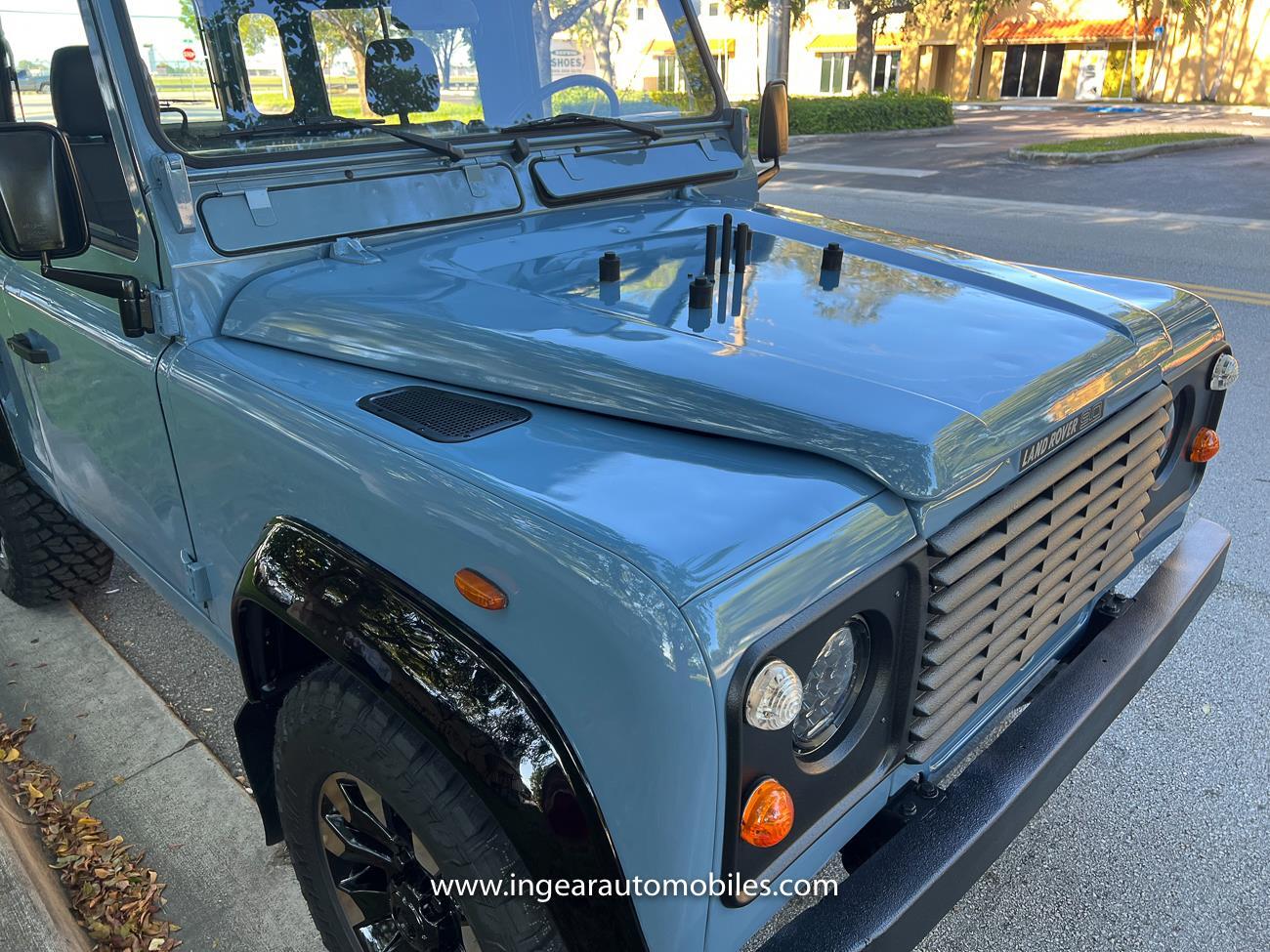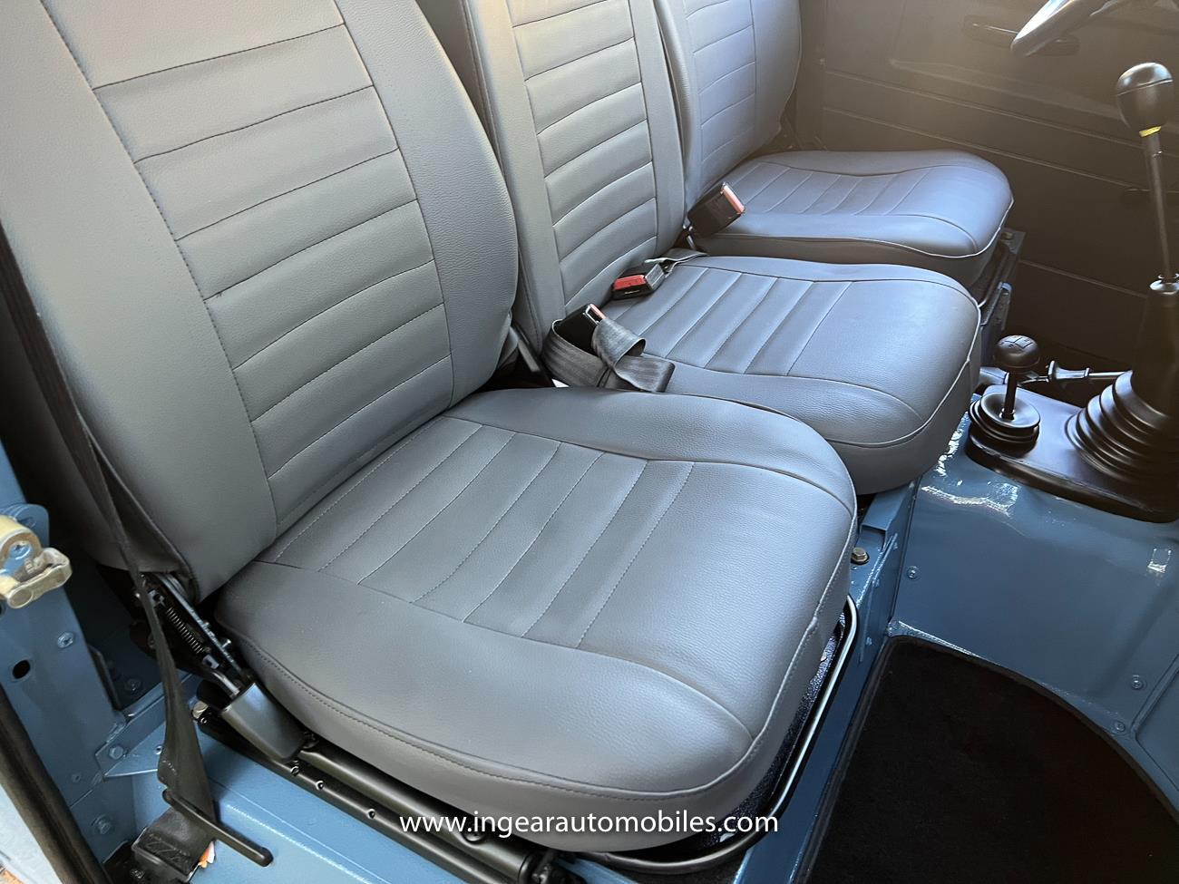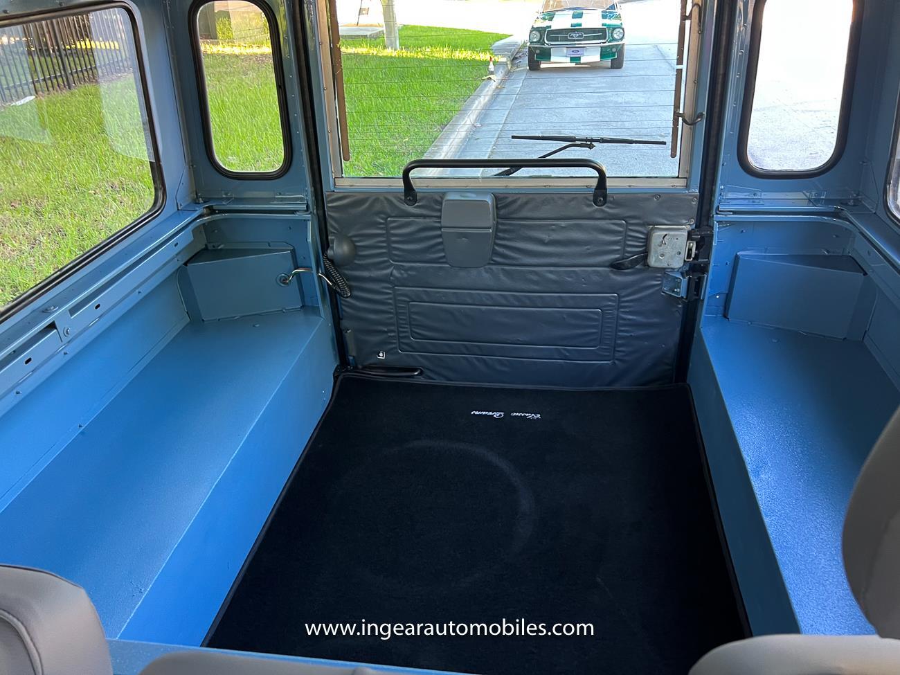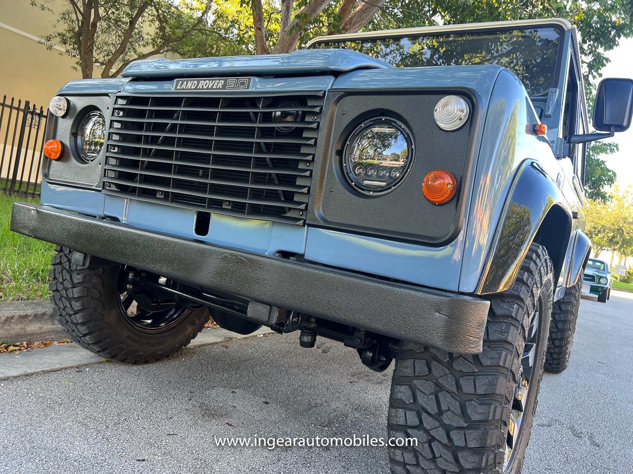 Defender has numerous options such as Power Steering, Power Brakes, Front Disc Brakes, sawtooth wheels, Factory Left Hand Drive, new wheels & tires, buckets seats, fender flares, rear side opening windows, carpet matts, mud guards, rear step, blackout HID headlights, and more…The Interior is nice and contrast well to the exterior safri blue paint, newer upholstery has been fitted, and tastefully done. Factory steering wheel. Has it’s normal wear and tear like any vehicle, but very solid Land Rover, and as you can see it received a restoration by the previous owner. Make sure to see my full album of pictures.