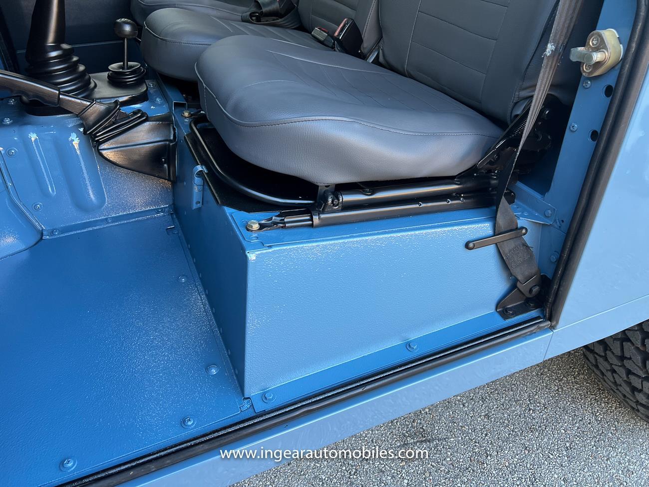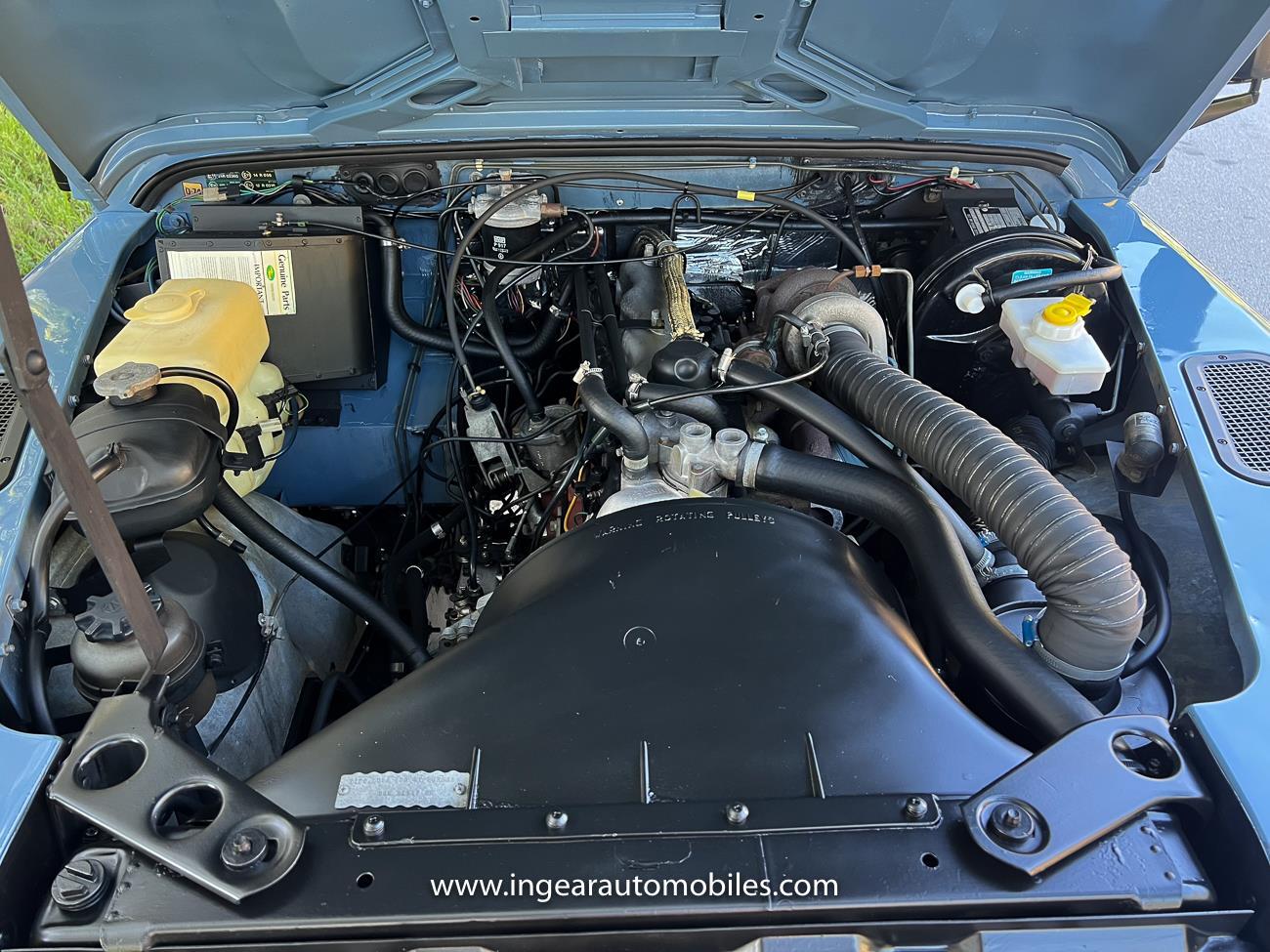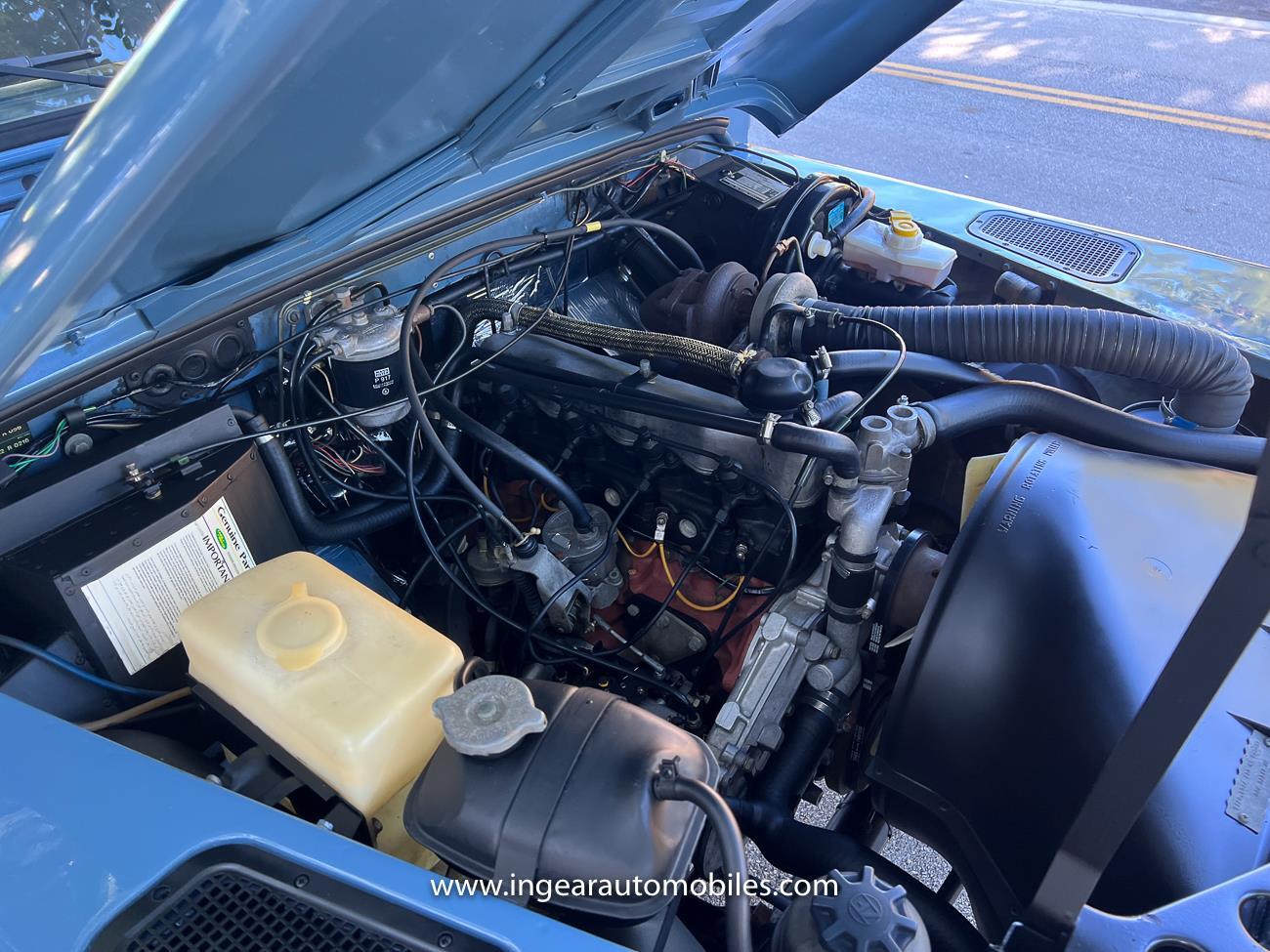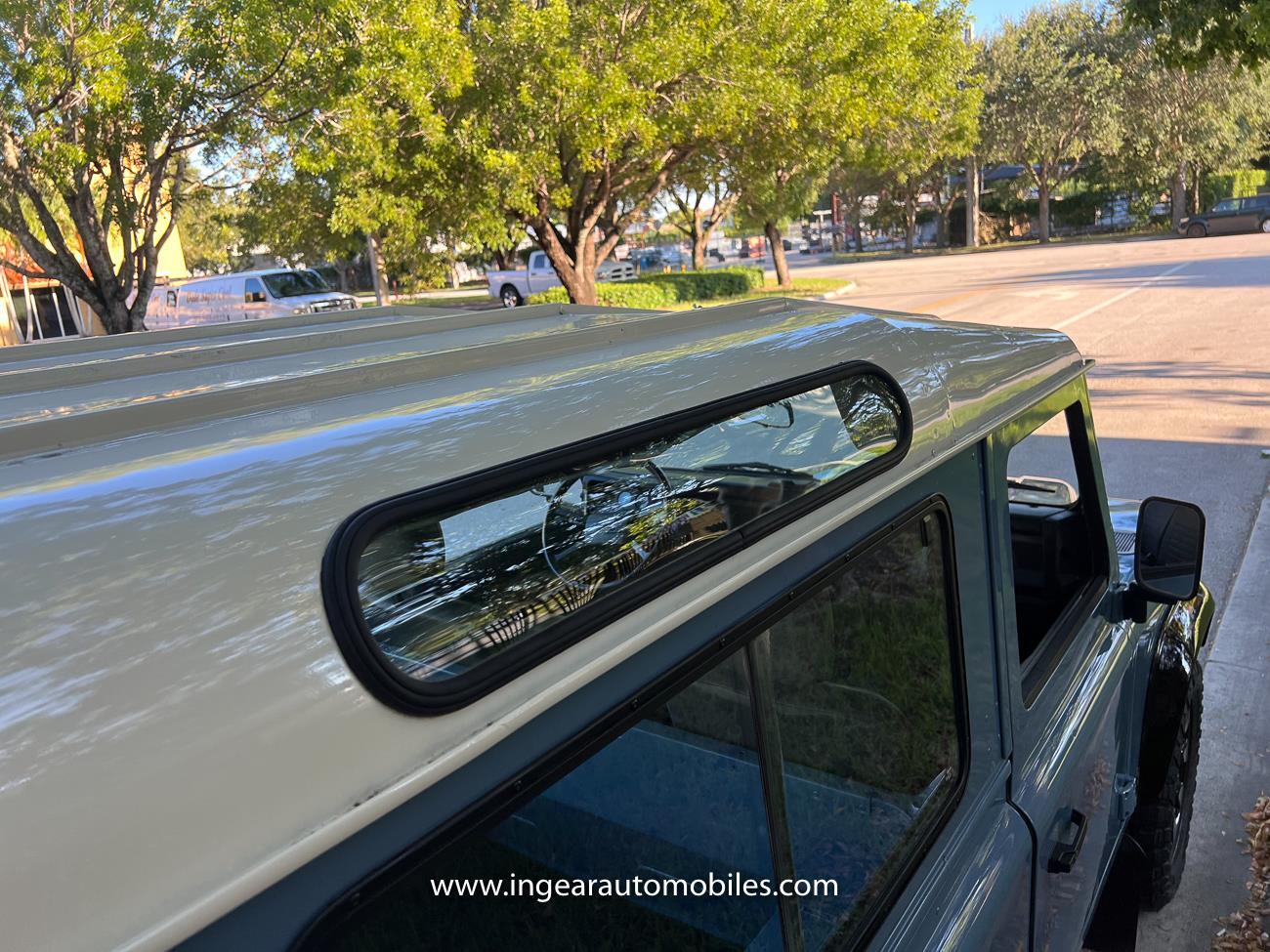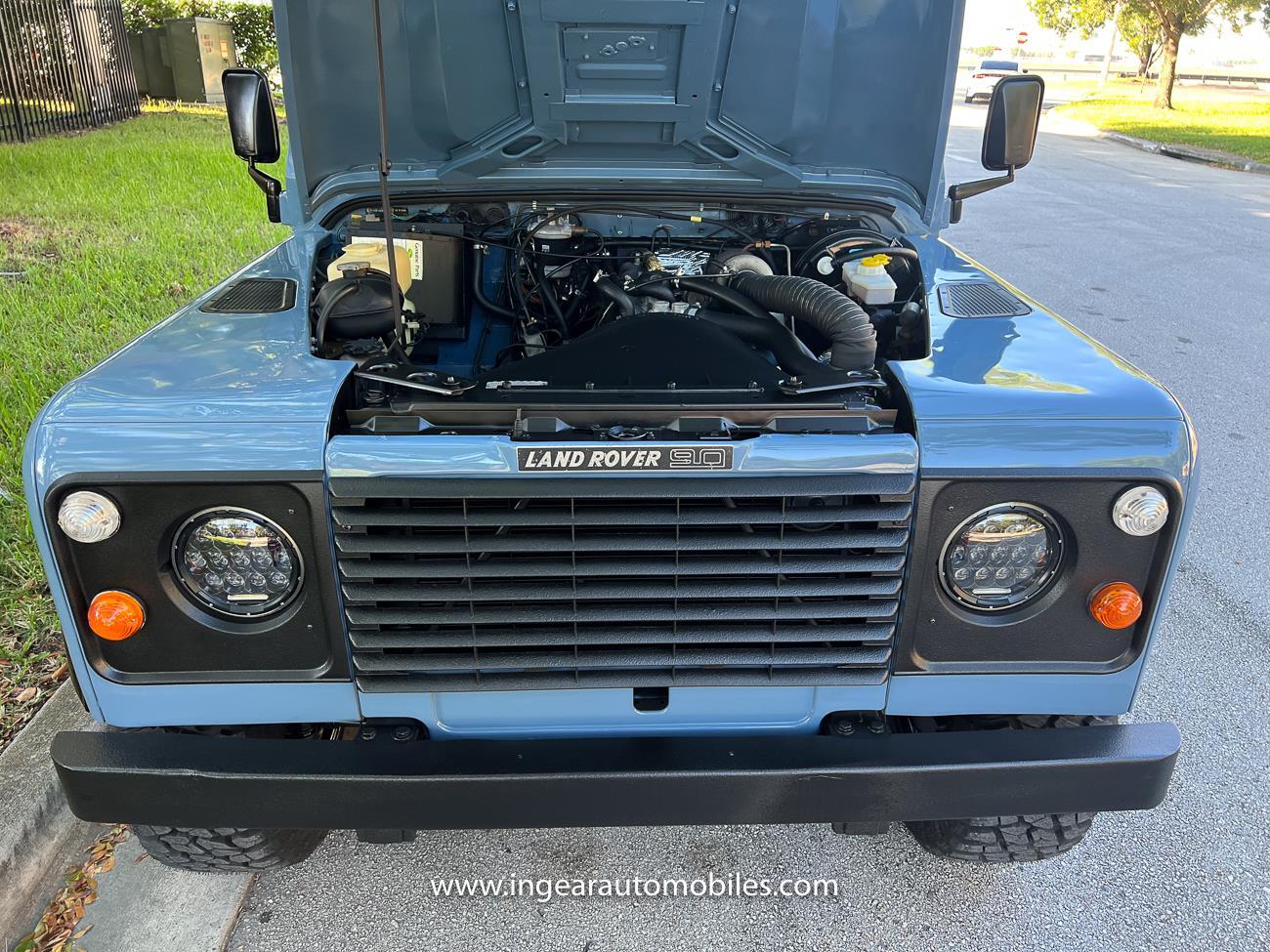 Defender has numerous options such as Power Steering, Power Brakes, Front Disc Brakes, sawtooth wheels, Factory Left Hand Drive, new wheels & tires, buckets seats, fender flares, rear side opening windows, carpet matts, mud guards, rear step, blackout HID headlights, and more…The Interior is nice and contrast well to the exterior safri blue paint, newer upholstery has been fitted, and tastefully done. Factory steering wheel. Has it’s normal wear and tear like any vehicle, but very solid Land Rover, and as you can see it received a restoration by the previous owner. Make sure to see my full album of pictures.