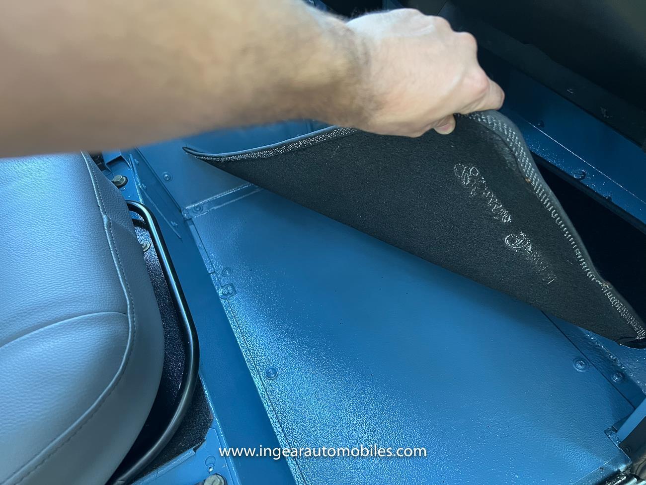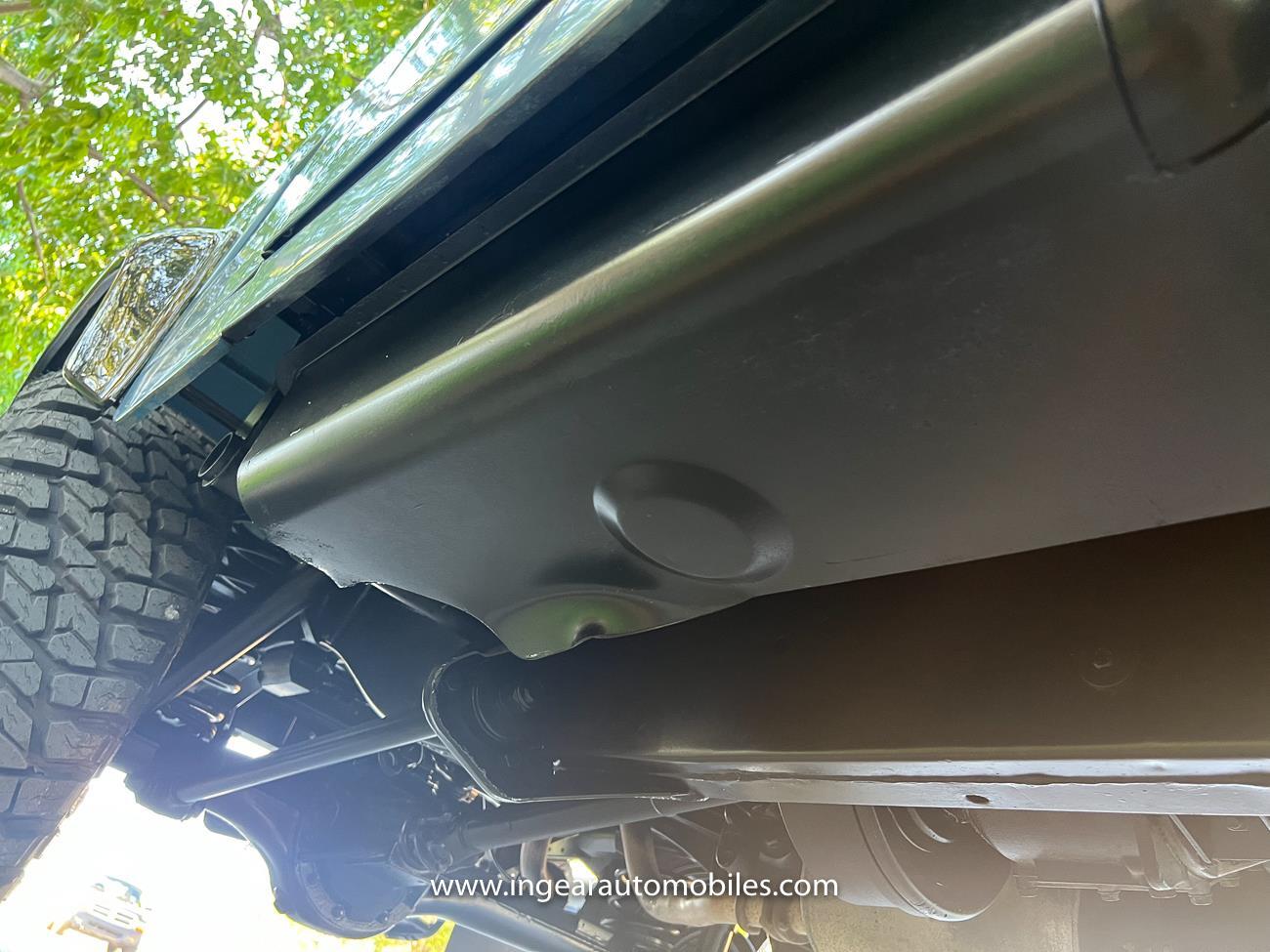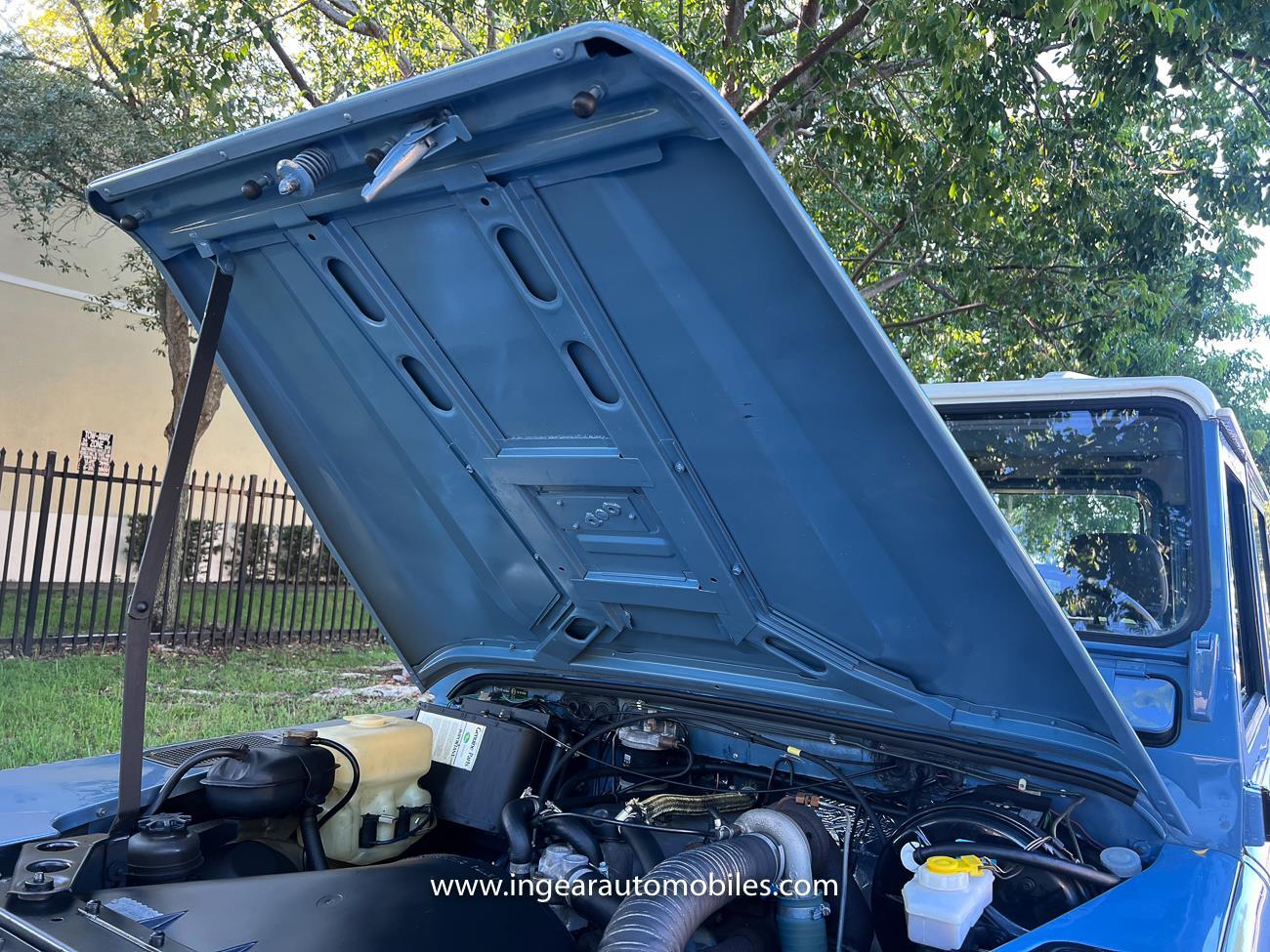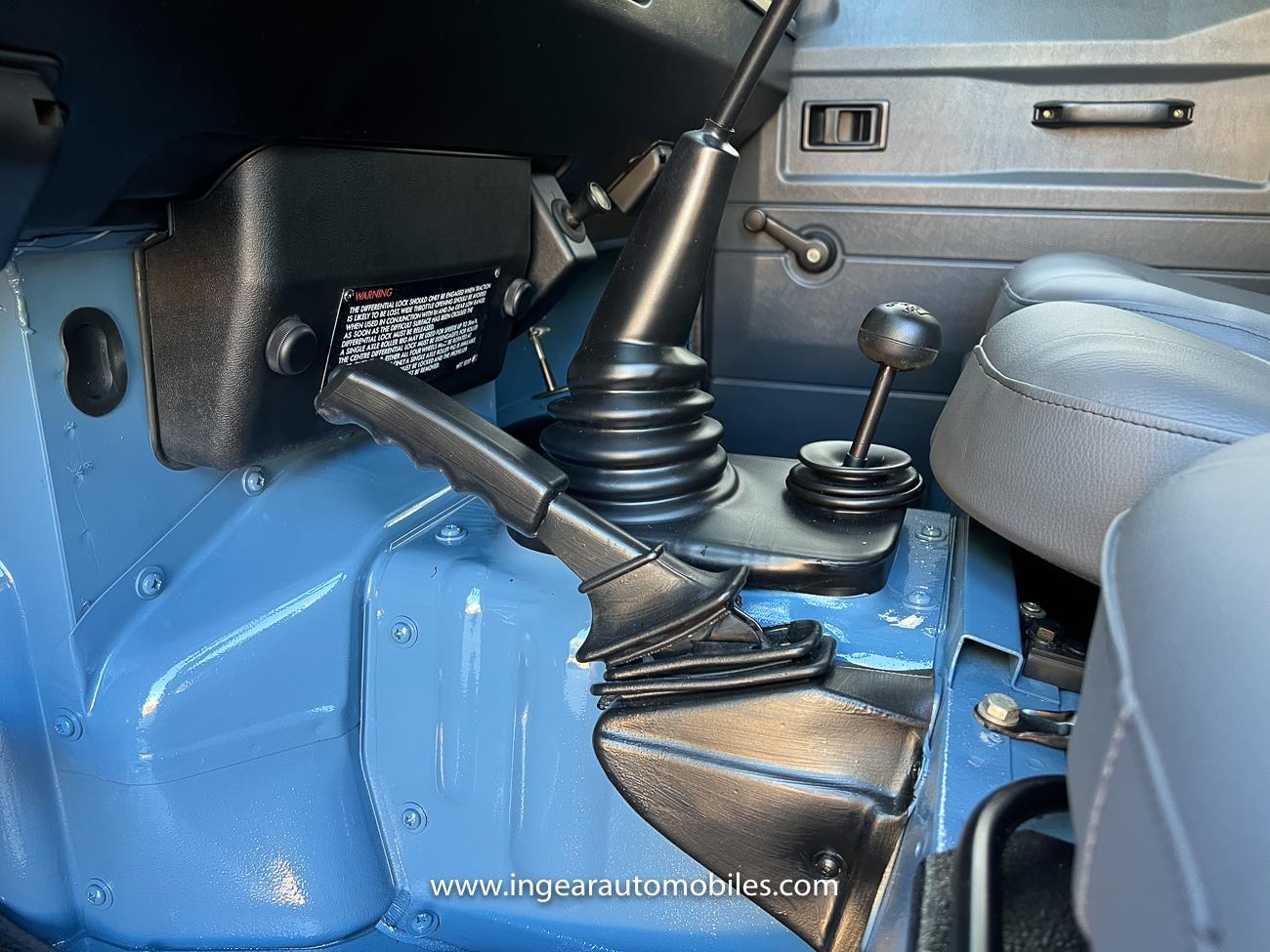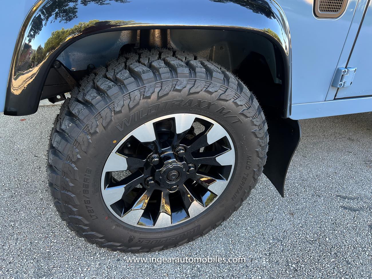 Defender has numerous options such as Power Steering, Power Brakes, Front Disc Brakes, sawtooth wheels, Factory Left Hand Drive, new wheels & tires, buckets seats, fender flares, rear side opening windows, carpet matts, mud guards, rear step, blackout HID headlights, and more…The Interior is nice and contrast well to the exterior safri blue paint, newer upholstery has been fitted, and tastefully done. Factory steering wheel. Has it’s normal wear and tear like any vehicle, but very solid Land Rover, and as you can see it received a restoration by the previous owner. Make sure to see my full album of pictures.