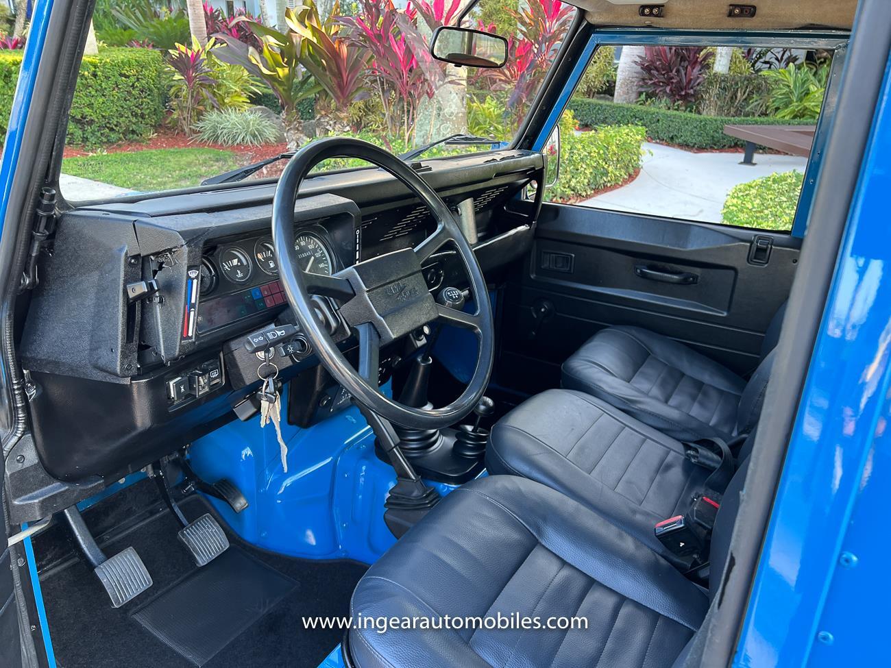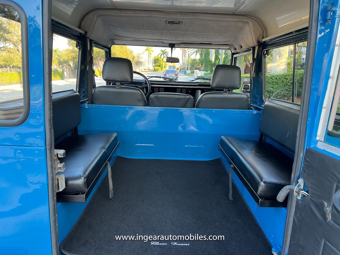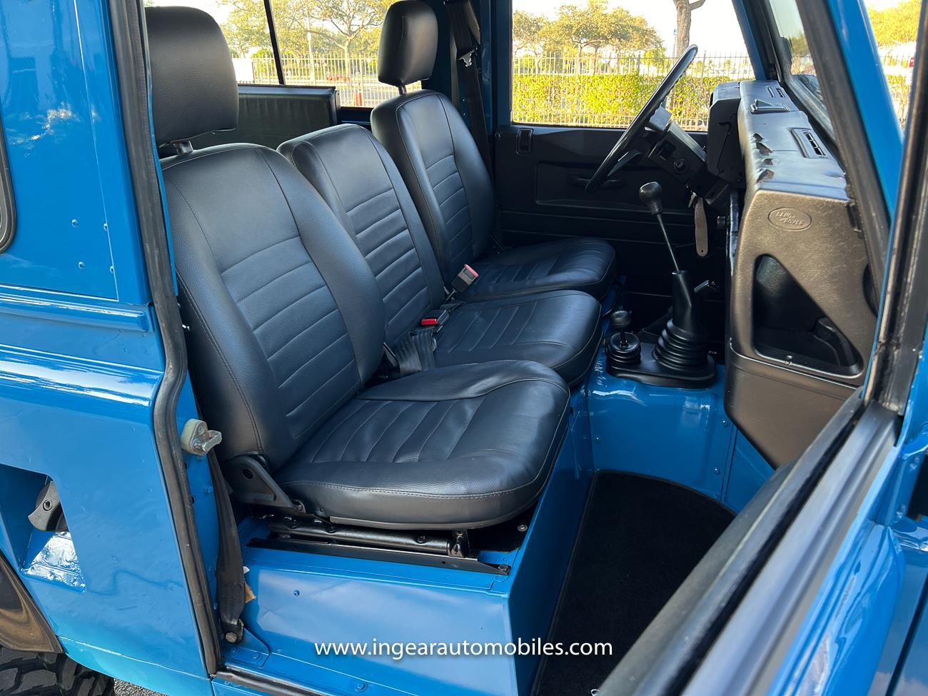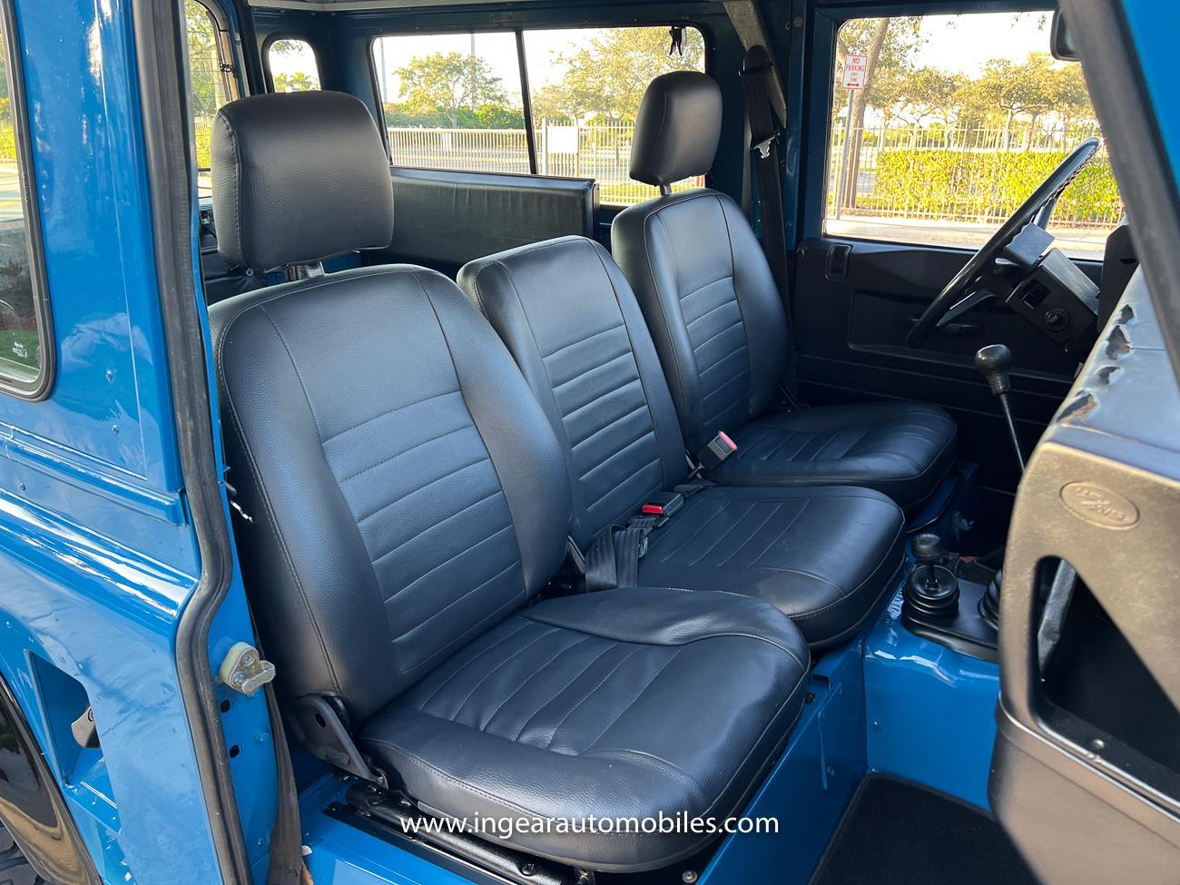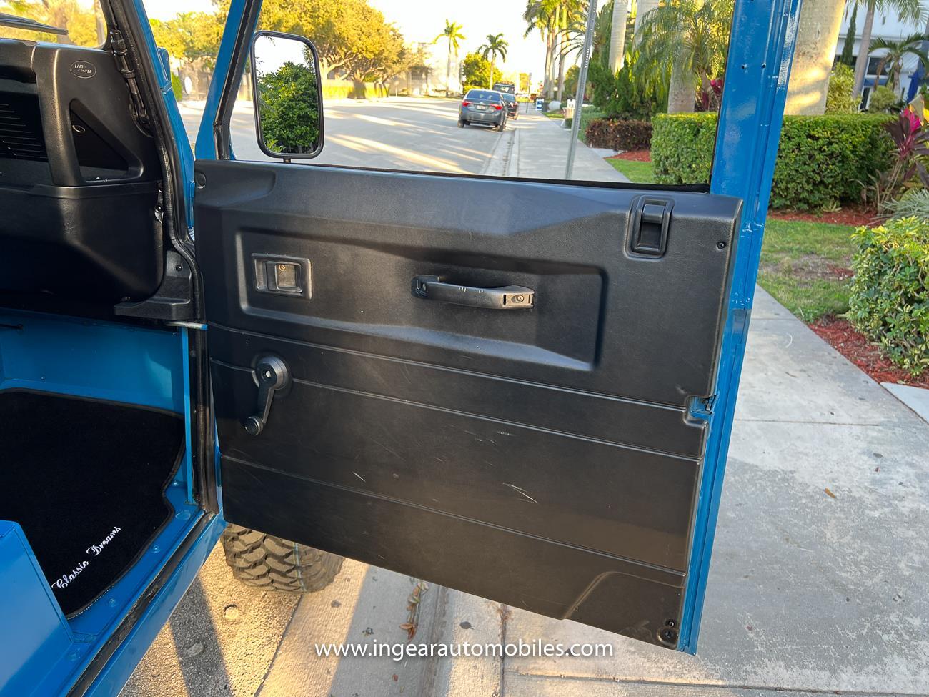 Up for sale is a 1987 Land Rover Defender 90 4x4. Black steel wheels! Finished in blue with black roof. Rear fold down seats! You can take it to the trails & for weekend cruises. The Defender is powered by it’s 2.5L Turbo Diesel engine matted to a 5 speed transmission. Rebuilt turbo. ORIGINAL Left hand drive not a conversion. Defender has numerous options such as Power Steering, Power Brakes, Front Disc Brakes, steel wheels, Factory Left Hand Drive, new wheels & tires, buckets seats, fender flares, rear side opening windows, carpet matts, Diamond plate Fenders, and more…The Interior is nice and contrast well to the exterior safri blue paint, newer upholstery has been fitted, and tastefully done. Factory steering wheel. Has it’s normal wear and tear like any vehicle, but very solid Land Rover, and as you can see it received a restoration by the previous owner. Make sure to see my full album of pictures. Clean FL Title