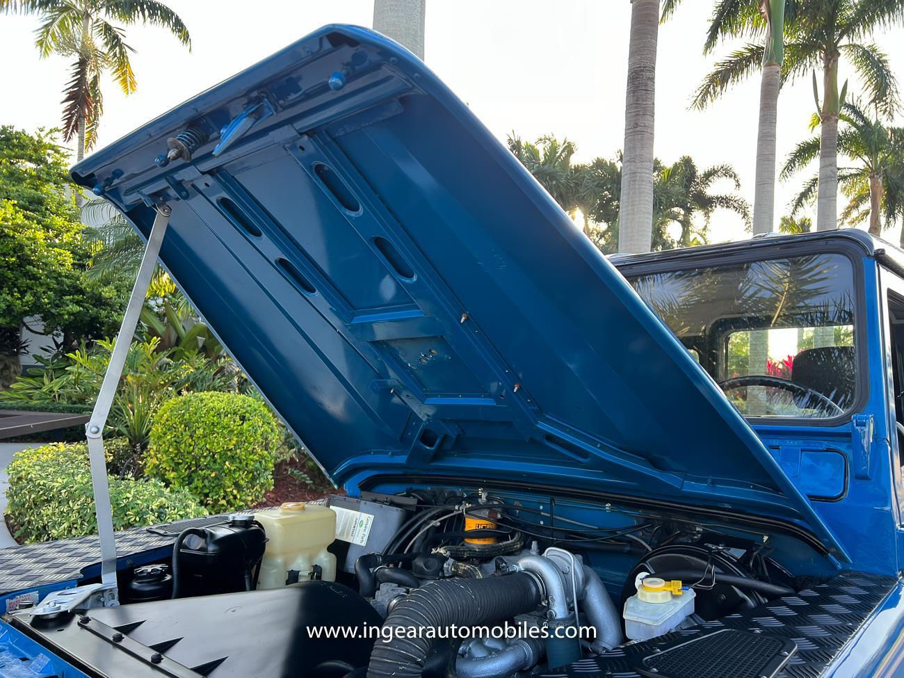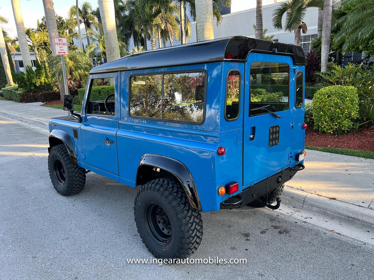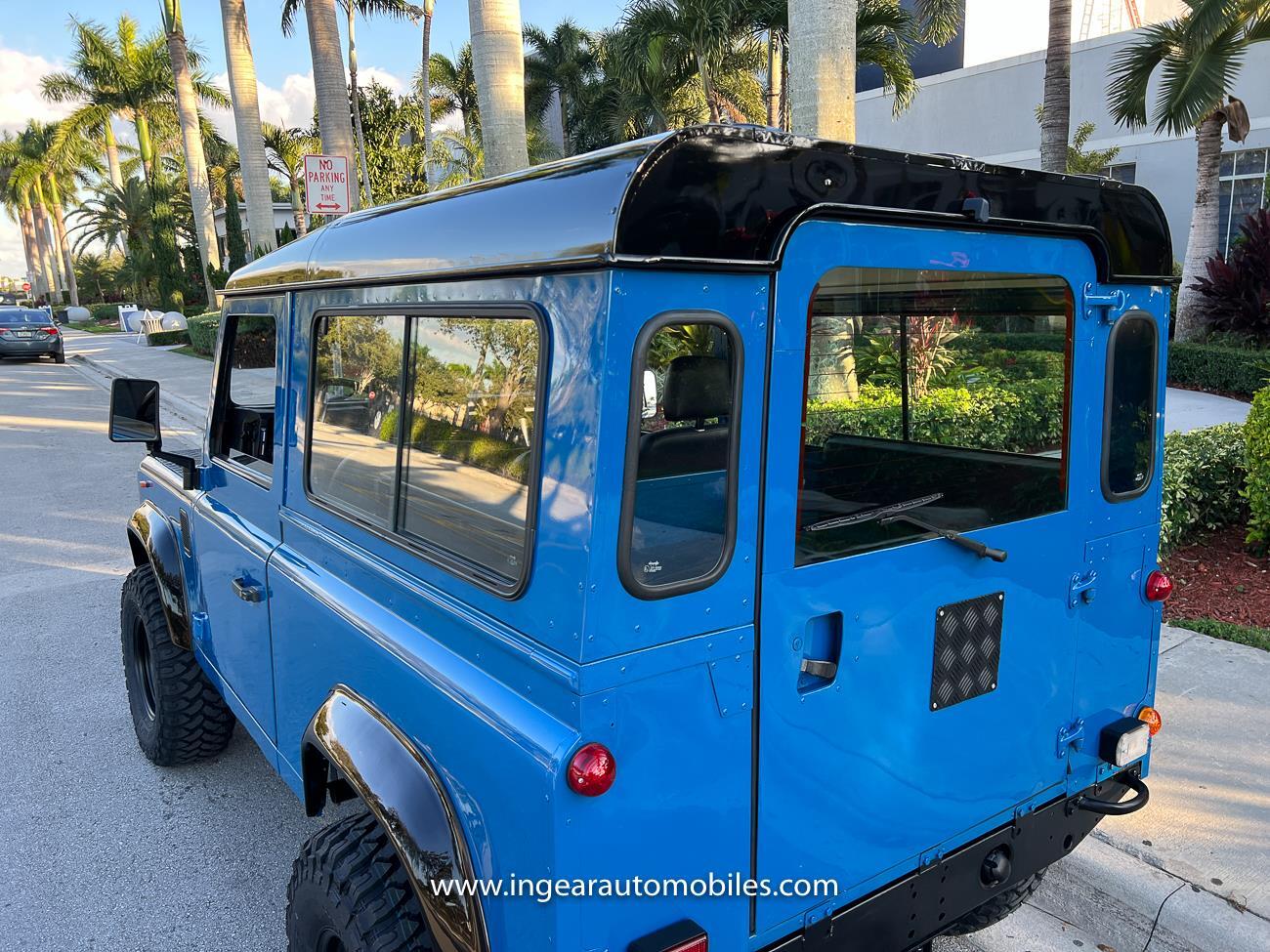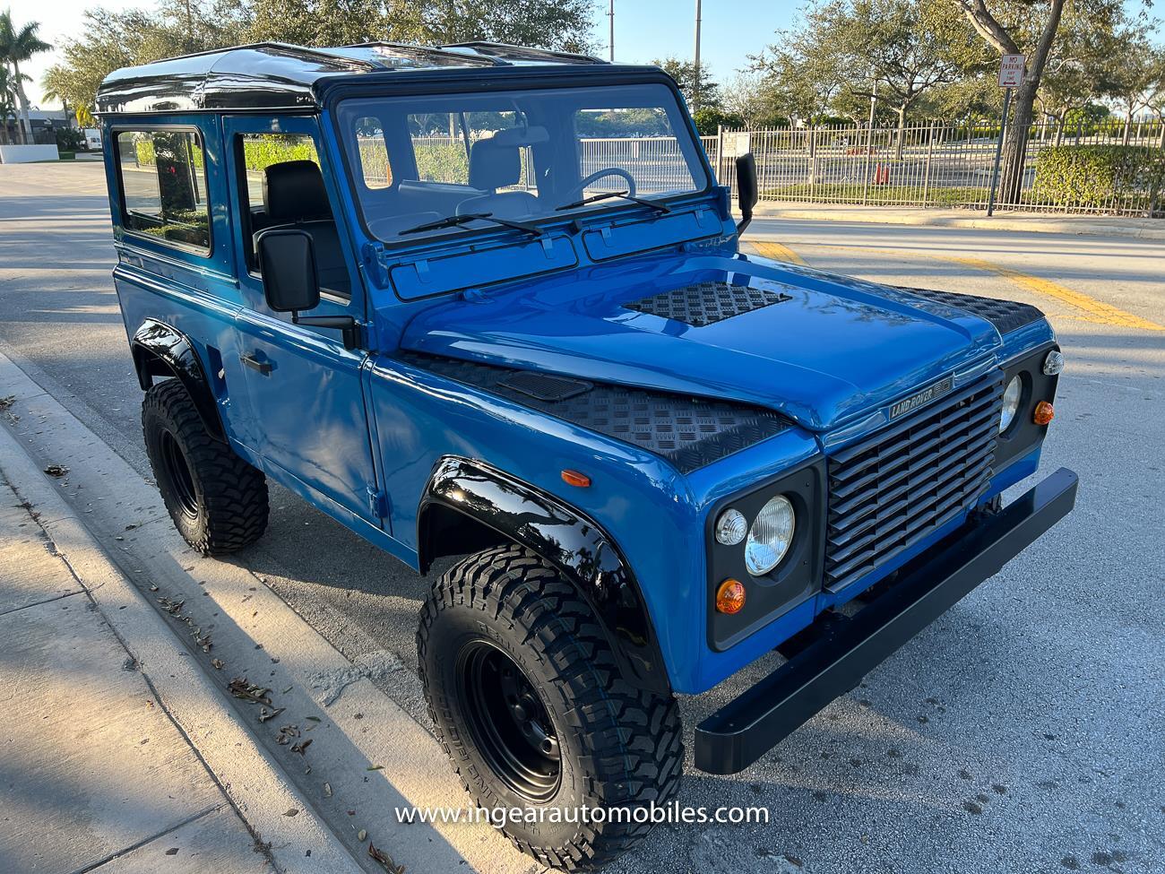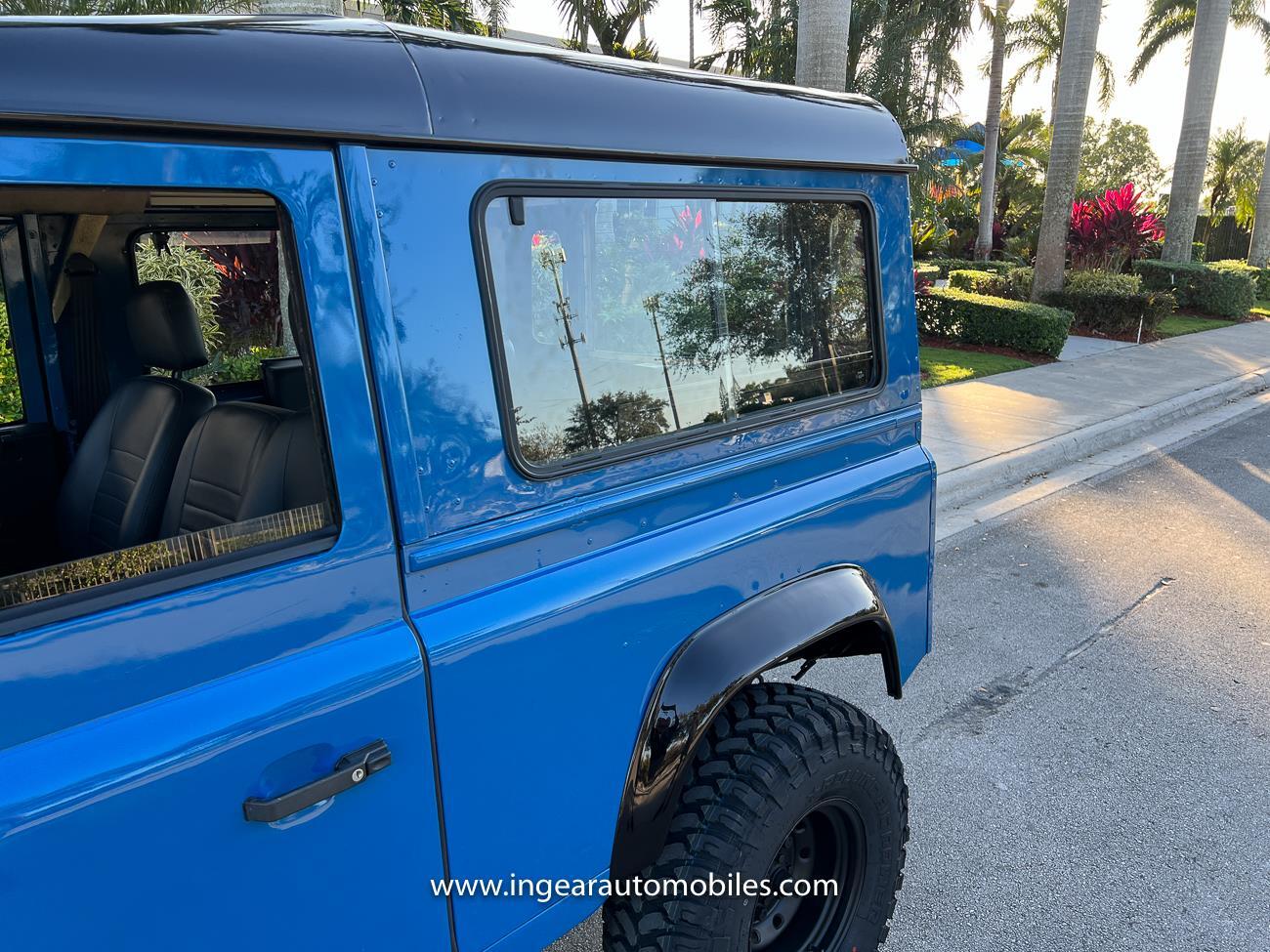 Up for sale is a 1987 Land Rover Defender 90 4x4. Black steel wheels! Finished in blue with black roof. Rear fold down seats! You can take it to the trails & for weekend cruises. The Defender is powered by it’s 2.5L Turbo Diesel engine matted to a 5 speed transmission. Rebuilt turbo. ORIGINAL Left hand drive not a conversion. Defender has numerous options such as Power Steering, Power Brakes, Front Disc Brakes, steel wheels, Factory Left Hand Drive, new wheels & tires, buckets seats, fender flares, rear side opening windows, carpet matts, Diamond plate Fenders, and more…The Interior is nice and contrast well to the exterior safri blue paint, newer upholstery has been fitted, and tastefully done. Factory steering wheel. Has it’s normal wear and tear like any vehicle, but very solid Land Rover, and as you can see it received a restoration by the previous owner. Make sure to see my full album of pictures. Clean FL Title