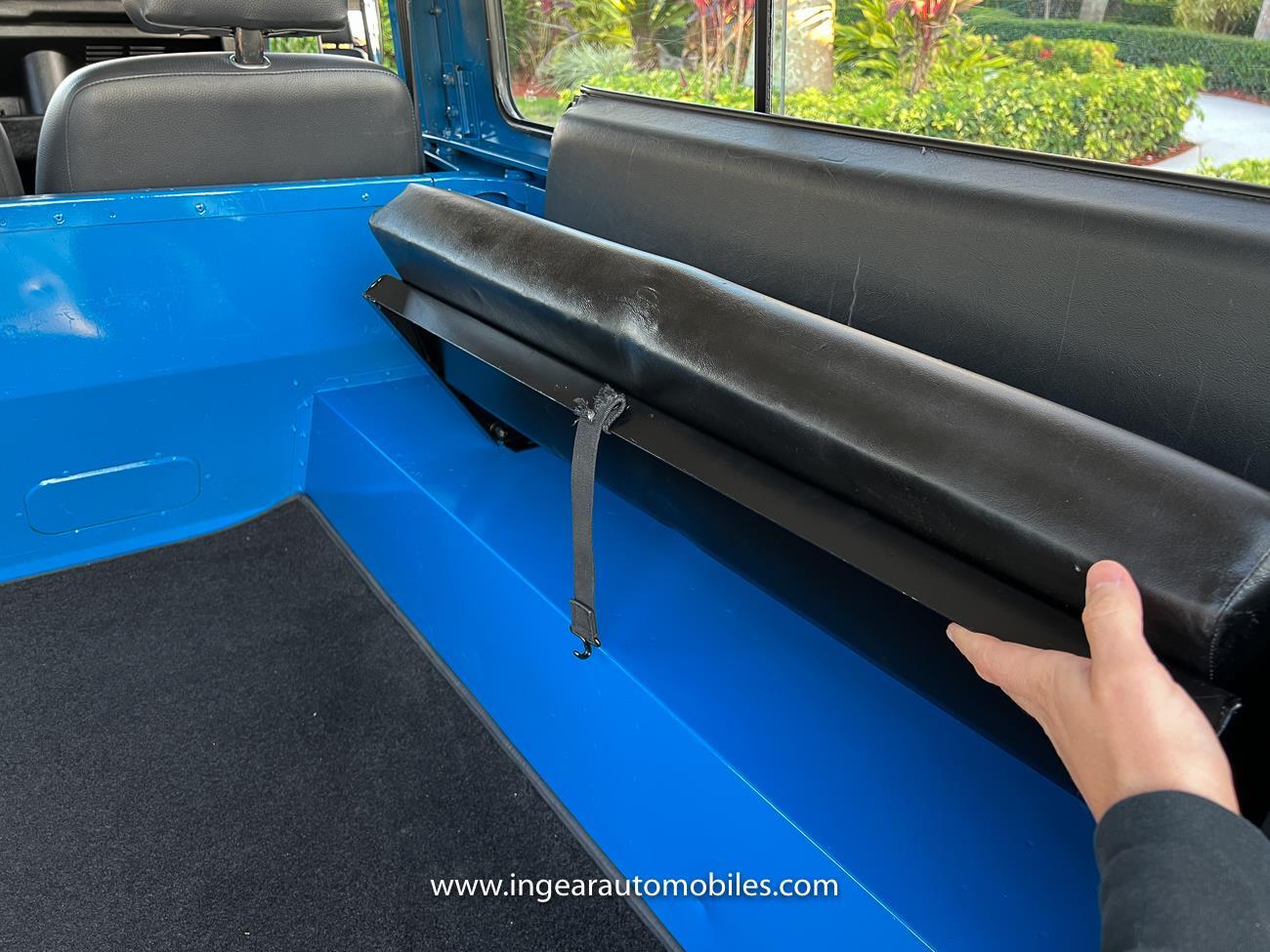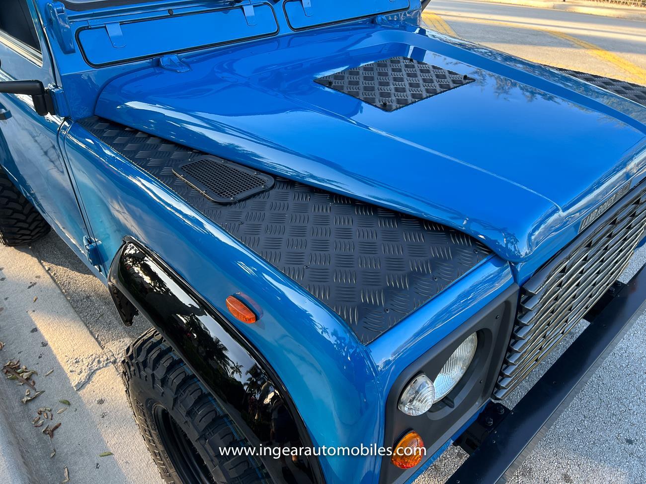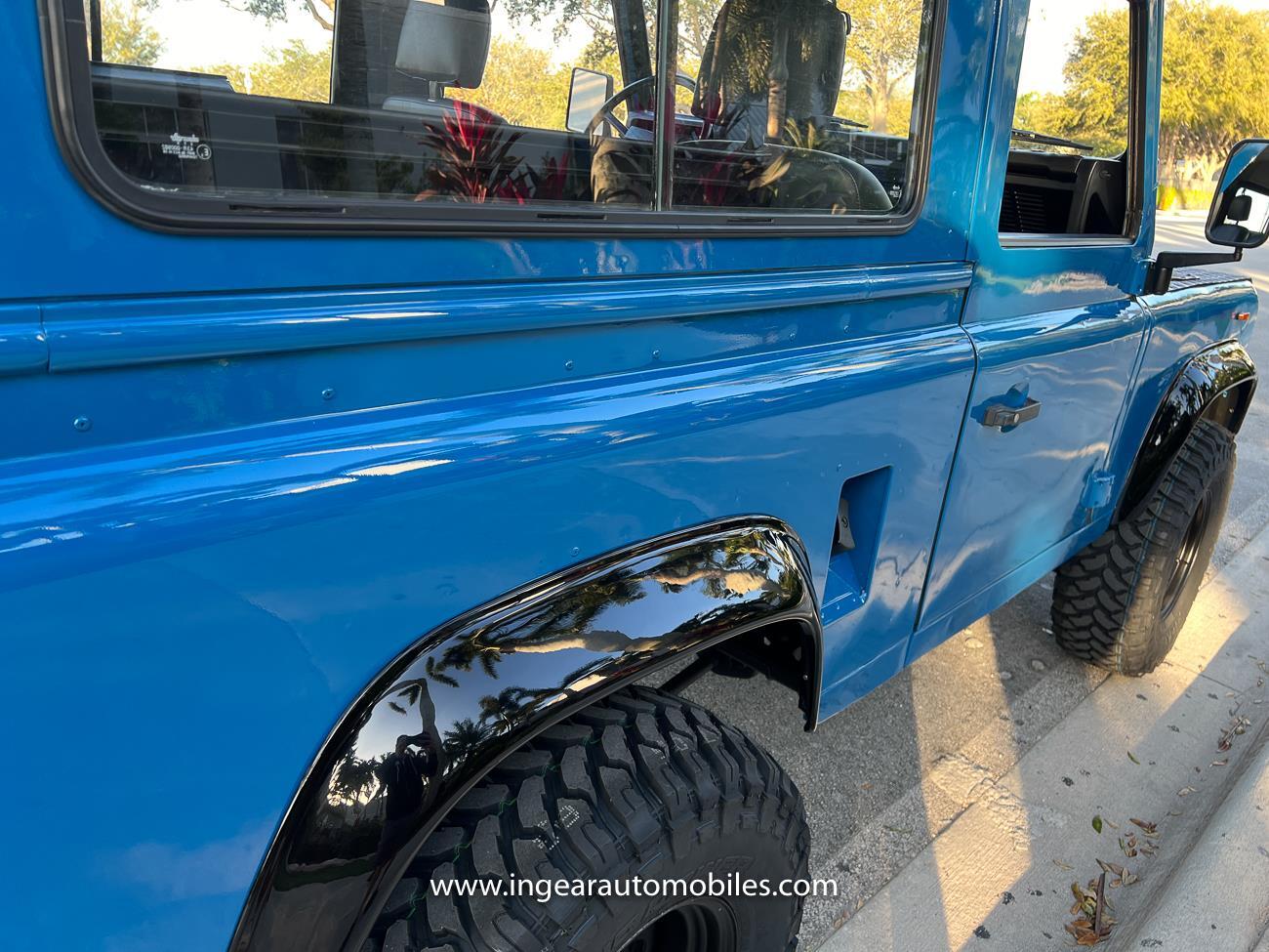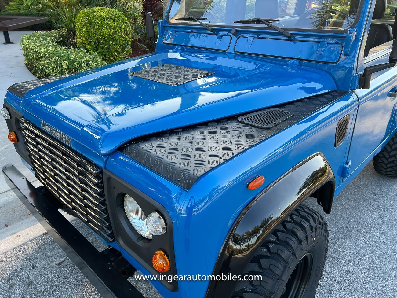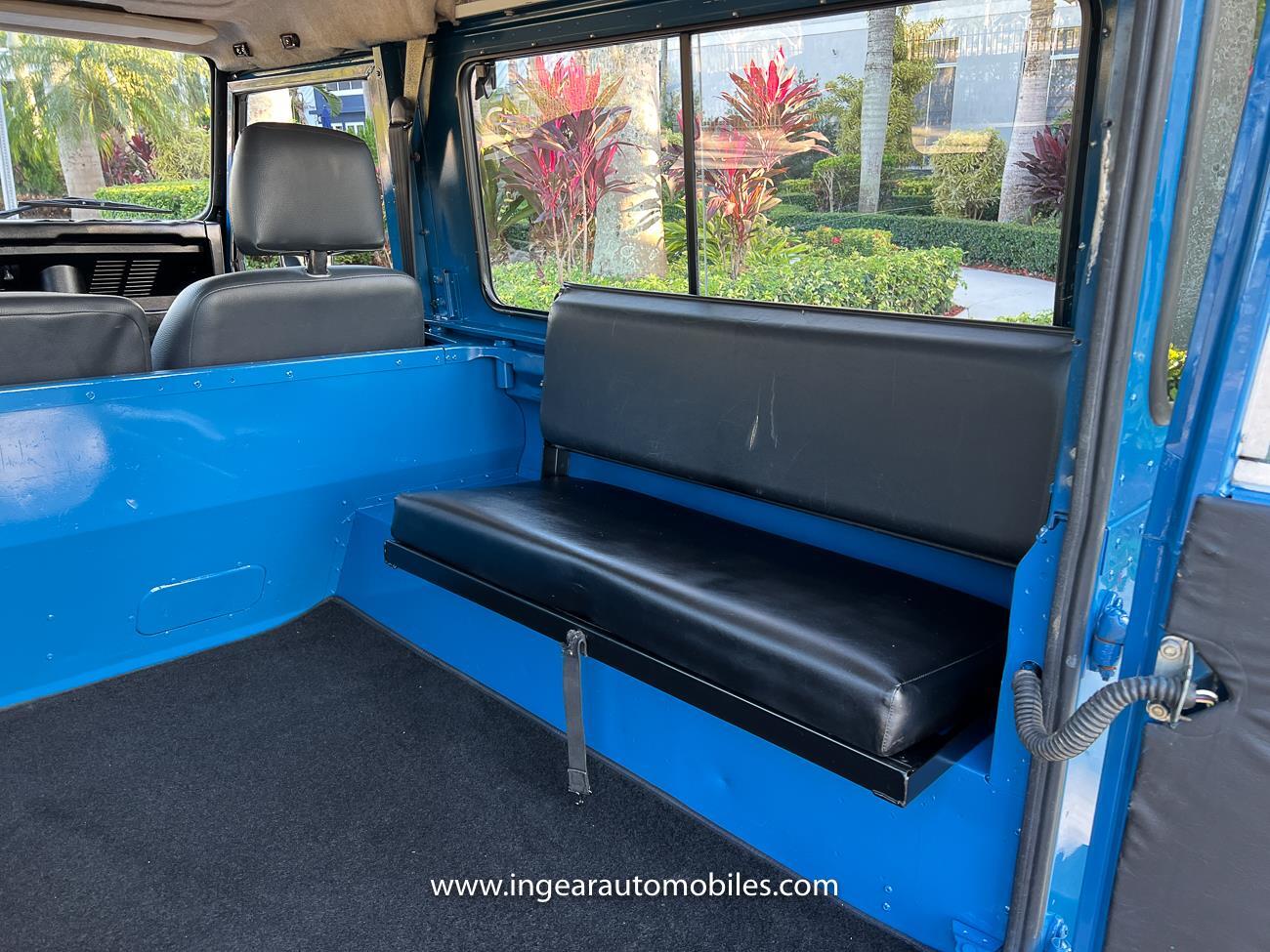 Up for sale is a 1987 Land Rover Defender 90 4x4. Black steel wheels! Finished in blue with black roof. Rear fold down seats! You can take it to the trails & for weekend cruises. The Defender is powered by it’s 2.5L Turbo Diesel engine matted to a 5 speed transmission. Rebuilt turbo. ORIGINAL Left hand drive not a conversion. Defender has numerous options such as Power Steering, Power Brakes, Front Disc Brakes, steel wheels, Factory Left Hand Drive, new wheels & tires, buckets seats, fender flares, rear side opening windows, carpet matts, Diamond plate Fenders, and more…The Interior is nice and contrast well to the exterior safri blue paint, newer upholstery has been fitted, and tastefully done. Factory steering wheel. Has it’s normal wear and tear like any vehicle, but very solid Land Rover, and as you can see it received a restoration by the previous owner. Make sure to see my full album of pictures. Clean FL Title