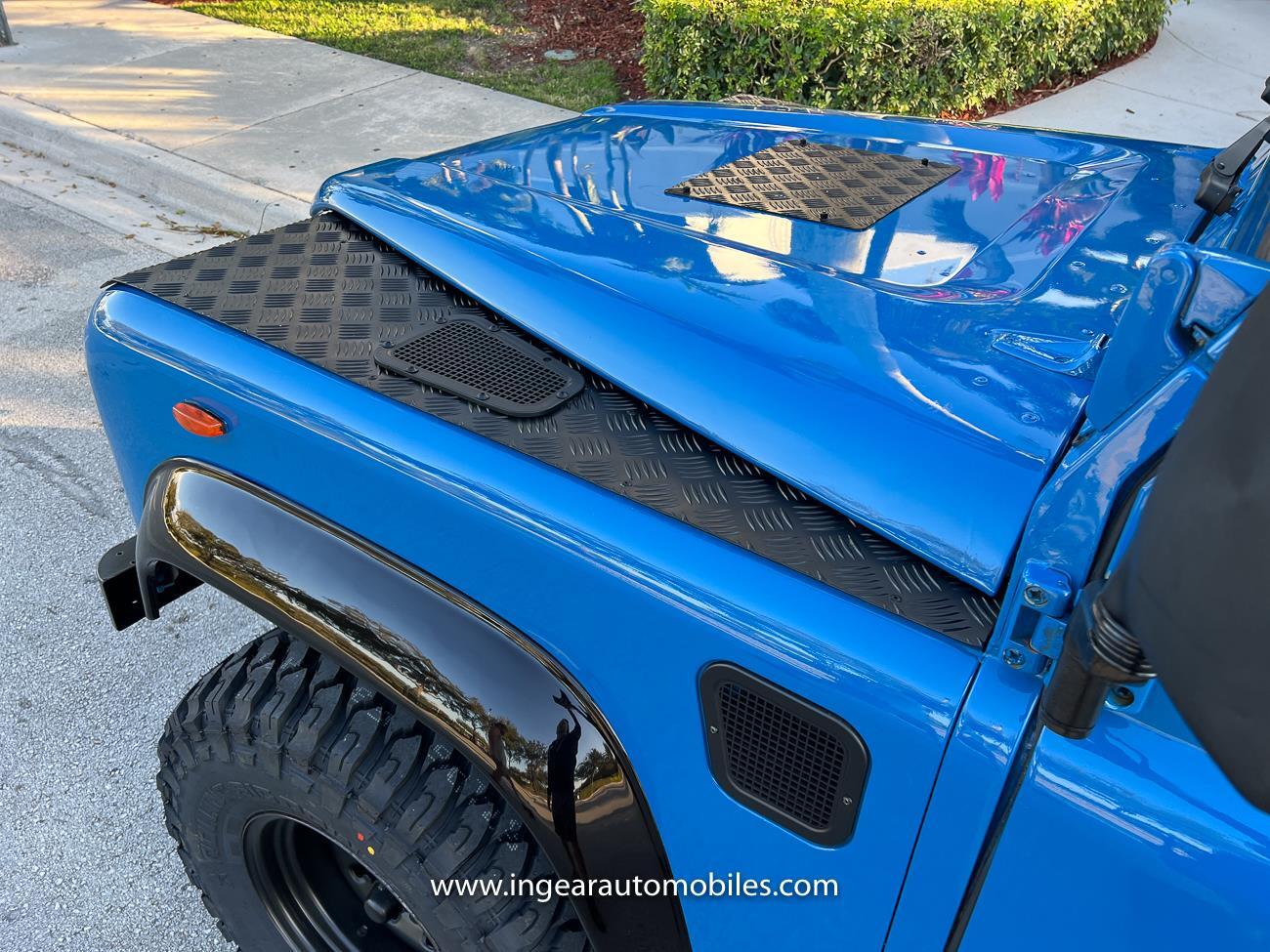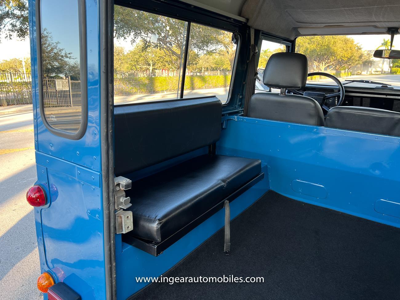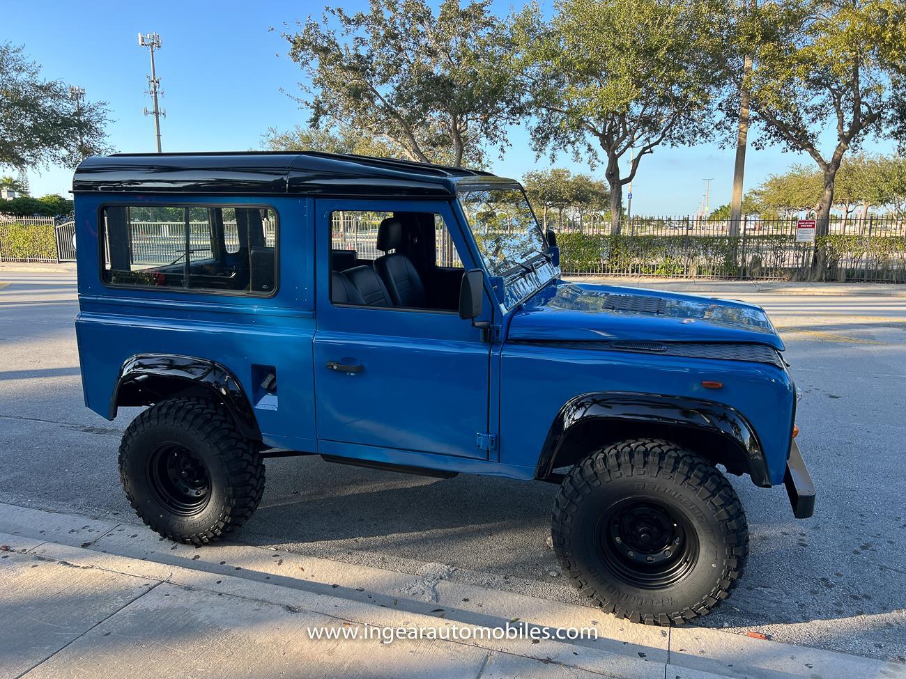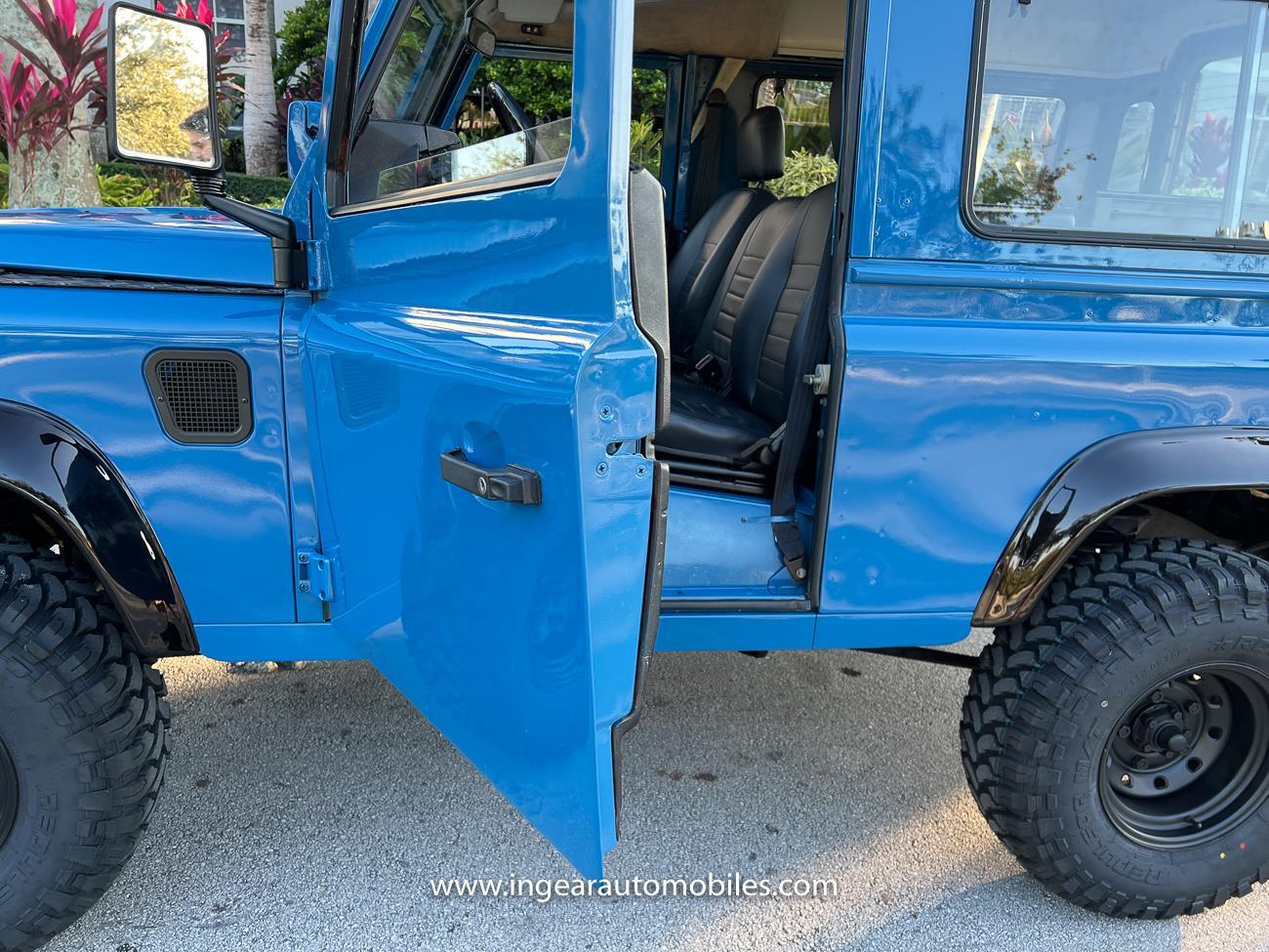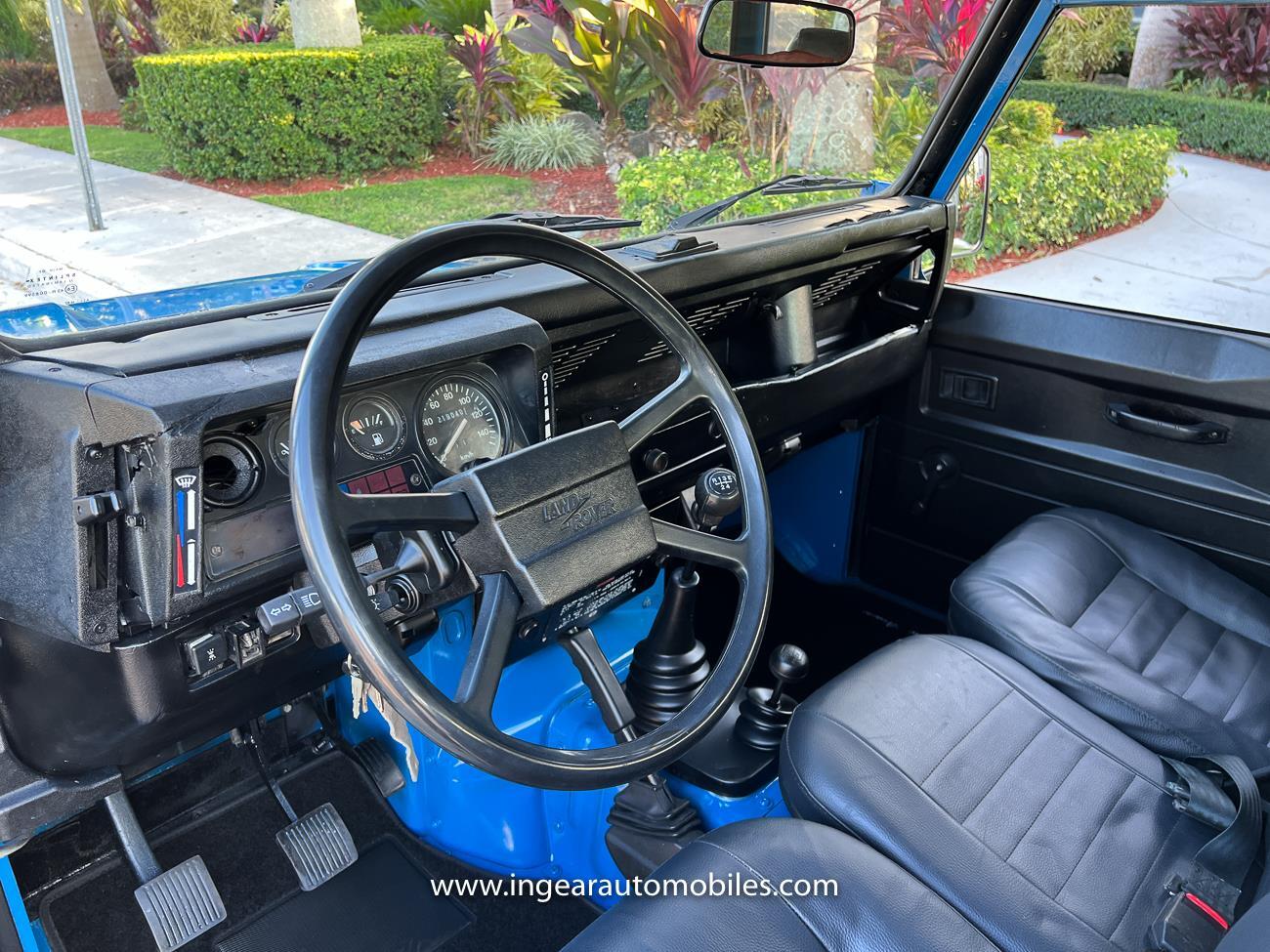 Up for sale is a 1987 Land Rover Defender 90 4x4. Black steel wheels! Finished in blue with black roof. Rear fold down seats! You can take it to the trails & for weekend cruises. The Defender is powered by it’s 2.5L Turbo Diesel engine matted to a 5 speed transmission. Rebuilt turbo. ORIGINAL Left hand drive not a conversion. Defender has numerous options such as Power Steering, Power Brakes, Front Disc Brakes, steel wheels, Factory Left Hand Drive, new wheels & tires, buckets seats, fender flares, rear side opening windows, carpet matts, Diamond plate Fenders, and more…The Interior is nice and contrast well to the exterior safri blue paint, newer upholstery has been fitted, and tastefully done. Factory steering wheel. Has it’s normal wear and tear like any vehicle, but very solid Land Rover, and as you can see it received a restoration by the previous owner. Make sure to see my full album of pictures. Clean FL Title