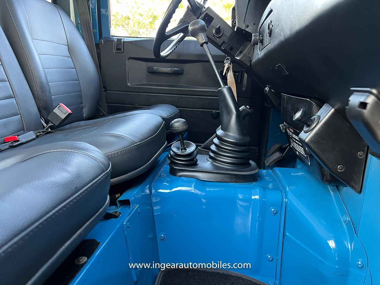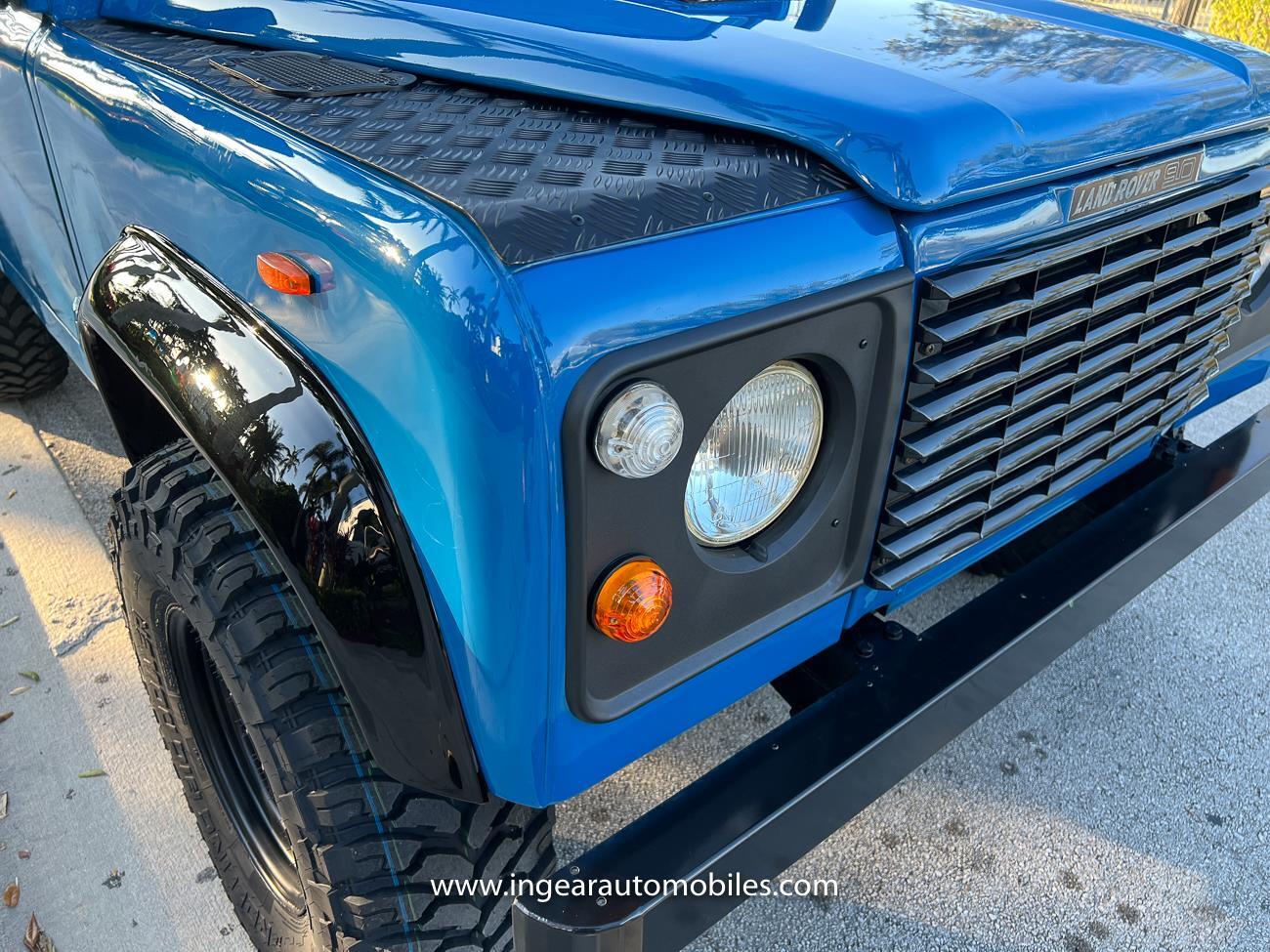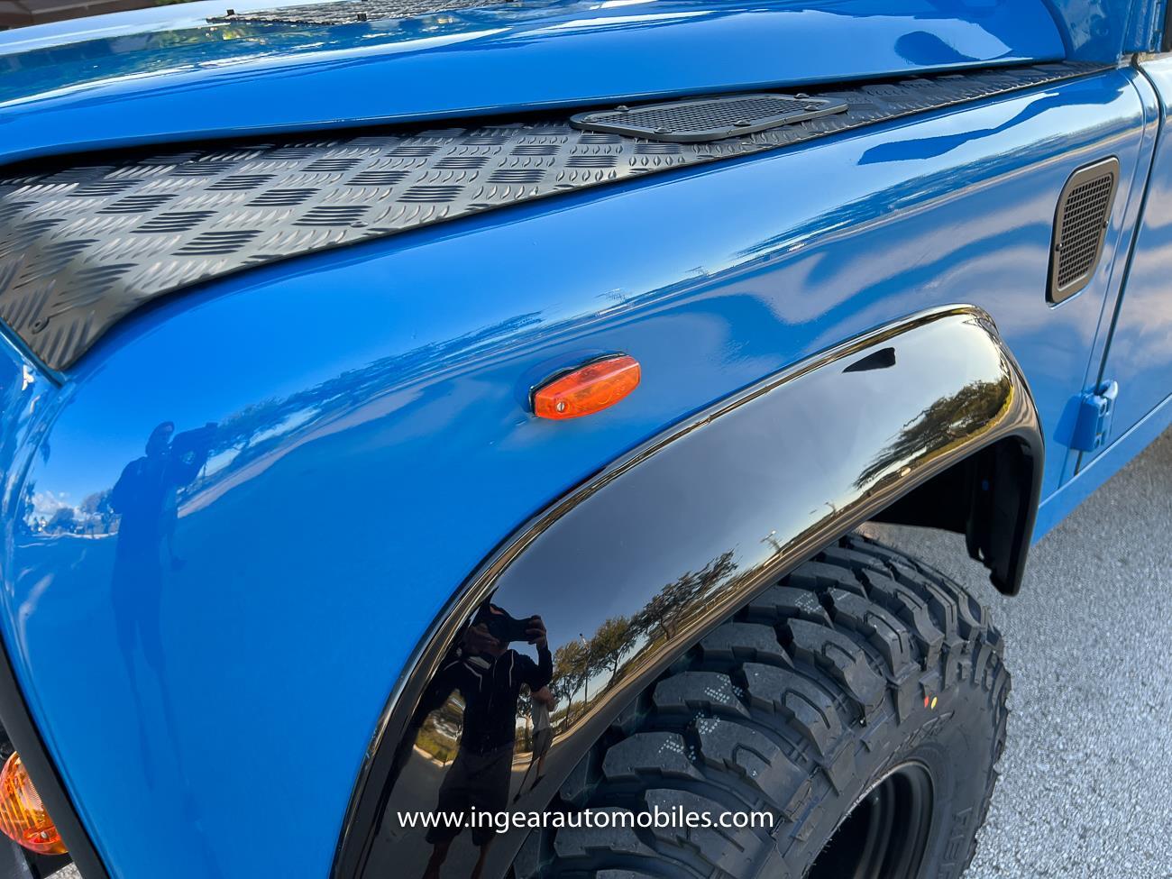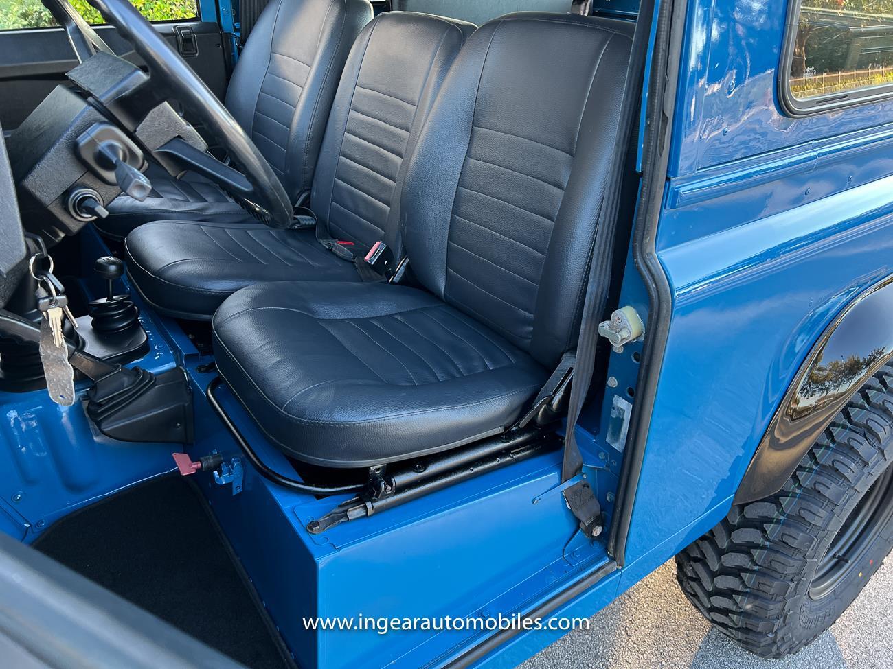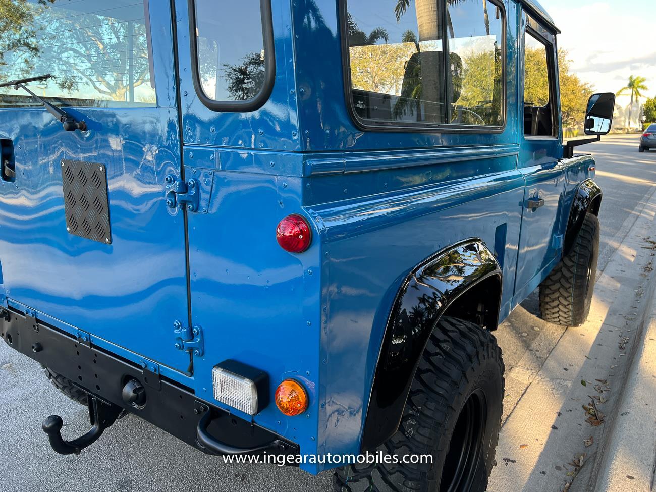 Up for sale is a 1987 Land Rover Defender 90 4x4. Black steel wheels! Finished in blue with black roof. Rear fold down seats! You can take it to the trails & for weekend cruises. The Defender is powered by it’s 2.5L Turbo Diesel engine matted to a 5 speed transmission. Rebuilt turbo. ORIGINAL Left hand drive not a conversion. Defender has numerous options such as Power Steering, Power Brakes, Front Disc Brakes, steel wheels, Factory Left Hand Drive, new wheels & tires, buckets seats, fender flares, rear side opening windows, carpet matts, Diamond plate Fenders, and more…The Interior is nice and contrast well to the exterior safri blue paint, newer upholstery has been fitted, and tastefully done. Factory steering wheel. Has it’s normal wear and tear like any vehicle, but very solid Land Rover, and as you can see it received a restoration by the previous owner. Make sure to see my full album of pictures. Clean FL Title