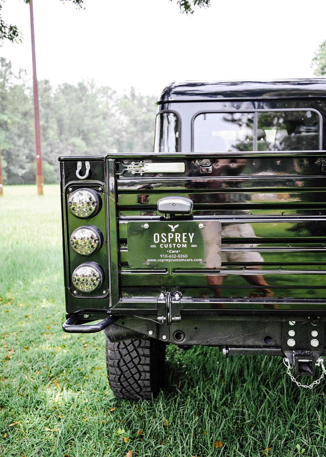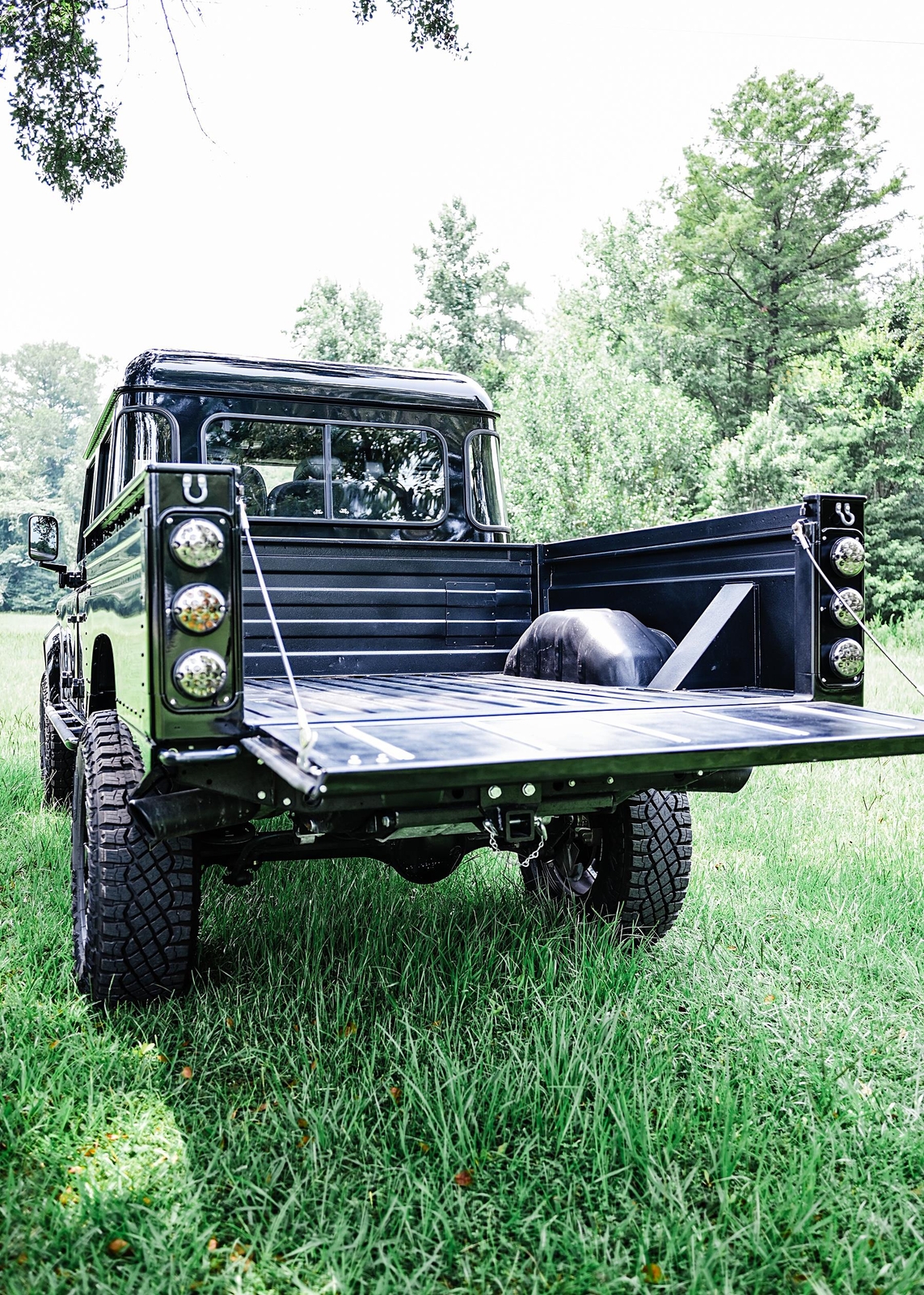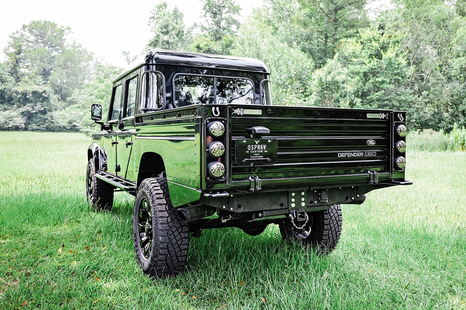 Osprey Custom 4x4, world-renowned builders of custom vehicles, proudly present their latest triumph — this handsomely rugged 1986 Land Rover Defender 130 Hi-Capacity Pickup – a classic British four-door truck that’s tough enough to handle any off-road excursions or towing you plan to do and has an extended bed!