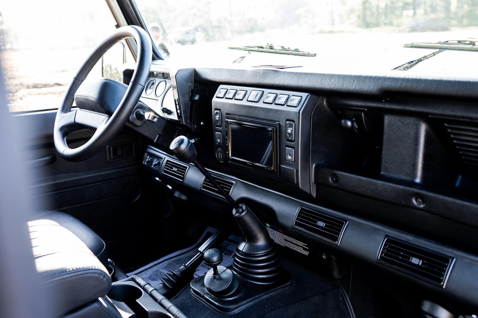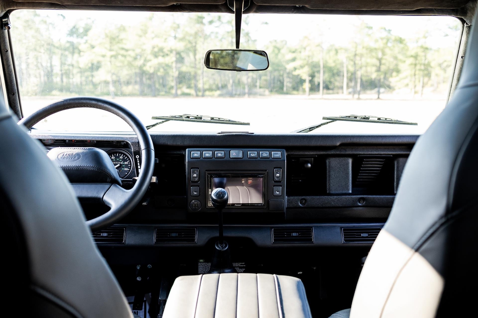 Behind the leather-wrapped sport steering wheel, you'll find a traditional, no-nonsense driver command center. It is focused around standard Land Rover analog gauges and a satin-black center fascia for the auxiliary switchgear and audio head unit. Infotainment is courtesy of a Pioneer® AVH-2550NEX 6.8-inch WVGA touch-screen multimedia DVD receiver head unit featuring Amazon Alexa®, Apple CarPlay™, Android Auto™, Bluetooth®, and SiriusXM-Ready™. The audio experience is enhanced by award-winning Vibe® Slick™ speakers.