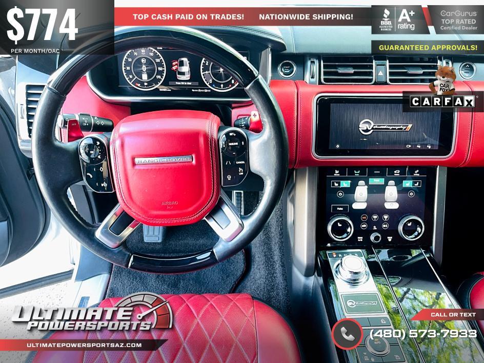 ** 2018 LAND ROVER RANGE ROVER SV AUTOBIOGRAPHY DYNAMIC! HUGE $182|000 ORIGINAL MSRP! 557HP 5.0L V8 SUPERCHARGED! FULLY LOADED WITH EVERY POSSIBLE FOR THIS TRIM! ** RECLINING REAR SEAT ~ RED DIAMOND STITCHED FACTORY INTERIOR ~ FRONT COOLER ~ 22 WHEELS! MUST SEE! ** Welcome to Ultimate Powersports! We strive to make your pre-owned car buying experience enjoyable and hassle free! Our no pressure sales team is here to put you into a car that fits your needs. Free CARFAX report provided on every vehicle! We are proud to present this beautiful 2018 Land Rover Range Rover SV AUTOBIOGRAPHY DYNAMIC 5.0 V8 SUPERCHARGED. This vehicle is in great condition inside-out| highly optioned| and extra clean! NO known mechanical issues. Very well maintained and serviced regularly! It runs and drives great! Don't miss out on this beautiful example and schedule a test drive today. Please call or text for additional details. We have competitive financing options available! We pay top dollar for trade-ins and Extended Warranty options available. We can assist with nationwide vehicle transport! Visit our online showroom 24/7 at  ... Read the full description on our Website at: