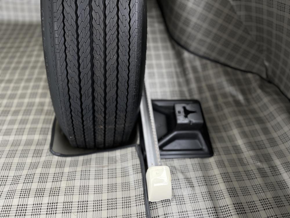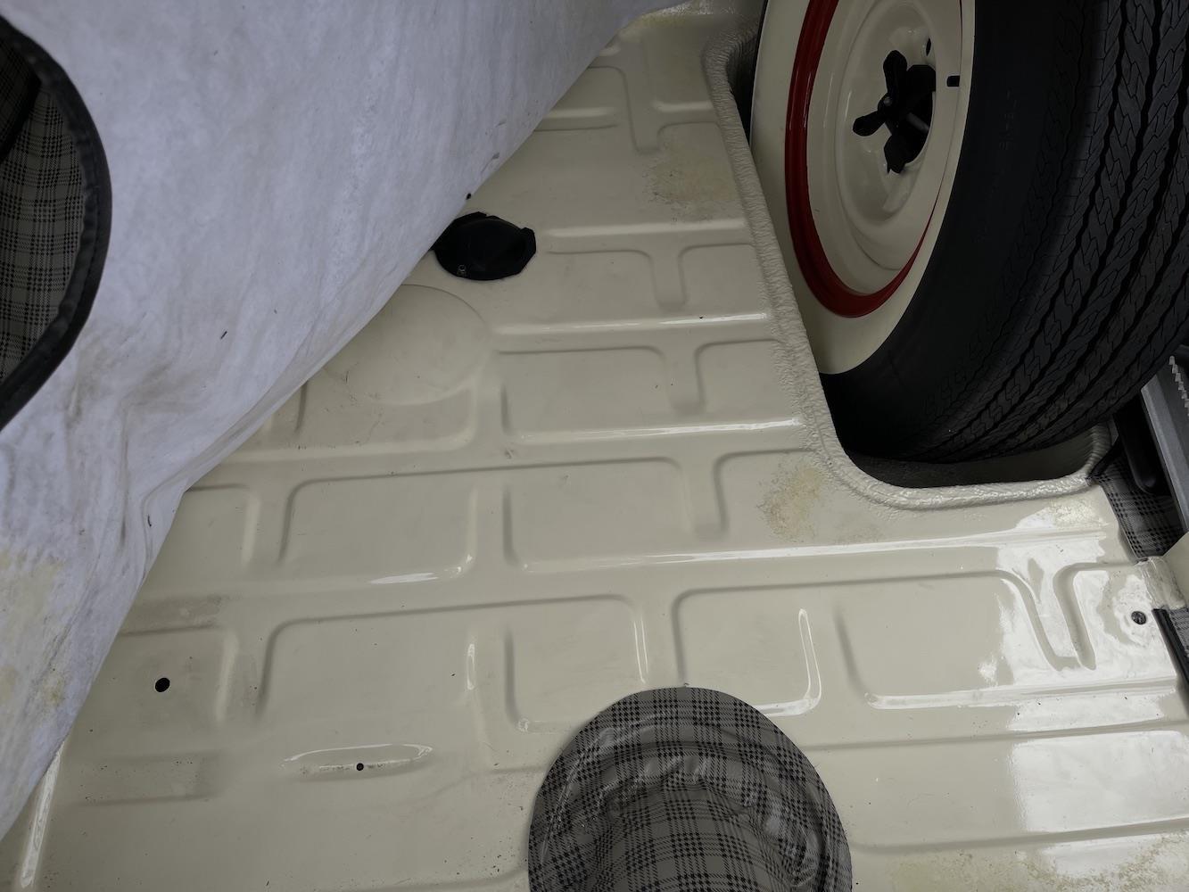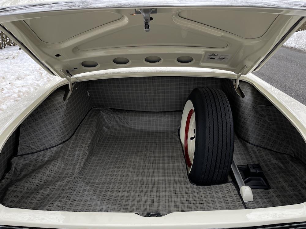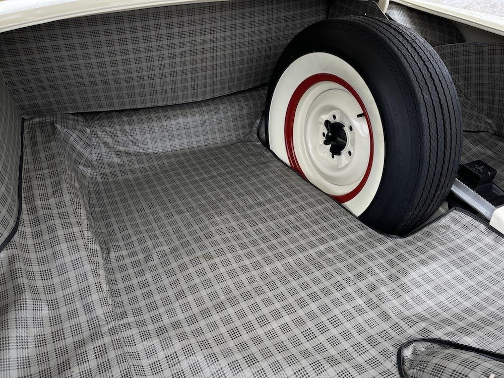 • The trunk has new full lining and mat, matching spare, and jack.