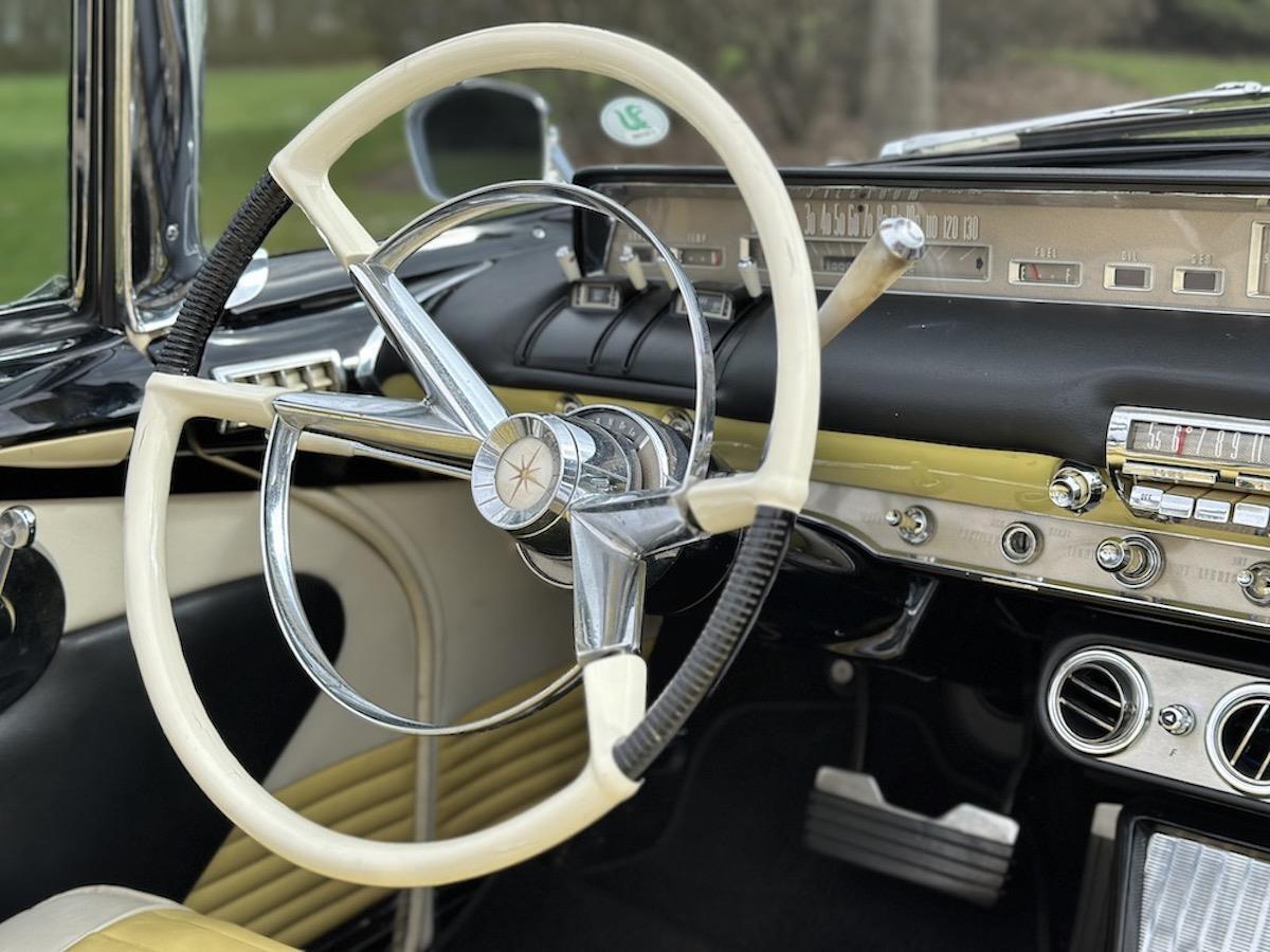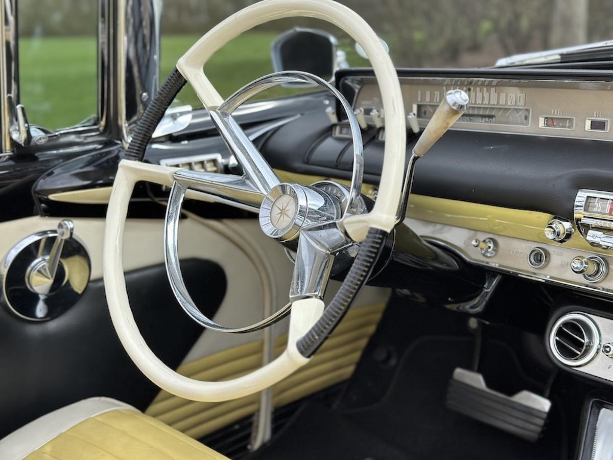 • The restored steering wheel shows no cracks with a nice horn ring and center button