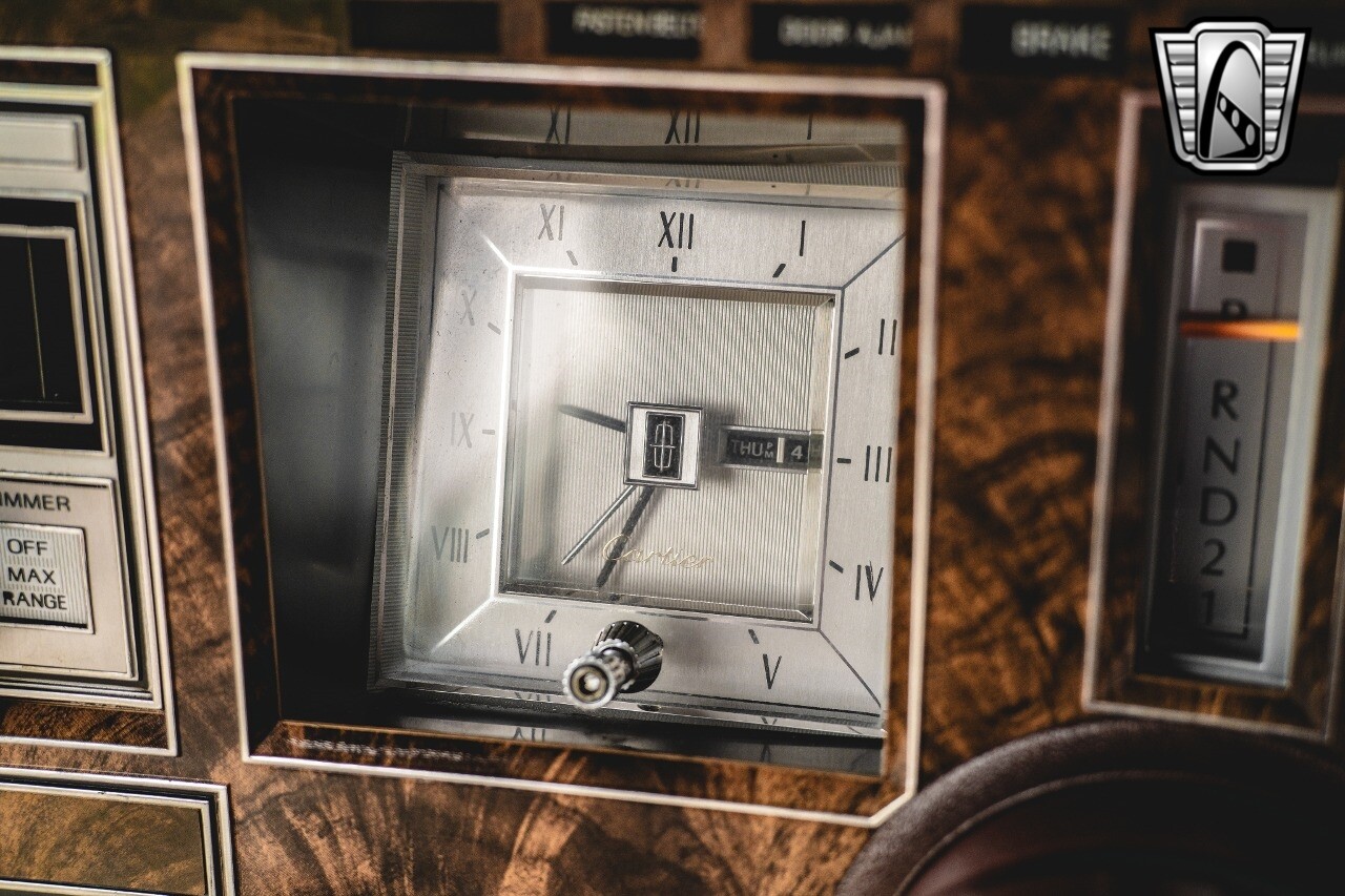 Safety is also a priority in this Lincoln Continental Mark V Cartier. It comes with seatbelts for all passengers, a rear defogger for clear visibility, and a tilt steering wheel for comfortable driving. The vehicle also features radial tires and white walls, enhancing both safety and style.