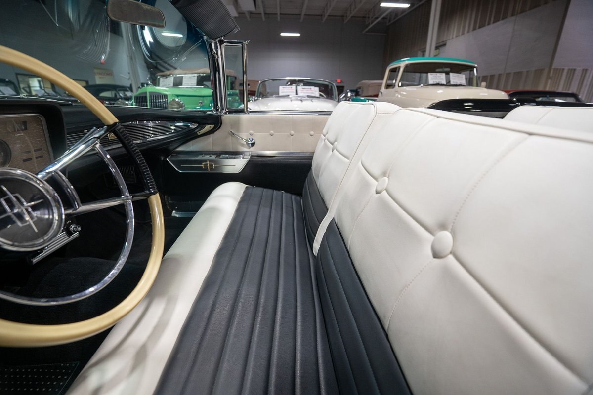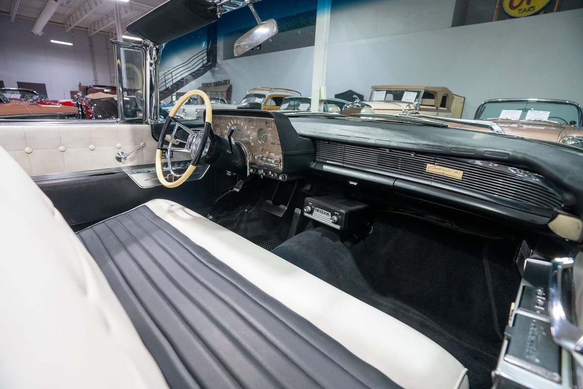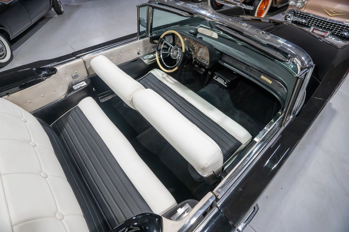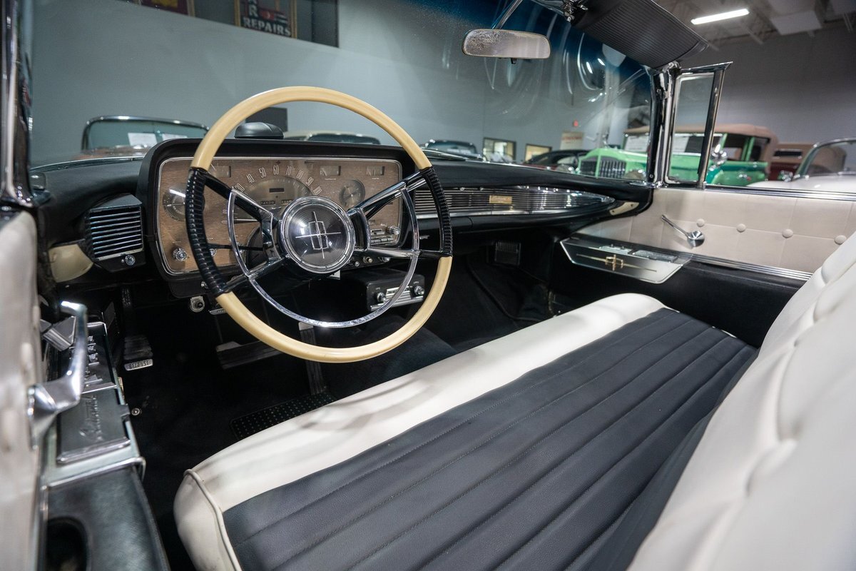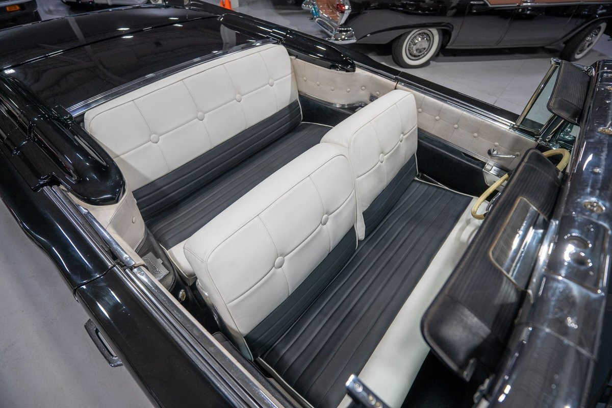 This 1959 Lincoln Mark IV Continental Convertible is an elegant luxury convertible that comes loaded with options! The Lincoln Continental nameplate made its initial debut back in 1940 and it was modeled after the custom-built 1939 Convertible Coupe driven by the President of Lincoln at the time, Edsel Ford. In the couple years that followed and for a few years following World War II, the Continental was one of Lincoln's top-of-the-line models. Then suddenly, in 1949, the Continental was no more, replaced by the Cosmopolitan. A few years after that, the Ford Motor Company sought to introduce a new and even more premium brand above Lincoln. The resulting brand was Continental and Continental's first (and only) automobile was the Mark II, which was sold during the 1956 and 1957 model years. Then in 1958, the Continental was absorbed back into Lincoln as a new model with a brand new look. From nose to tail, the '58 Continental Mark III looked like a completely different car from the Mark II. Some of the highlights included a new slanted, dual headlight design, a brand new grille, an entirely new body, interior layout, and the availability of a powered retractable-style soft convertible top. In 1959, the new Mark IV Continental got a new name, reversing the Mark with roman numeral and Continental name, and, while it retained a similar silhouette of the Mark III, it did receive some modest updates. Up front the grille was refined to include a new "criss-cross" pattern. Down the sides, the side-spear was removed leading to cleaner side profile. In the rear, the taillight design was upgraded to include four taillights. In total, a mere 2,195 Mark IV Continental Convertibles were produced which makes this particular example quite a rare piece of automotive history. Under the hood on this '59 Lincoln Convertible is a 430 Cubic Inch V8 engine fed by a single 4 barrel carburetor that together were said to have created a whopping 350 horsepower when new. This Lincoln's 430 V8 is mated to an automatic transmission which makes this 50s cruiser an easy car for just about anybody to drive. Exhaust exits the Lincoln motor via a dual exhaust setup that creates a wonderful throaty sound out of the rear. Because the Continental was Lincoln's top of the line model, they came loaded with options. With power steering, manuvering this 5,000+ pound convertible in and out of a tight parking space at the local car show or ice cream parlor is a total breeze, easily accomplished with a single hand. Power brakes are another welcome feature on any massive 50s cruiser since it makes bringing this Mark IV Continental to a complete stop much easier. Riding on a set of wide whitewall tires paired with Turbine-style full wheel covers, this '59 Lincoln has an outstanding look parked at the local car show and cruising down the road. The black vinyl power convertible top is in wonderful condition and the power top and related mechanisms all operate smoothly, all with the simple push of a button. The chrome and brightwork around the exterior of this luxurious Lincoln looks great and further elevates the elegance of this 50s cruiser. The body of this '59 Mark IV has been correctly refinished in Presidential Black, completing the exterior look of the car. The interior of this 1959 Lincoln Mark IV Continental Convertible is gorgeous! The front and rear bench seats have been reupholstered in a two-tone color scheme of White and Black vinyl. Like the drivetrain, the interior also comes absolutely loaded with options! All five power windows, including the glass rear window, go up and down with the simple flick of a switch and they can all be disabled with the child safety lock. Anyone should be able to reach the pedals since the front seat is 4-way power adjustable. This 1959 Lincoln Continental also comes equipped with adjustable chrome outside mirrors and auto-dimming headlights. This Mark IV Continental also came equipped from the factory with air conditioning. The upholstered door panels, black carpeting, padded dash, and steering wheel are all in great shape and appear to remain in their stock configuration. The instrument cluster comes outfitted with a 120 MPH speedometer, ammeter, temperature gauge, fuel gauge, Travel Tuner AM radio, clock, and heater/defroster/air conditioning controls. An optional factory FM radio is mounted under the dash as well. Whether you're buying your first classic car or you're adding to your existing collection, this 1959 Lincoln Mark IV Continental Convertible would make an excellent choice. Give Ellingson's a call today at763-428-7337!