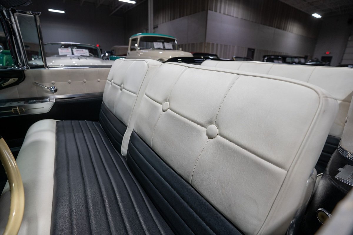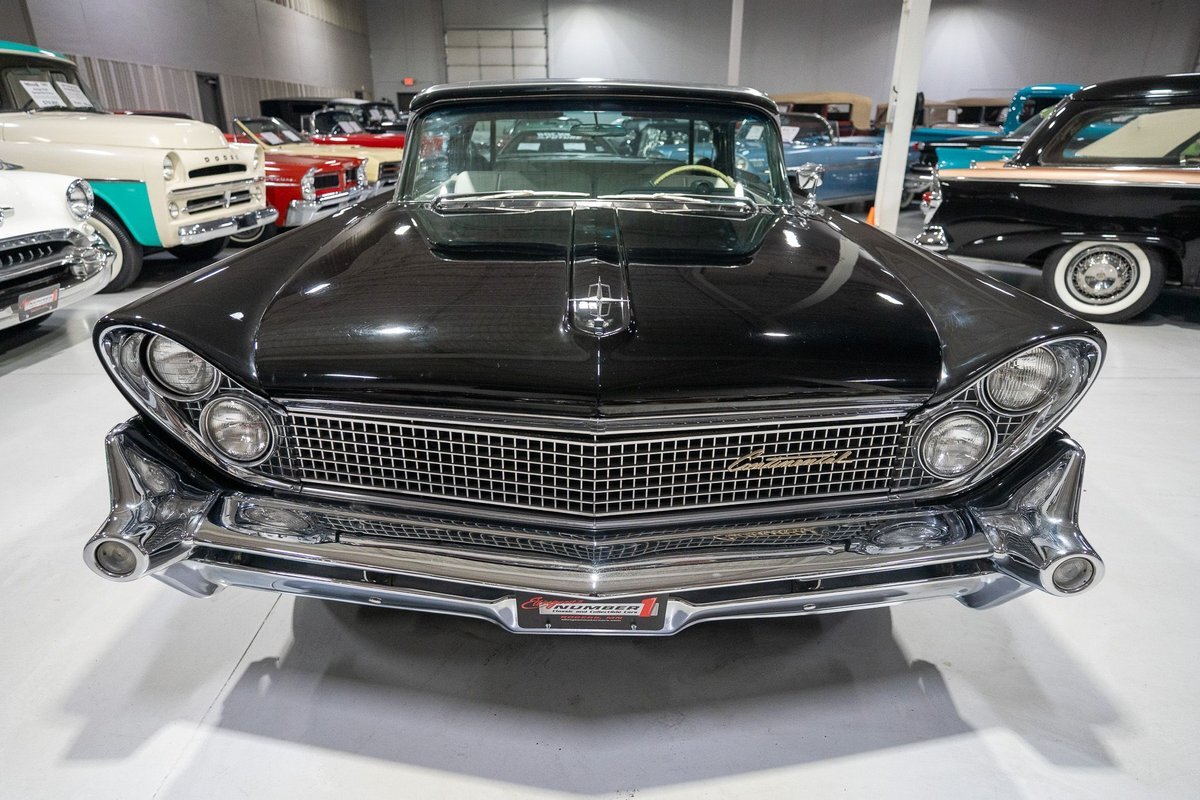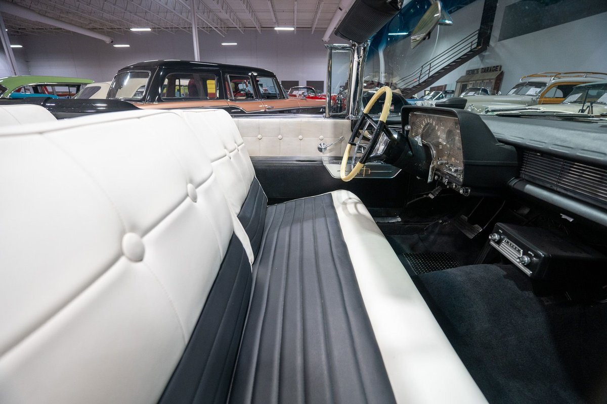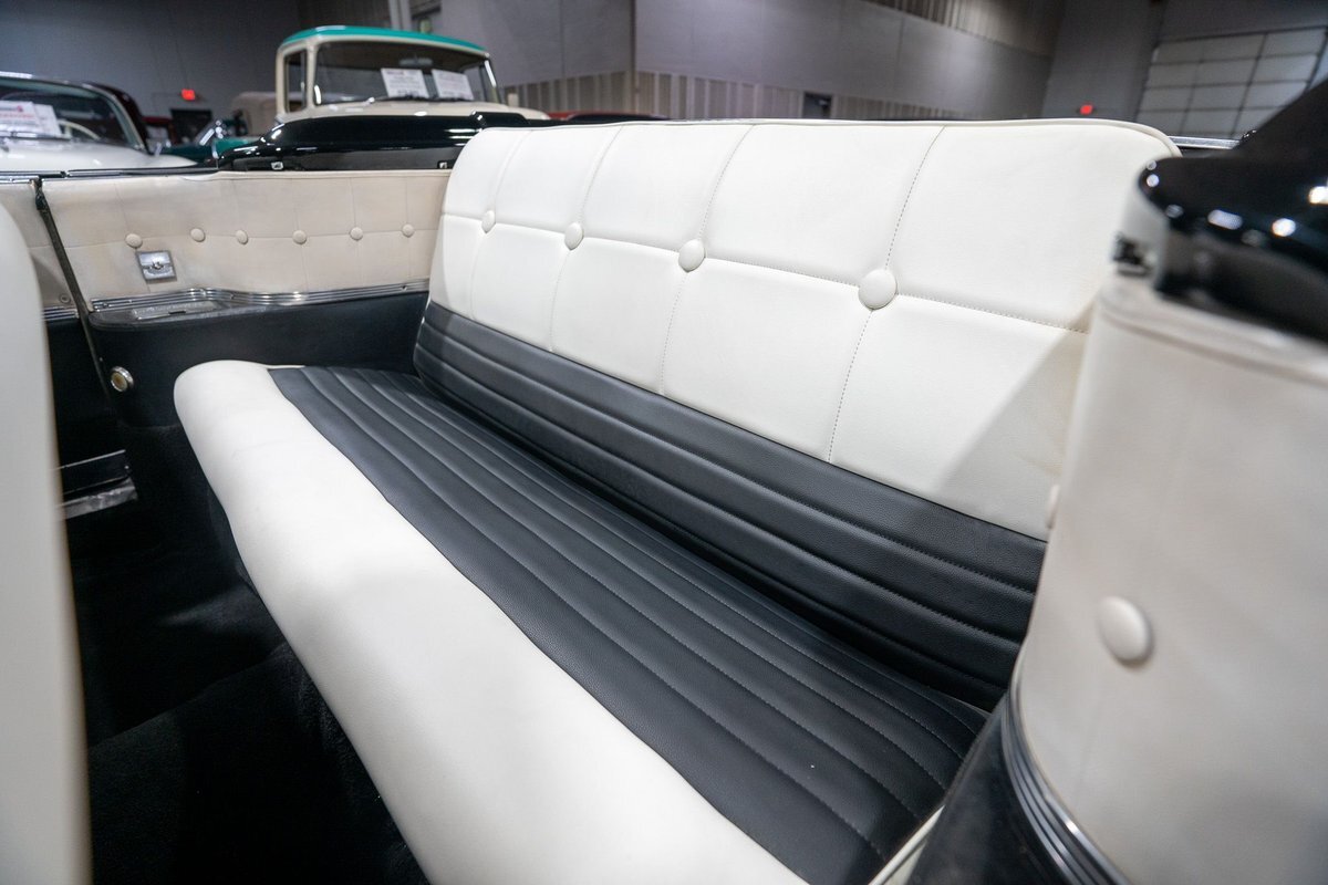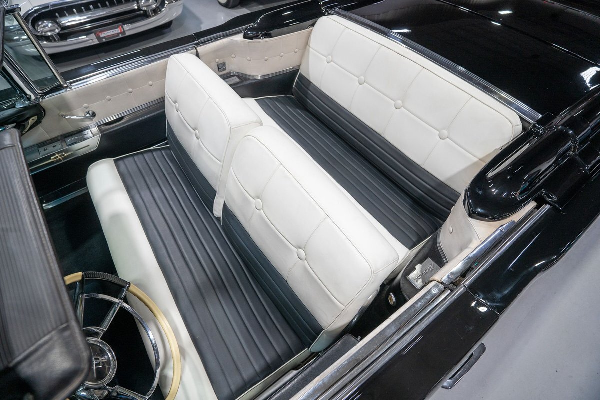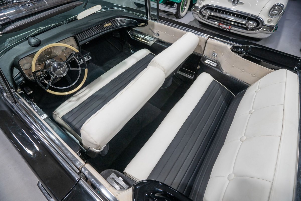 This 1959 Lincoln Mark IV Continental Convertible is an elegant luxury convertible that comes loaded with options! The Lincoln Continental nameplate made its initial debut back in 1940 and it was modeled after the custom-built 1939 Convertible Coupe driven by the President of Lincoln at the time, Edsel Ford. In the couple years that followed and for a few years following World War II, the Continental was one of Lincoln's top-of-the-line models. Then suddenly, in 1949, the Continental was no more, replaced by the Cosmopolitan. A few years after that, the Ford Motor Company sought to introduce a new and even more premium brand above Lincoln. The resulting brand was Continental and Continental's first (and only) automobile was the Mark II, which was sold during the 1956 and 1957 model years. Then in 1958, the Continental was absorbed back into Lincoln as a new model with a brand new look. From nose to tail, the '58 Continental Mark III looked like a completely different car from the Mark II. Some of the highlights included a new slanted, dual headlight design, a brand new grille, an entirely new body, interior layout, and the availability of a powered retractable-style soft convertible top. In 1959, the new Mark IV Continental got a new name, reversing the Mark with roman numeral and Continental name, and, while it retained a similar silhouette of the Mark III, it did receive some modest updates. Up front the grille was refined to include a new "criss-cross" pattern. Down the sides, the side-spear was removed leading to cleaner side profile. In the rear, the taillight design was upgraded to include four taillights. In total, a mere 2,195 Mark IV Continental Convertibles were produced which makes this particular example quite a rare piece of automotive history. Under the hood on this '59 Lincoln Convertible is a 430 Cubic Inch V8 engine fed by a single 4 barrel carburetor that together were said to have created a whopping 350 horsepower when new. This Lincoln's 430 V8 is mated to an automatic transmission which makes this 50s cruiser an easy car for just about anybody to drive. Exhaust exits the Lincoln motor via a dual exhaust setup that creates a wonderful throaty sound out of the rear. Because the Continental was Lincoln's top of the line model, they came loaded with options. With power steering, manuvering this 5,000+ pound convertible in and out of a tight parking space at the local car show or ice cream parlor is a total breeze, easily accomplished with a single hand. Power brakes are another welcome feature on any massive 50s cruiser since it makes bringing this Mark IV Continental to a complete stop much easier. Riding on a set of wide whitewall tires paired with Turbine-style full wheel covers, this '59 Lincoln has an outstanding look parked at the local car show and cruising down the road. The black vinyl power convertible top is in wonderful condition and the power top and related mechanisms all operate smoothly, all with the simple push of a button. The chrome and brightwork around the exterior of this luxurious Lincoln looks great and further elevates the elegance of this 50s cruiser. The body of this '59 Mark IV has been correctly refinished in Presidential Black, completing the exterior look of the car. The interior of this 1959 Lincoln Mark IV Continental Convertible is gorgeous! The front and rear bench seats have been reupholstered in a two-tone color scheme of White and Black vinyl. Like the drivetrain, the interior also comes absolutely loaded with options! All five power windows, including the glass rear window, go up and down with the simple flick of a switch and they can all be disabled with the child safety lock. Anyone should be able to reach the pedals since the front seat is 4-way power adjustable. This 1959 Lincoln Continental also comes equipped with adjustable chrome outside mirrors and auto-dimming headlights. This Mark IV Continental also came equipped from the factory with air conditioning. The upholstered door panels, black carpeting, padded dash, and steering wheel are all in great shape and appear to remain in their stock configuration. The instrument cluster comes outfitted with a 120 MPH speedometer, ammeter, temperature gauge, fuel gauge, Travel Tuner AM radio, clock, and heater/defroster/air conditioning controls. An optional factory FM radio is mounted under the dash as well. Whether you're buying your first classic car or you're adding to your existing collection, this 1959 Lincoln Mark IV Continental Convertible would make an excellent choice. Give Ellingson's a call today at763-428-7337!