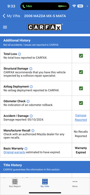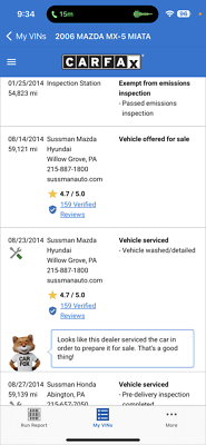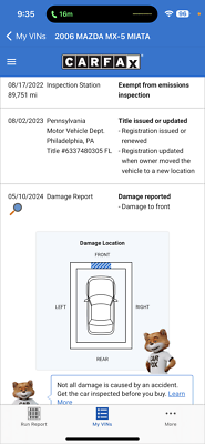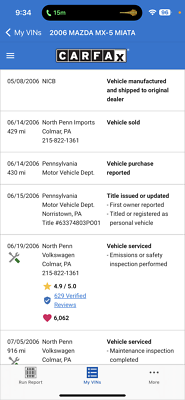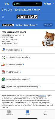 "PLEASE SCROLL TO BOTTOM OF LISTING AND CLICK "SEE FULL ITEM DESCRIPTION" TO VIEW ALL 50+ PHOTOS!!!" "I WILL HELP YOU ARRANGE SHIPPING AND WILL MATCH OR BEAT YOUR QUOTE" UP FOR OUR NEXT AUCTION IS THIS VERY NICE 2006 MAZDA MX-5 TOURING CONVERTIBLE WITH LOW 89K MILES, ACCIDENT FREE CLEAN CARFAX, CLEAN CARFAX, EXTRA CLEAN NON SMOKER AND PRICED TO SELL!!! THIS CAR IS OVERALL IN GOOD CONDITION INSIDE AND OUT. THE EXTERIOR SHOWS NO MAJOR DENTS, DINGS OR SCRATCHES. THE INTERIOR ALSO SHOWS NO SIGNS OF ABUSE, (SEE ALL PICTURES FOR MORE DETAILS.) THE ENGINE RUNS STRONG AND THE TRANSMISSION IS SMOOTH. THE CAR WILL BE A STEAL, SO BID CALL ME TODAY TO MAKE A DEAL267-828-0272 SERGE Please keep in mind you are bidding on a pre-owned vehicle. Everyday driving can cause minor chips, dings or scratches on a vehicle. Unless otherwise noted in our photos or description these items are minimal, but may exist in some cases. Our photos are designed to be a visual description of this vehicle, please look at them carefully and use them to make a confident decision to bid on our vehicle. Get a great vehicle at a great price!!! Bid Now! If you have any questions about this or any of my other auctions please feel free to contact me via e-mail at or you can call me at 267-828-0272 ask for Serge. Thank you for your interests and we look forward to hearing from you...