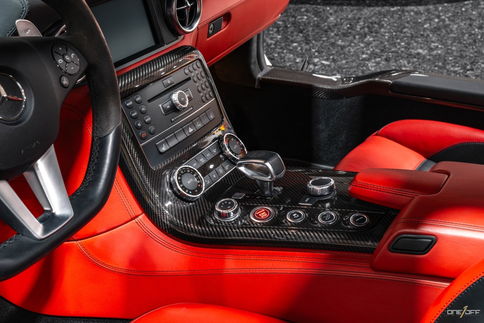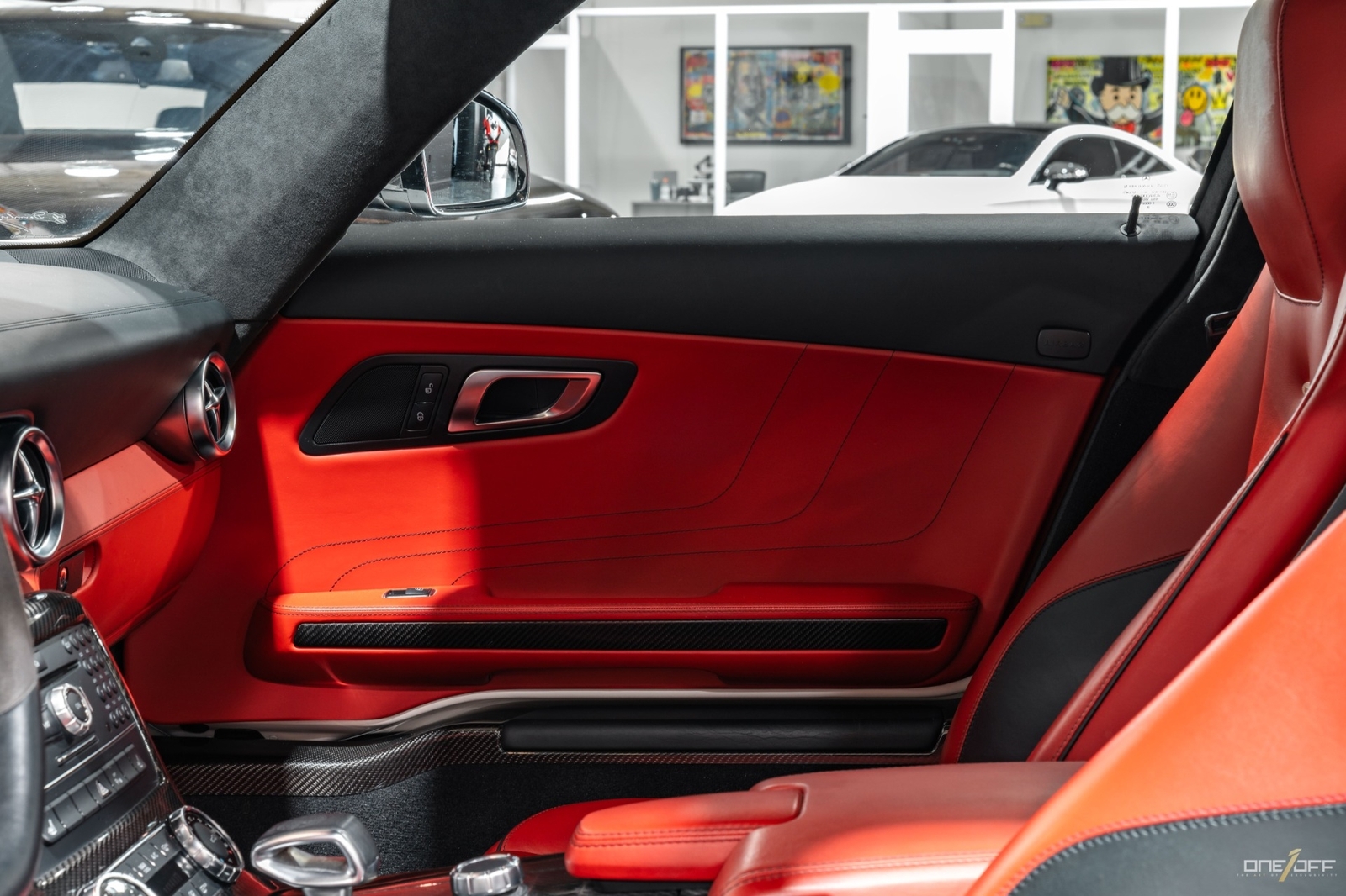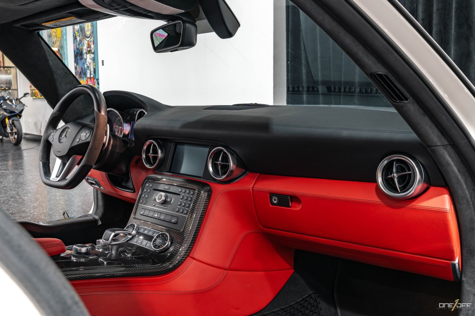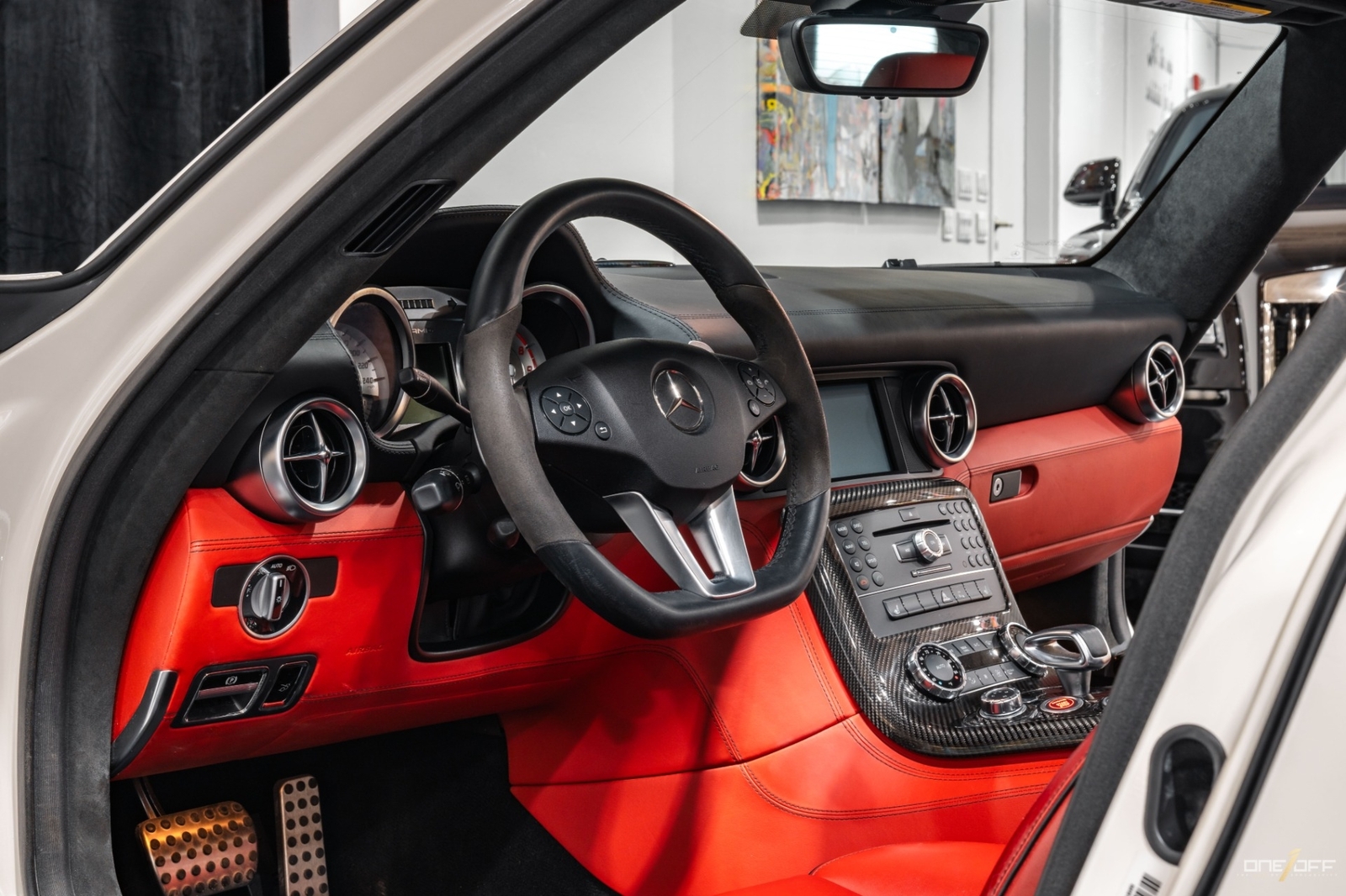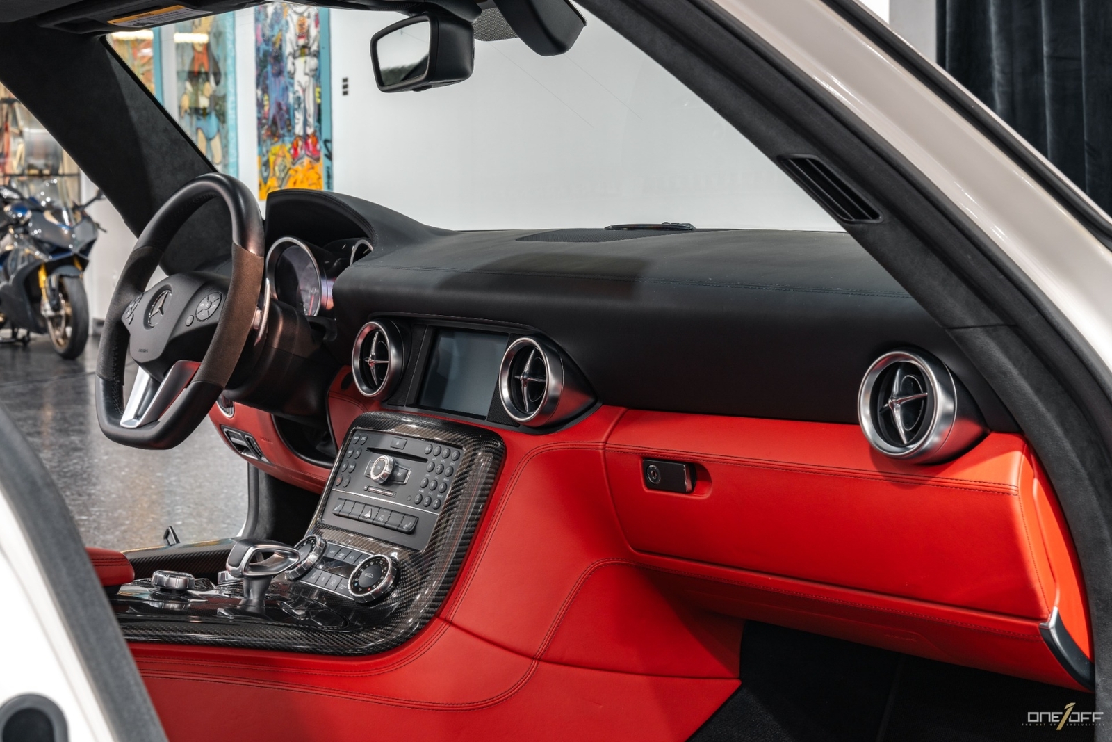 The One-Off Collection is thrilled to present this perfectly modified 2012 SLS AMG, the timeless gullwing masterpiece. The Designo White/Classic Red color combination solidifies this specs placement in the market for years to come, greatly enhancing resale value. In addition to the color spec, it features every must-have option including carbon fiber trim. Lowered on 20"/21" multi-spoke 1886 forged wheels, this may be the hottest white/red SLS on the planet. Don't let the opportunity to own this automotive icon pass you by, make it yours while you still can!