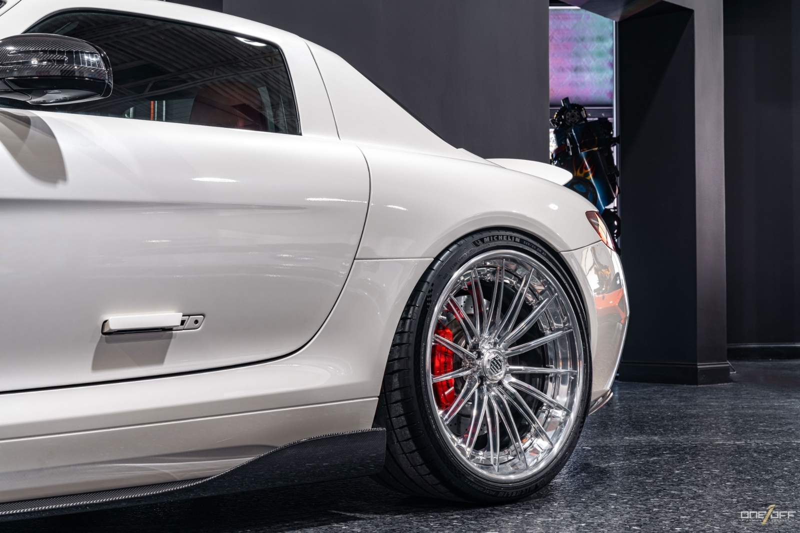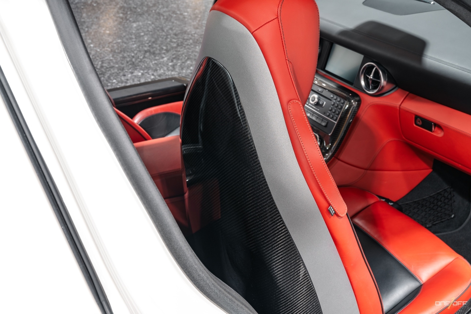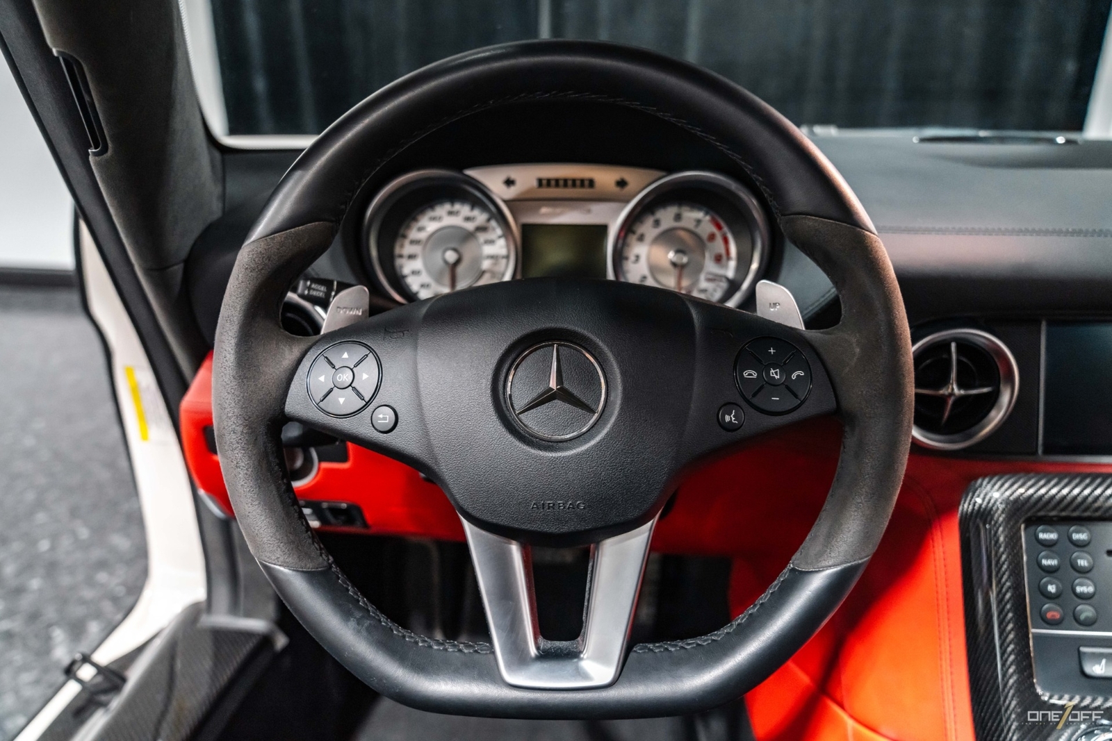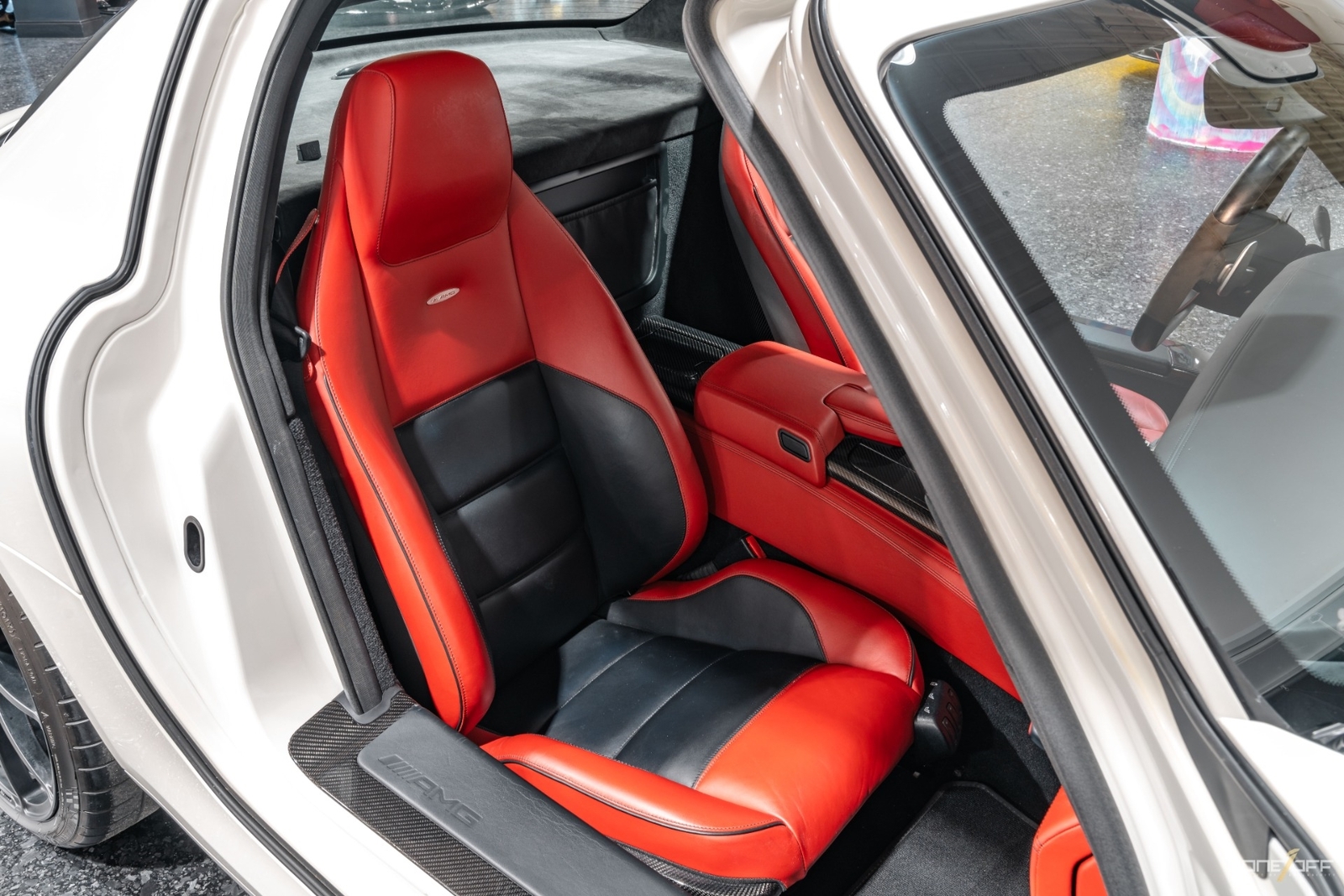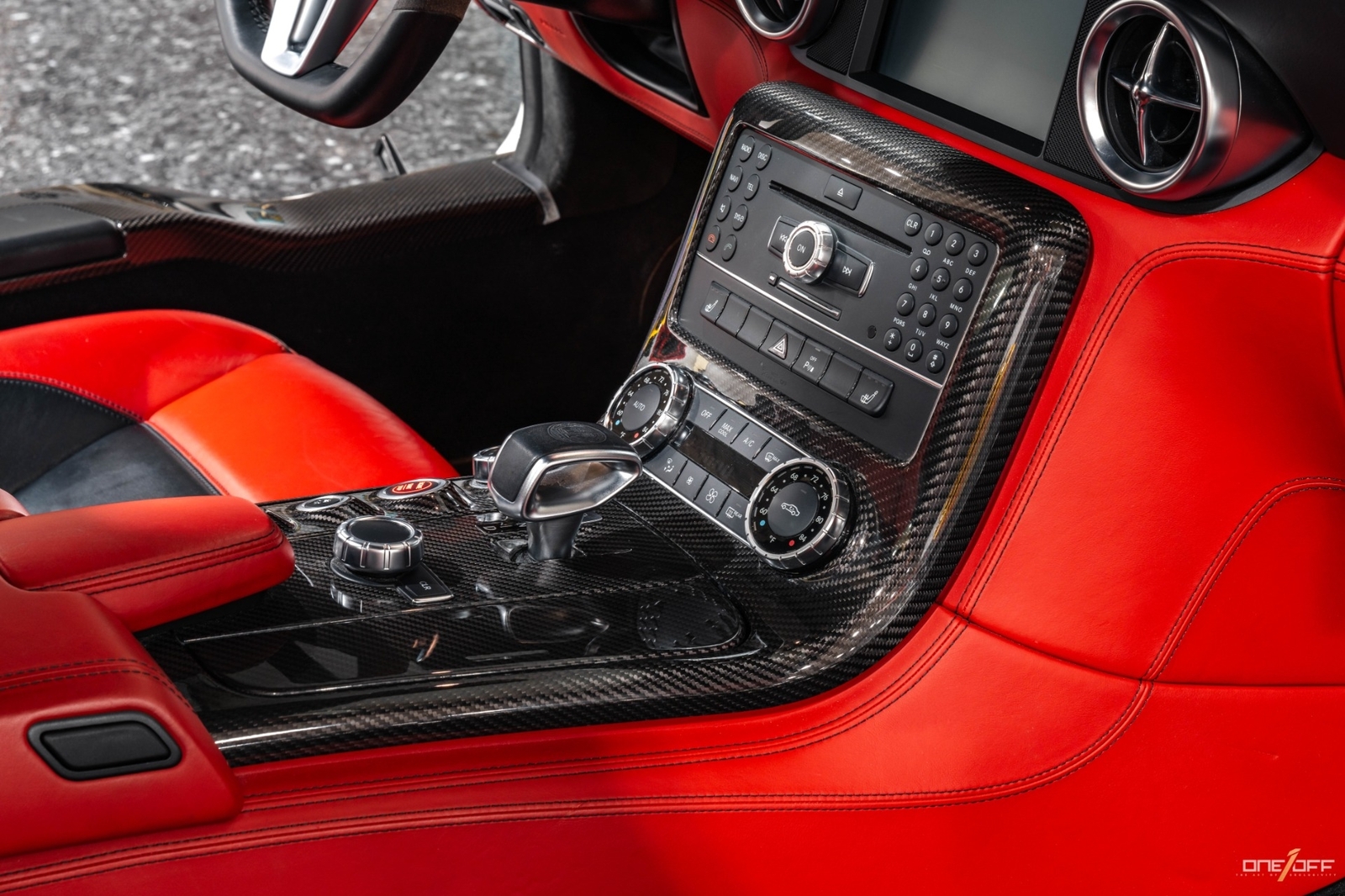 The One-Off Collection is thrilled to present this perfectly modified 2012 SLS AMG, the timeless gullwing masterpiece. The Designo White/Classic Red color combination solidifies this specs placement in the market for years to come, greatly enhancing resale value. In addition to the color spec, it features every must-have option including carbon fiber trim. Lowered on 20"/21" multi-spoke 1886 forged wheels, this may be the hottest white/red SLS on the planet. Don't let the opportunity to own this automotive icon pass you by, make it yours while you still can!