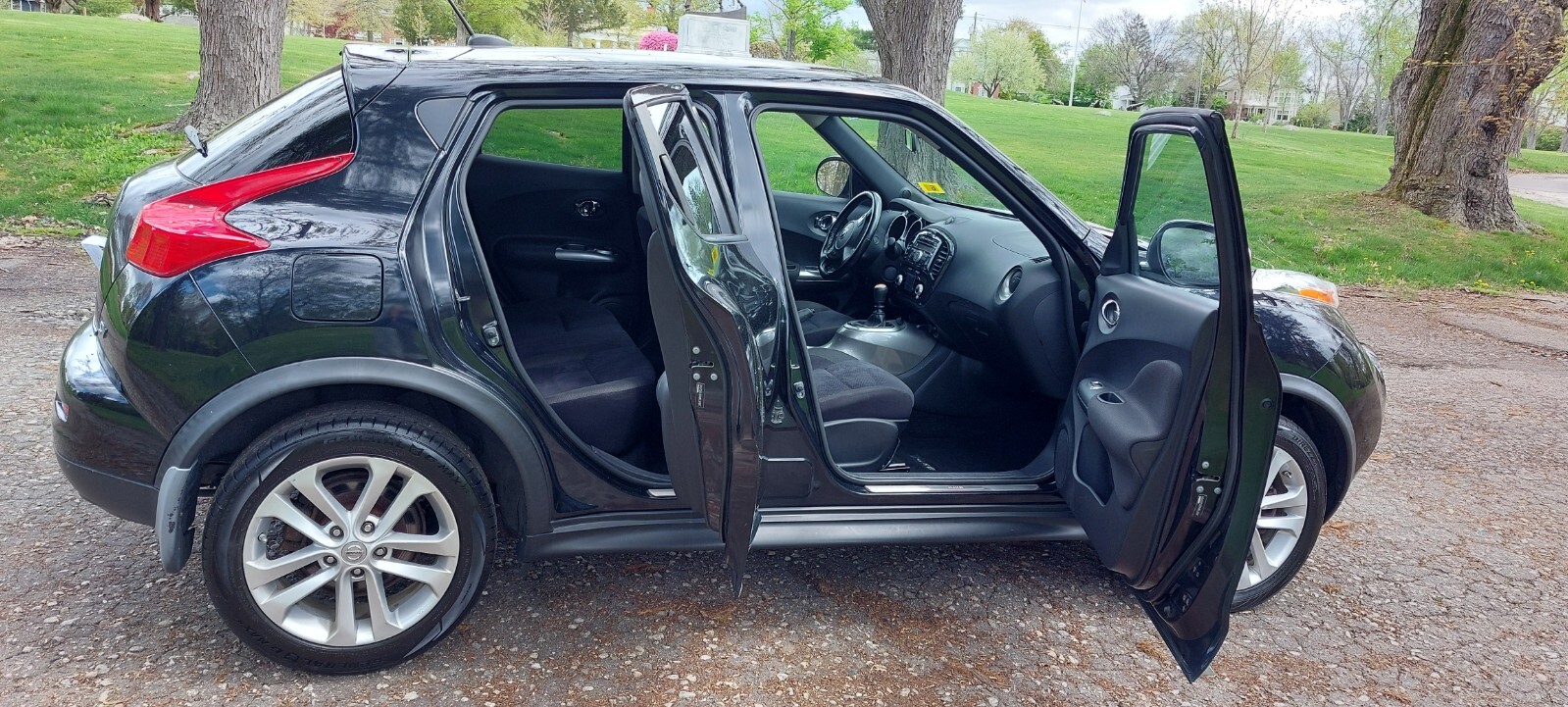 Lots of extras included! Manual transmission for that real turbo experience and control. Price listed includes four Nissan alloy wheels with summer tires on the car PLUS an extra set of four Nissan alloy wheels with four Hankook i*Pike winter tires mounted. Installed tonneau cover hides everything behind the rear seats from view and protects your belongings. OEM Chrome Package, fog lights, sunroof, Bluetooth, keyless entry, push button start, privacy glass in rear windows, rear trailer hitch, Interior Lighting Kit (including illuminated "Juke" on front door kick plates). Rear seats fold down completely flat. Very clean, dependable car, runs well. One owner, no accidents. This is a great car! Reasonable offers considered.
