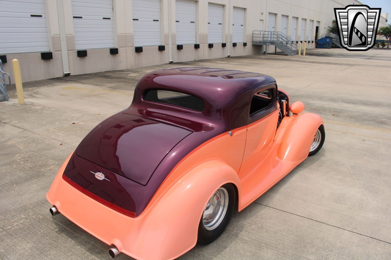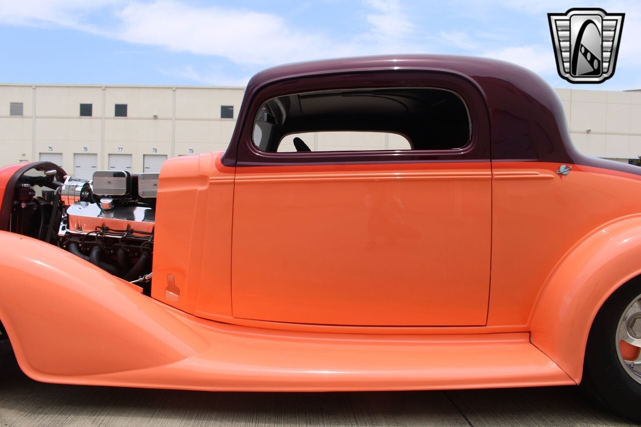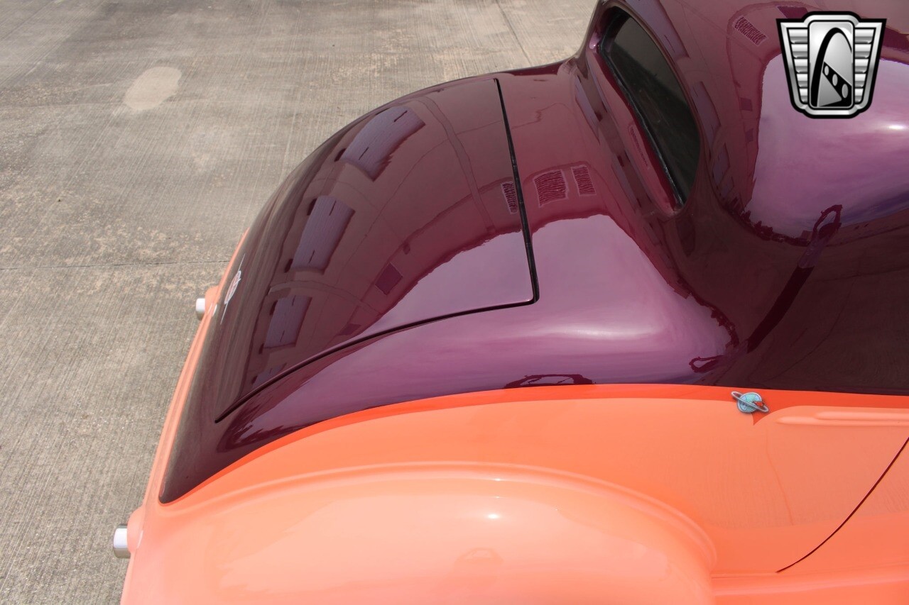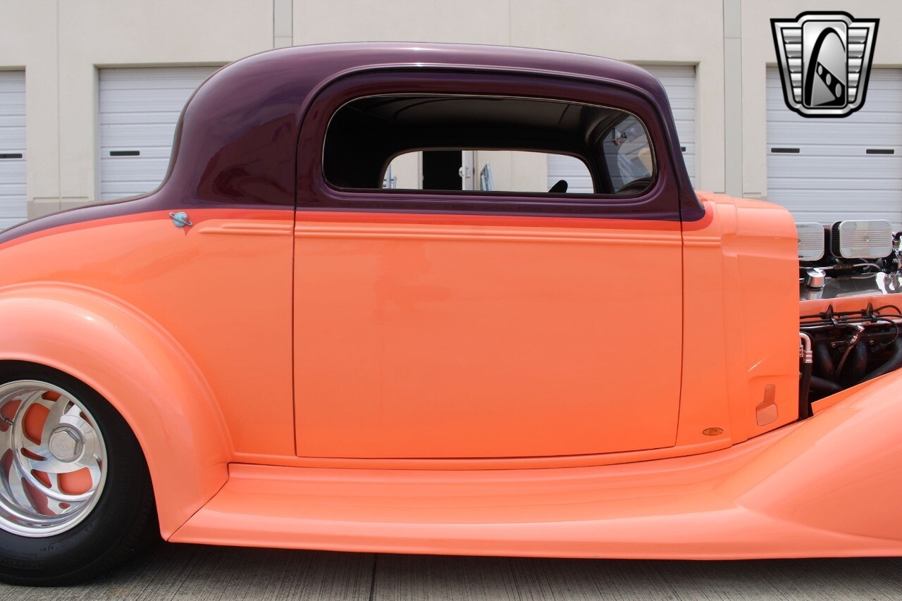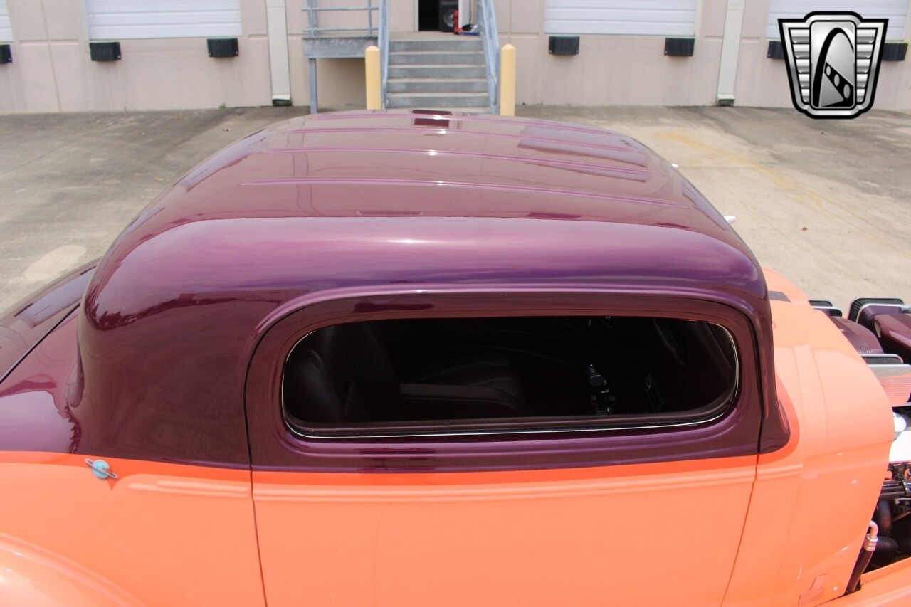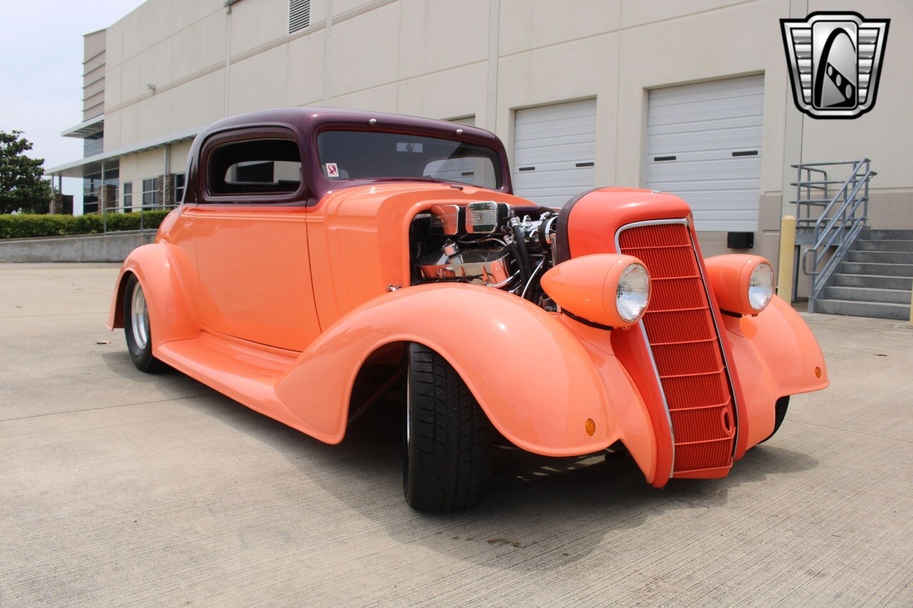 Gateway Classic Cars Houston Showroom is excited to offer this amazing 1934 Oldsmobile Country Club Coupe for sale. According to its owner, there were only 400 of these cars ever produced, and of those, this is the last one known to exist. Not only is that a unique aspect of this car, but according to him, his great grandfather purchased it new, and he is the second owner. Now, we have no way of verifying that, but we'll take his word for it. The car comes with a binder of restoration photos, and suffice it to say that it went from an original steel roller to what you now see, which is pretty wild. It now sports a new custom-fabbed 1/4 x 2 x 4 rectangular tube steel frame, which has been boxed and subframed with a "Z'd, smoothed, painted and finished" configuration. It features Heidts Superide polished stainless steel front suspension, and Heidts Superide Power Rack and Pinion steering. The rear suspension is a polished stainless TCI 4-link setup with adjustable chromed Carrera 350lb spring setup. The rear is a Ford 9" with 3.51:1 gears, and was balanced by Art Morrison. It features a custom Tulsa Drive Shafts drive shaft, which has been balanced to 6500 RPM. The front brakes are discs from a 1988 Corvette, and the rears are standard Ford drums, but the power assist comes from the 1988 Corvette's booster. A monster 502 CID GM/Keikhafer Racing Marine crate motor, topped by a dual quad intake from a 427 Corvette, and dual Edelbrock 4BBL carbs, and is backed by a beefed up 700R4 4-speed automatic transmisson. Hedman headers handle getting exhaust into the dual exhaust, and the offset Turbo mufflers sound great. The body features a 2" angle chop, suicide doors, recessed parking lights, computerized rear lighting, fenders have been welded on and smoothed, along with the running boards. The PPG Pale Orange/Red Orange, and Hawaiian Amethyst base coat/clear coat finish was masterfully applied by Larry Trip of Muskogee, OK. This bad boy not only looks good, but it pulls like a 747 on steroids. If you ever get tired of listing to the monster 502, you can take advantage of the audio system, which features four 1.5" Piezo tweeters, four 6" midrange, and a 12-inch subwoofer. Sound gets to the speakers via a Sony KT7500 head unit, supported by bridged 4 channel 800W amp and 400W subwoofer amp. Vintage Air has been installed, but it's never been charged with refrigerant. The occupants will find the custom burgundy leather-covered 2002 Acura Legend seats to be very comfortable for long cruises. [ omitted ].