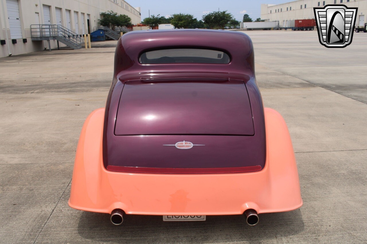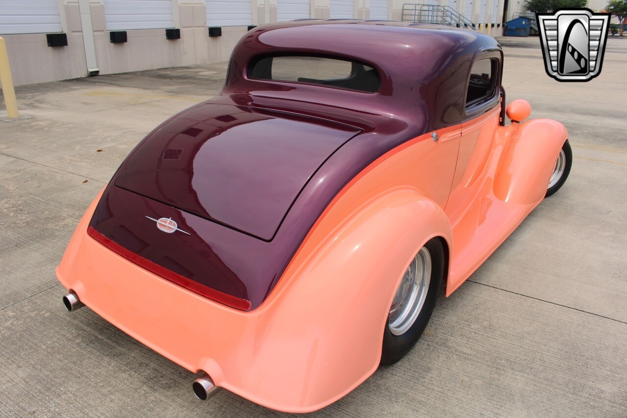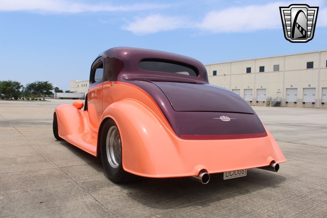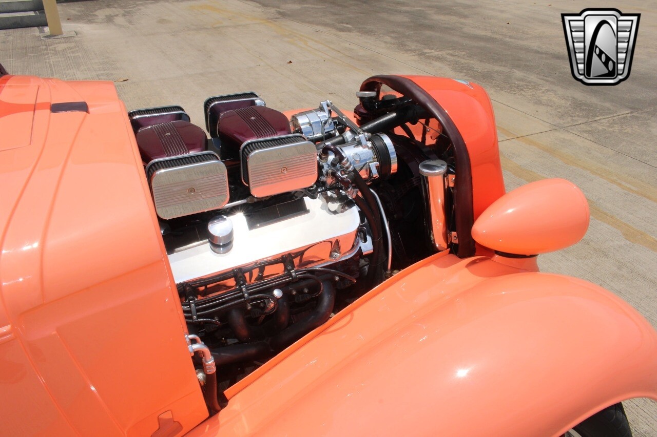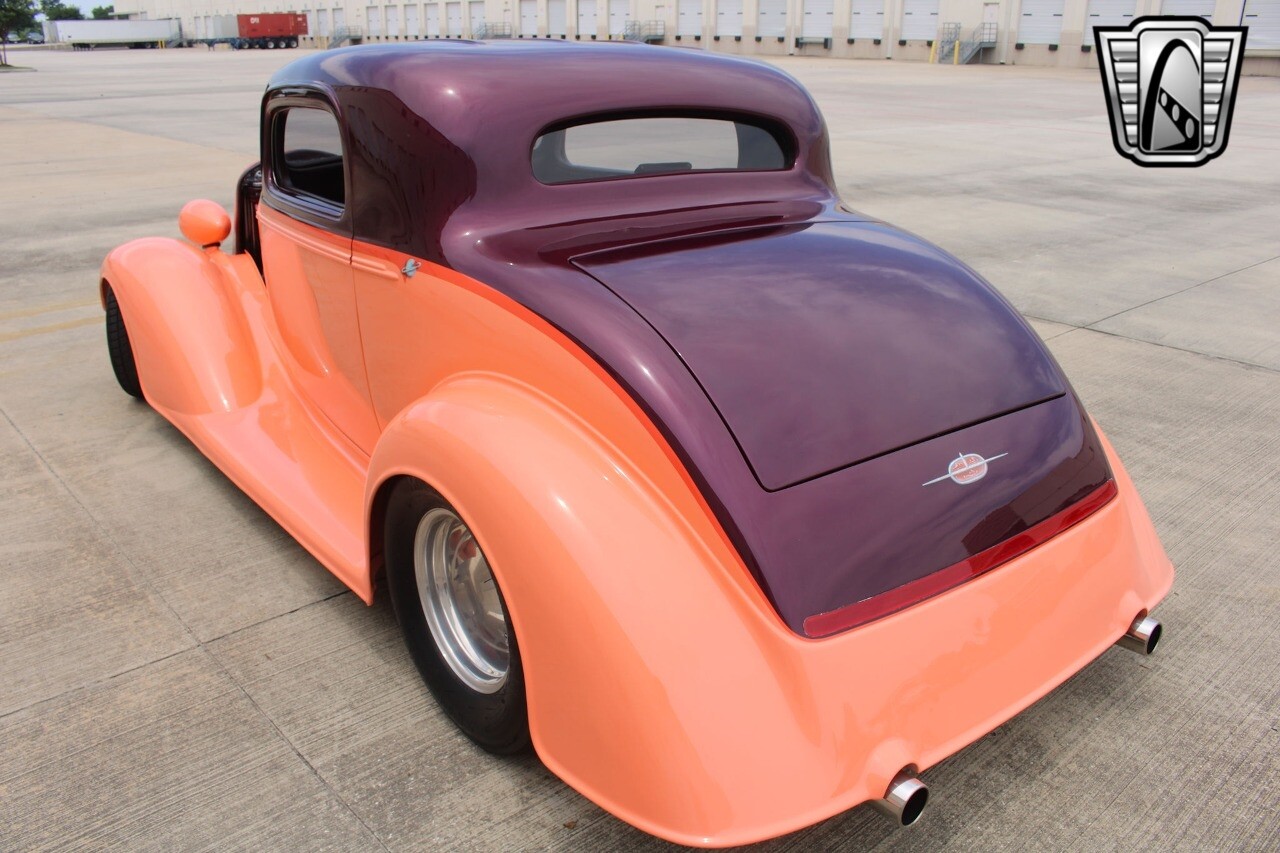 Gateway Classic Cars Houston Showroom is excited to offer this amazing 1934 Oldsmobile Country Club Coupe for sale. According to its owner, there were only 400 of these cars ever produced, and of those, this is the last one known to exist. Not only is that a unique aspect of this car, but according to him, his great grandfather purchased it new, and he is the second owner. Now, we have no way of verifying that, but we'll take his word for it. The car comes with a binder of restoration photos, and suffice it to say that it went from an original steel roller to what you now see, which is pretty wild. It now sports a new custom-fabbed 1/4 x 2 x 4 rectangular tube steel frame, which has been boxed and subframed with a "Z'd, smoothed, painted and finished" configuration. It features Heidts Superide polished stainless steel front suspension, and Heidts Superide Power Rack and Pinion steering. The rear suspension is a polished stainless TCI 4-link setup with adjustable chromed Carrera 350lb spring setup. The rear is a Ford 9" with 3.51:1 gears, and was balanced by Art Morrison. It features a custom Tulsa Drive Shafts drive shaft, which has been balanced to 6500 RPM. The front brakes are discs from a 1988 Corvette, and the rears are standard Ford drums, but the power assist comes from the 1988 Corvette's booster. A monster 502 CID GM/Keikhafer Racing Marine crate motor, topped by a dual quad intake from a 427 Corvette, and dual Edelbrock 4BBL carbs, and is backed by a beefed up 700R4 4-speed automatic transmisson. Hedman headers handle getting exhaust into the dual exhaust, and the offset Turbo mufflers sound great. The body features a 2" angle chop, suicide doors, recessed parking lights, computerized rear lighting, fenders have been welded on and smoothed, along with the running boards. The PPG Pale Orange/Red Orange, and Hawaiian Amethyst base coat/clear coat finish was masterfully applied by Larry Trip of Muskogee, OK. This bad boy not only looks good, but it pulls like a 747 on steroids. If you ever get tired of listing to the monster 502, you can take advantage of the audio system, which features four 1.5" Piezo tweeters, four 6" midrange, and a 12-inch subwoofer. Sound gets to the speakers via a Sony KT7500 head unit, supported by bridged 4 channel 800W amp and 400W subwoofer amp. Vintage Air has been installed, but it's never been charged with refrigerant. The occupants will find the custom burgundy leather-covered 2002 Acura Legend seats to be very comfortable for long cruises. [ omitted ].