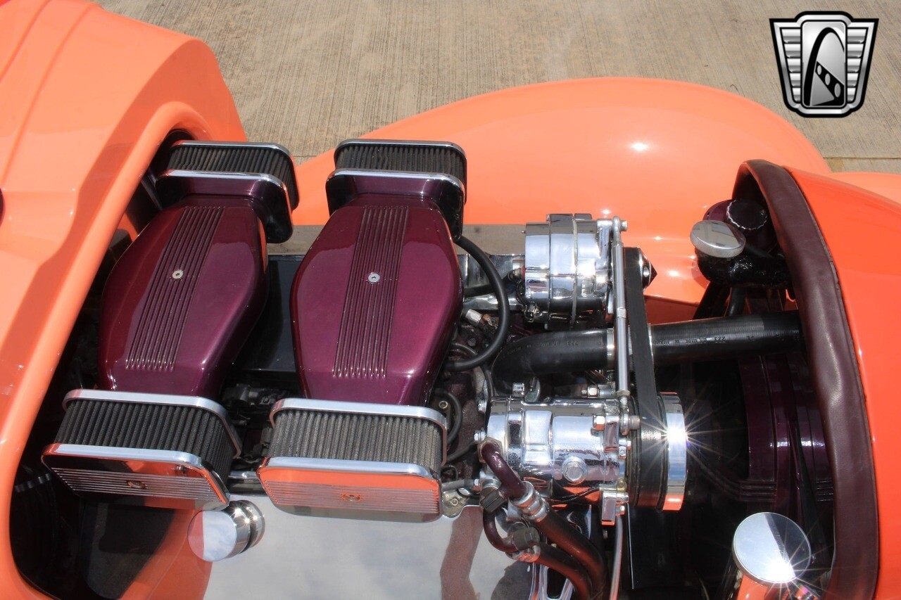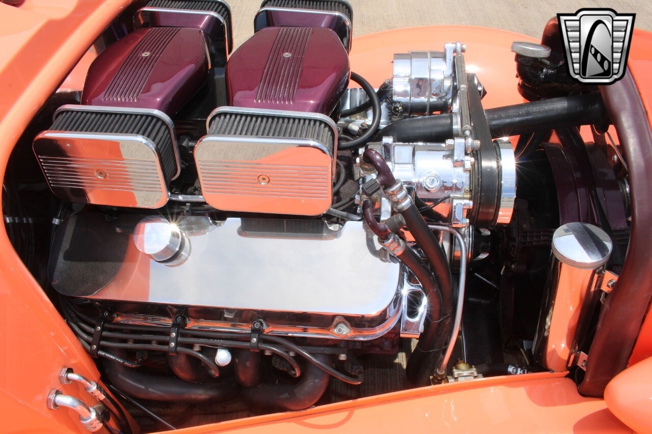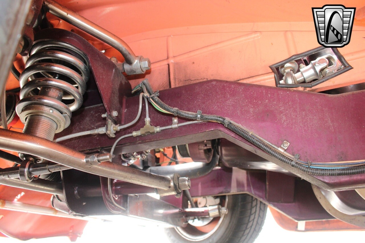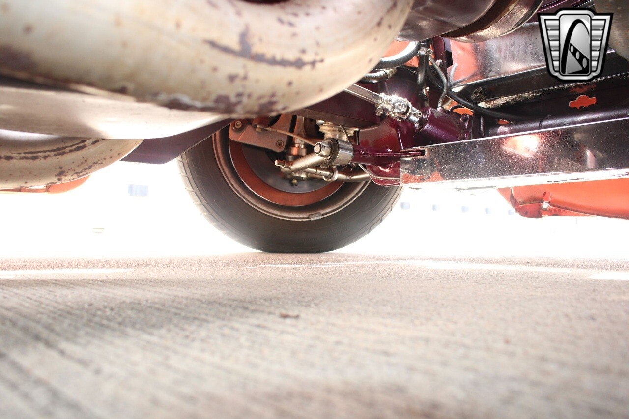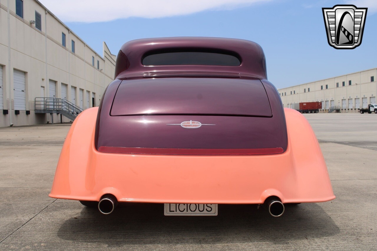 Gateway Classic Cars Houston Showroom is excited to offer this amazing 1934 Oldsmobile Country Club Coupe for sale. According to its owner, there were only 400 of these cars ever produced, and of those, this is the last one known to exist. Not only is that a unique aspect of this car, but according to him, his great grandfather purchased it new, and he is the second owner. Now, we have no way of verifying that, but we'll take his word for it. The car comes with a binder of restoration photos, and suffice it to say that it went from an original steel roller to what you now see, which is pretty wild. It now sports a new custom-fabbed 1/4 x 2 x 4 rectangular tube steel frame, which has been boxed and subframed with a "Z'd, smoothed, painted and finished" configuration. It features Heidts Superide polished stainless steel front suspension, and Heidts Superide Power Rack and Pinion steering. The rear suspension is a polished stainless TCI 4-link setup with adjustable chromed Carrera 350lb spring setup. The rear is a Ford 9" with 3.51:1 gears, and was balanced by Art Morrison. It features a custom Tulsa Drive Shafts drive shaft, which has been balanced to 6500 RPM. The front brakes are discs from a 1988 Corvette, and the rears are standard Ford drums, but the power assist comes from the 1988 Corvette's booster. A monster 502 CID GM/Keikhafer Racing Marine crate motor, topped by a dual quad intake from a 427 Corvette, and dual Edelbrock 4BBL carbs, and is backed by a beefed up 700R4 4-speed automatic transmisson. Hedman headers handle getting exhaust into the dual exhaust, and the offset Turbo mufflers sound great. The body features a 2" angle chop, suicide doors, recessed parking lights, computerized rear lighting, fenders have been welded on and smoothed, along with the running boards. The PPG Pale Orange/Red Orange, and Hawaiian Amethyst base coat/clear coat finish was masterfully applied by Larry Trip of Muskogee, OK. This bad boy not only looks good, but it pulls like a 747 on steroids. If you ever get tired of listing to the monster 502, you can take advantage of the audio system, which features four 1.5" Piezo tweeters, four 6" midrange, and a 12-inch subwoofer. Sound gets to the speakers via a Sony KT7500 head unit, supported by bridged 4 channel 800W amp and 400W subwoofer amp. Vintage Air has been installed, but it's never been charged with refrigerant. The occupants will find the custom burgundy leather-covered 2002 Acura Legend seats to be very comfortable for long cruises. [ omitted ].
